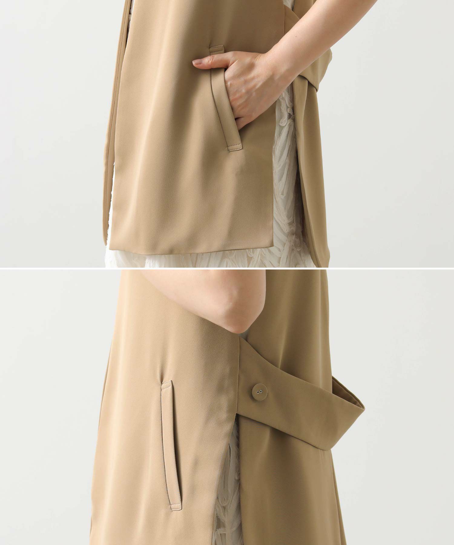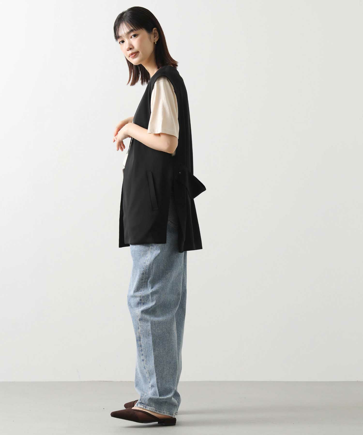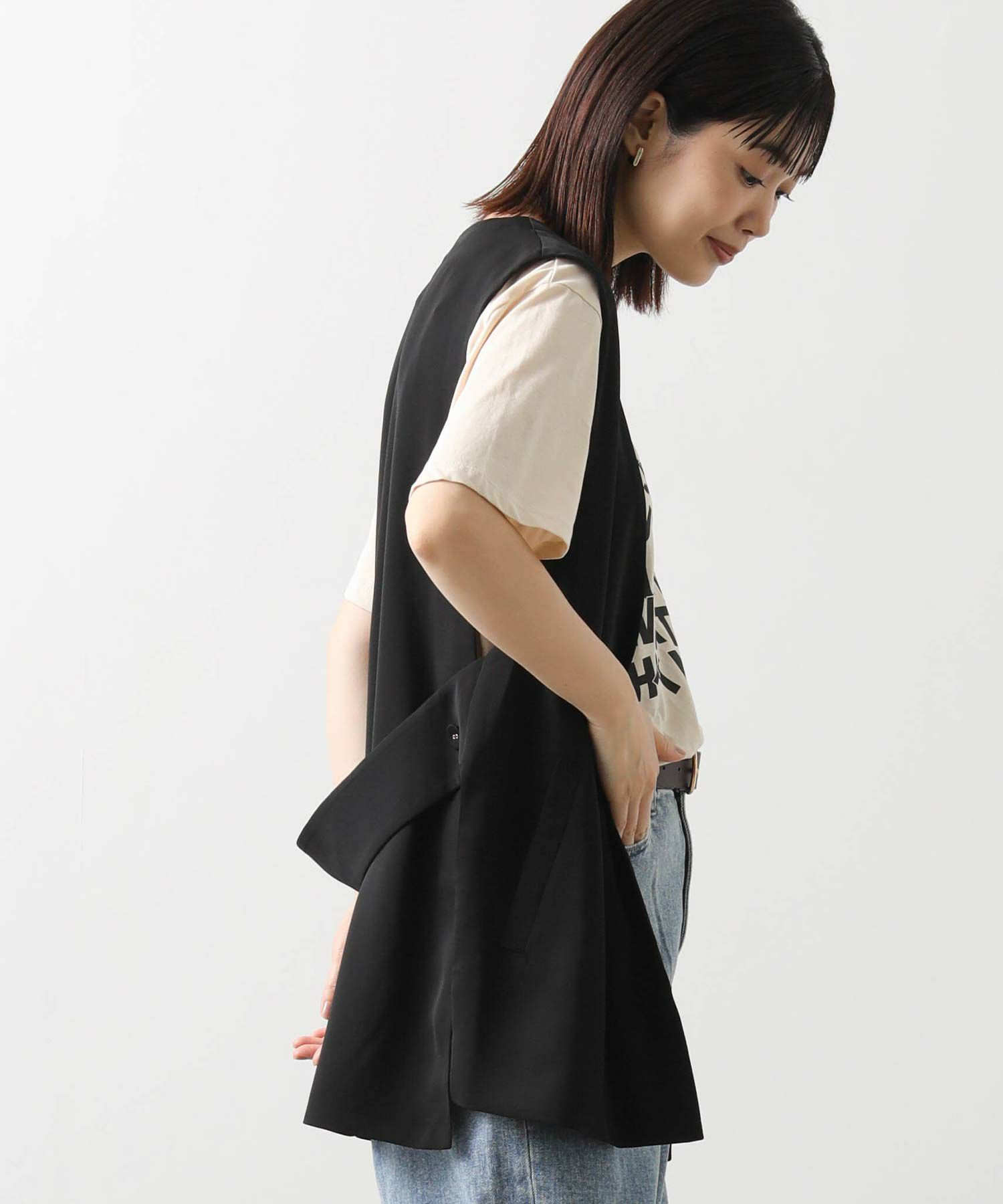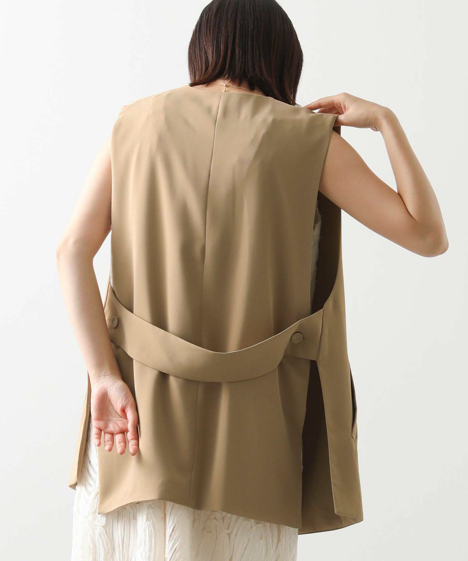 背中のベルトのボタンを外すとバックスタイルも変えられるので、ベルトを背中に出したり隠したり着こなしアレンジを楽しめます。