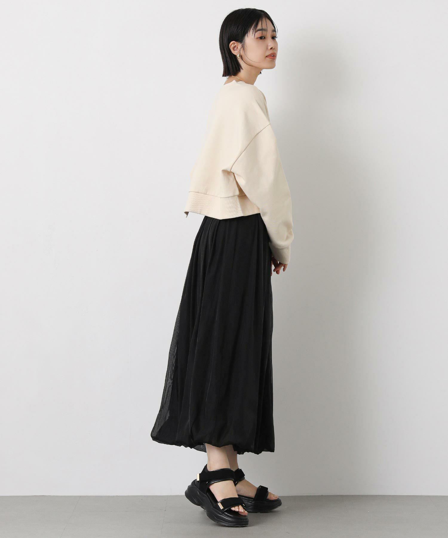 そのまま着るのはもちろん、インナーを裾から見せてレイヤードのコーディネートを楽しむのもオススメ。