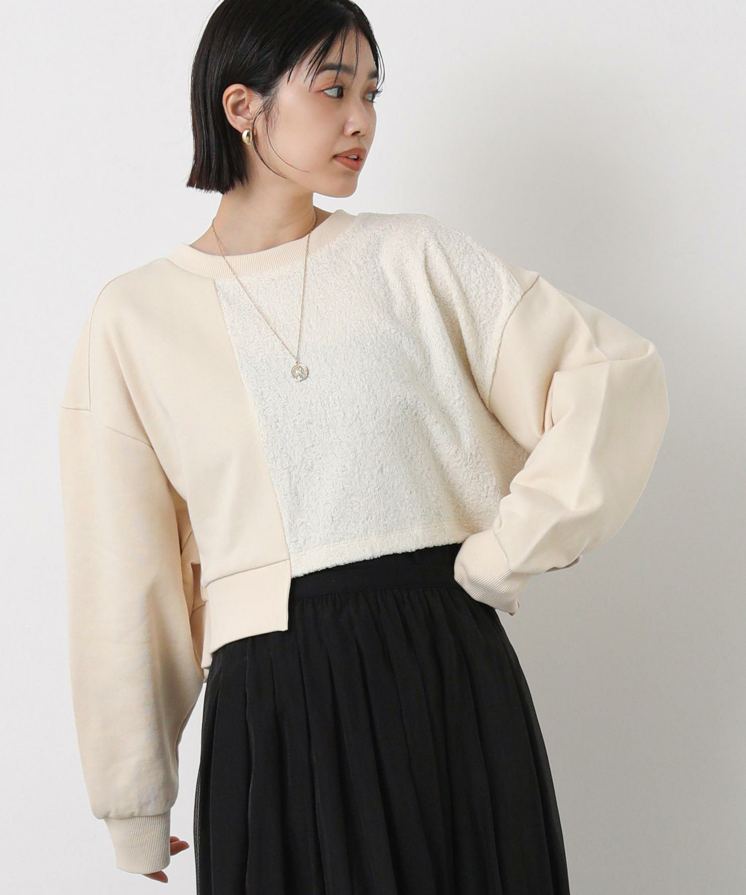 【Munich(ミューニック)】から、アシンメトリーな切り替えとトレンド感あるショート丈が魅力のデザインプルオーバーをセレクト。