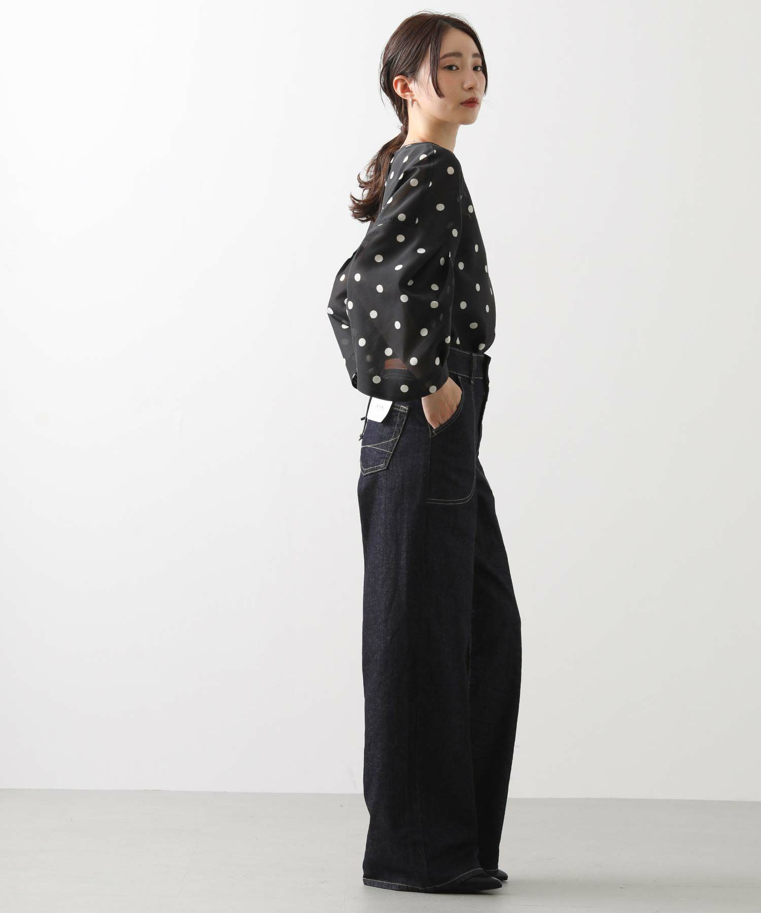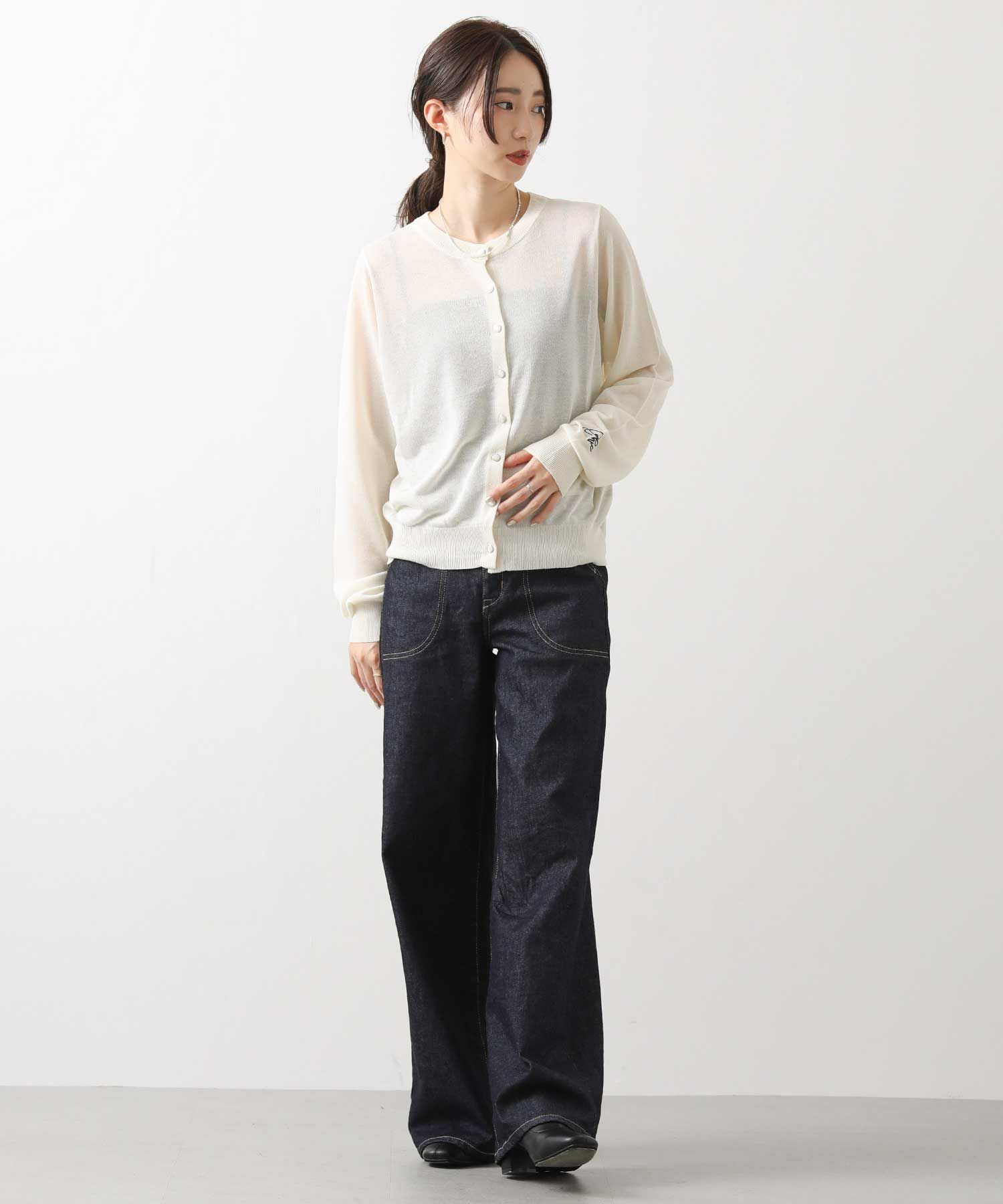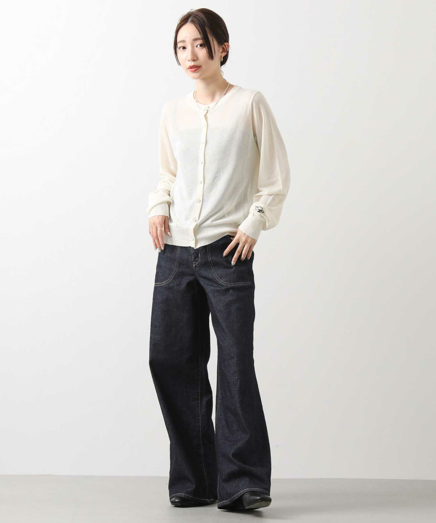 ※着用画像は撮影状況、光の当たり具合で色みが違って見える場合がございます。実際の色みについては、画像一覧の最後に掲載している詳細画像をご参照ください。