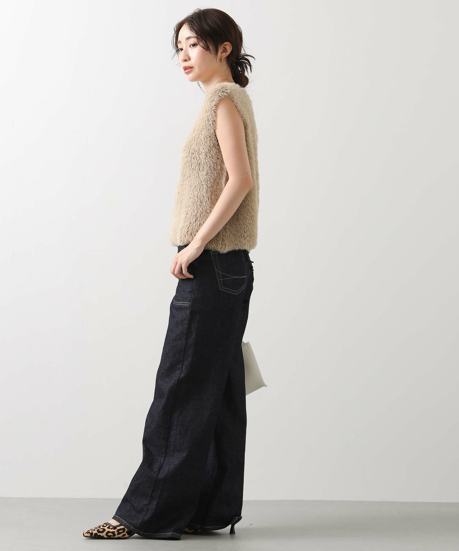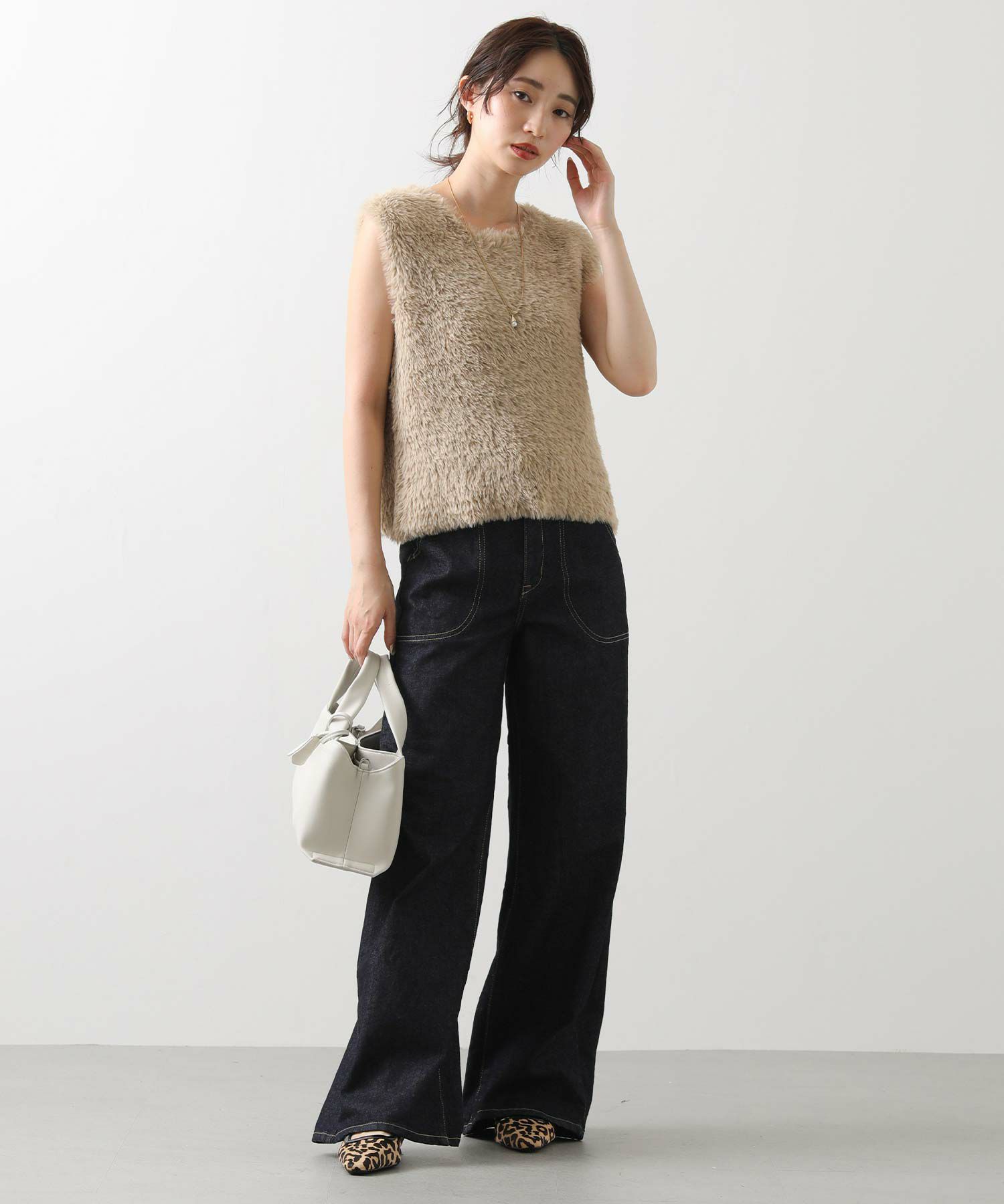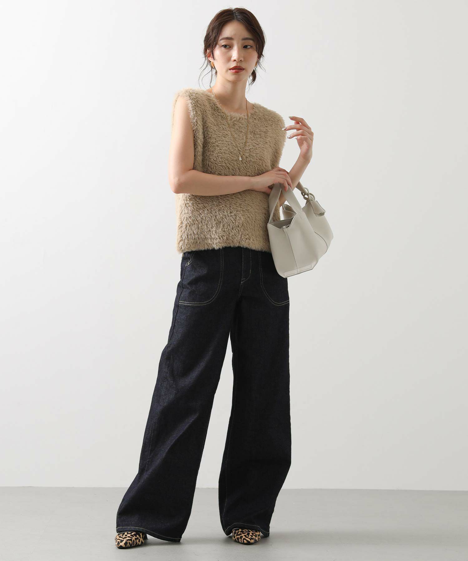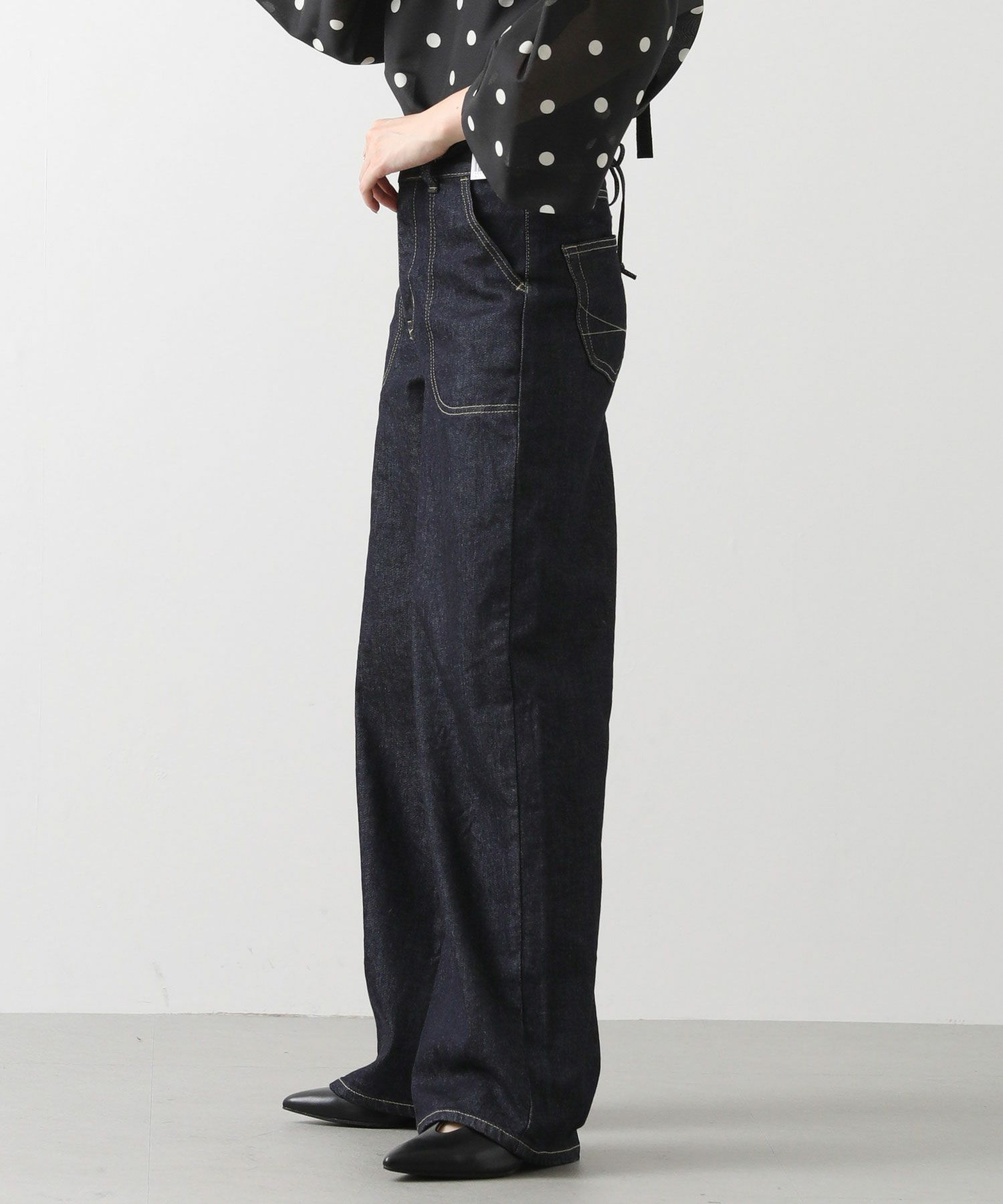 足の形を拾わないゆったりワイドシルエットで気になる下半身もカバー。