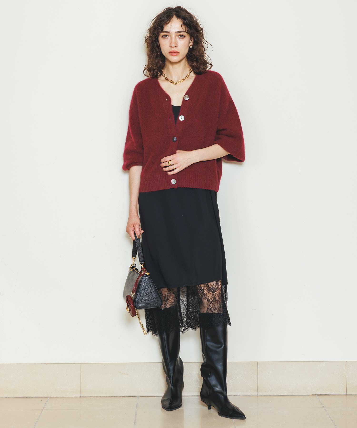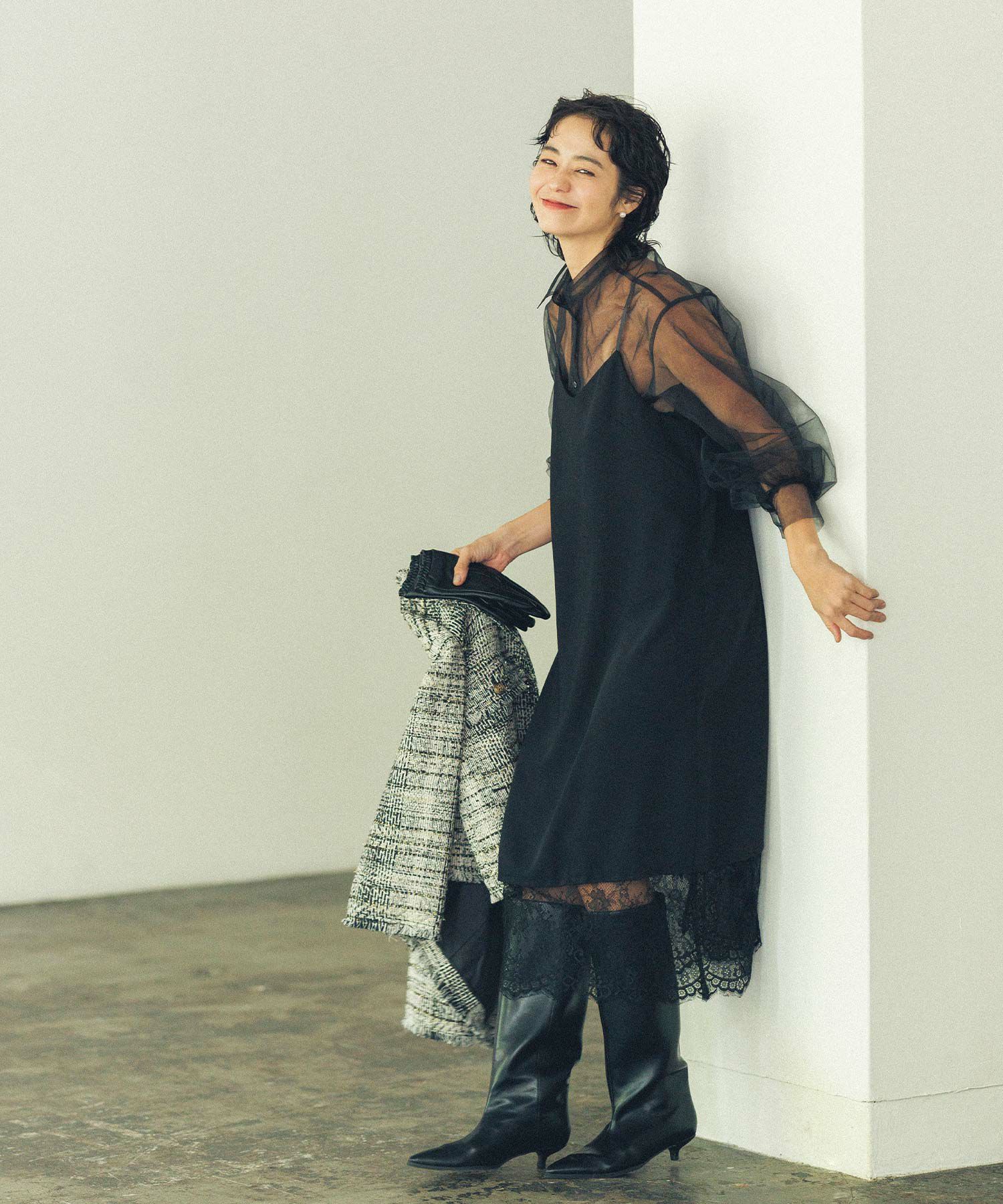 ※着用画像は撮影状況、光の当たり具合で色みが違って見える場合がございます。実際の色みについては、画像一覧の最後に掲載している詳細画像をご参照ください。