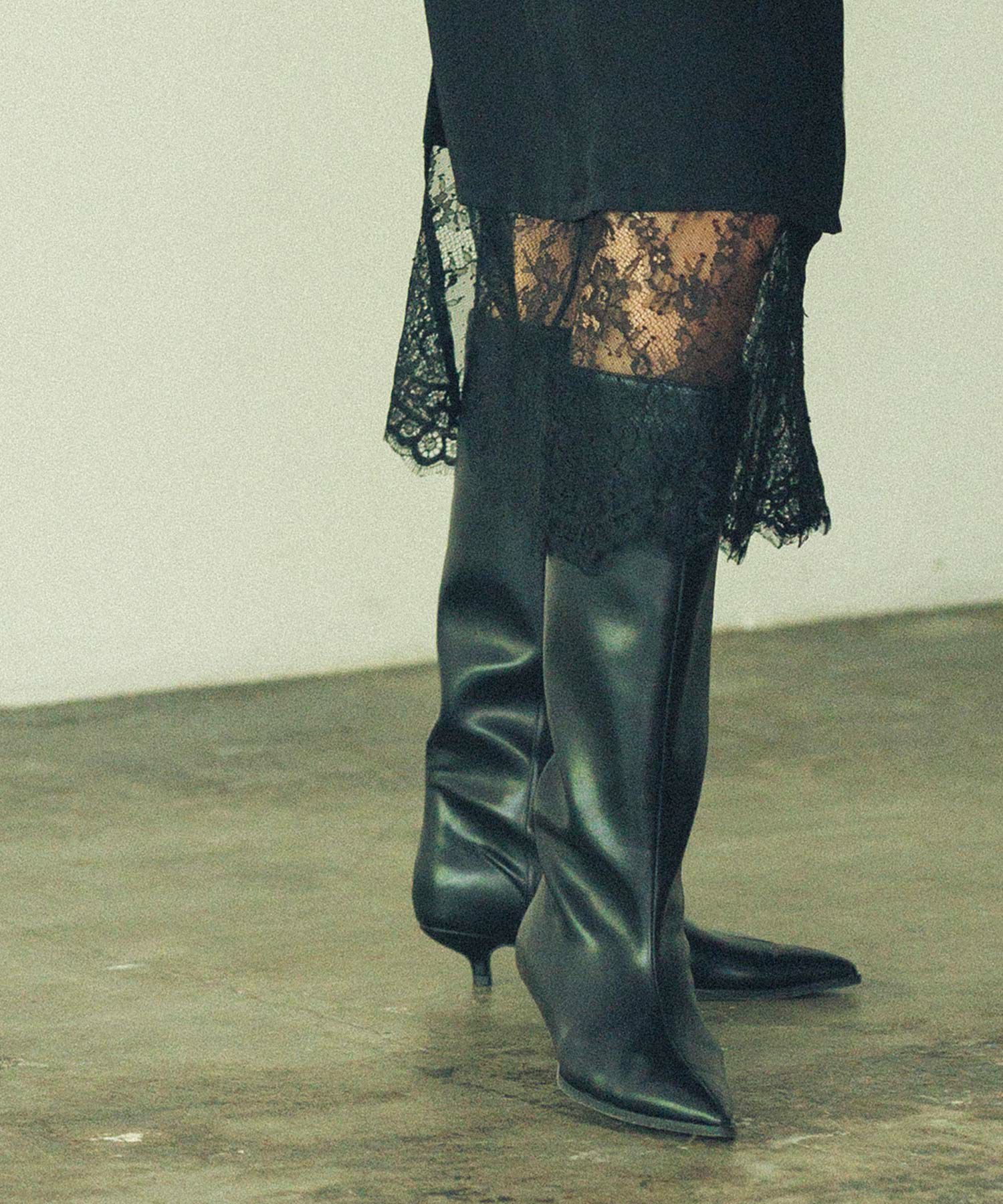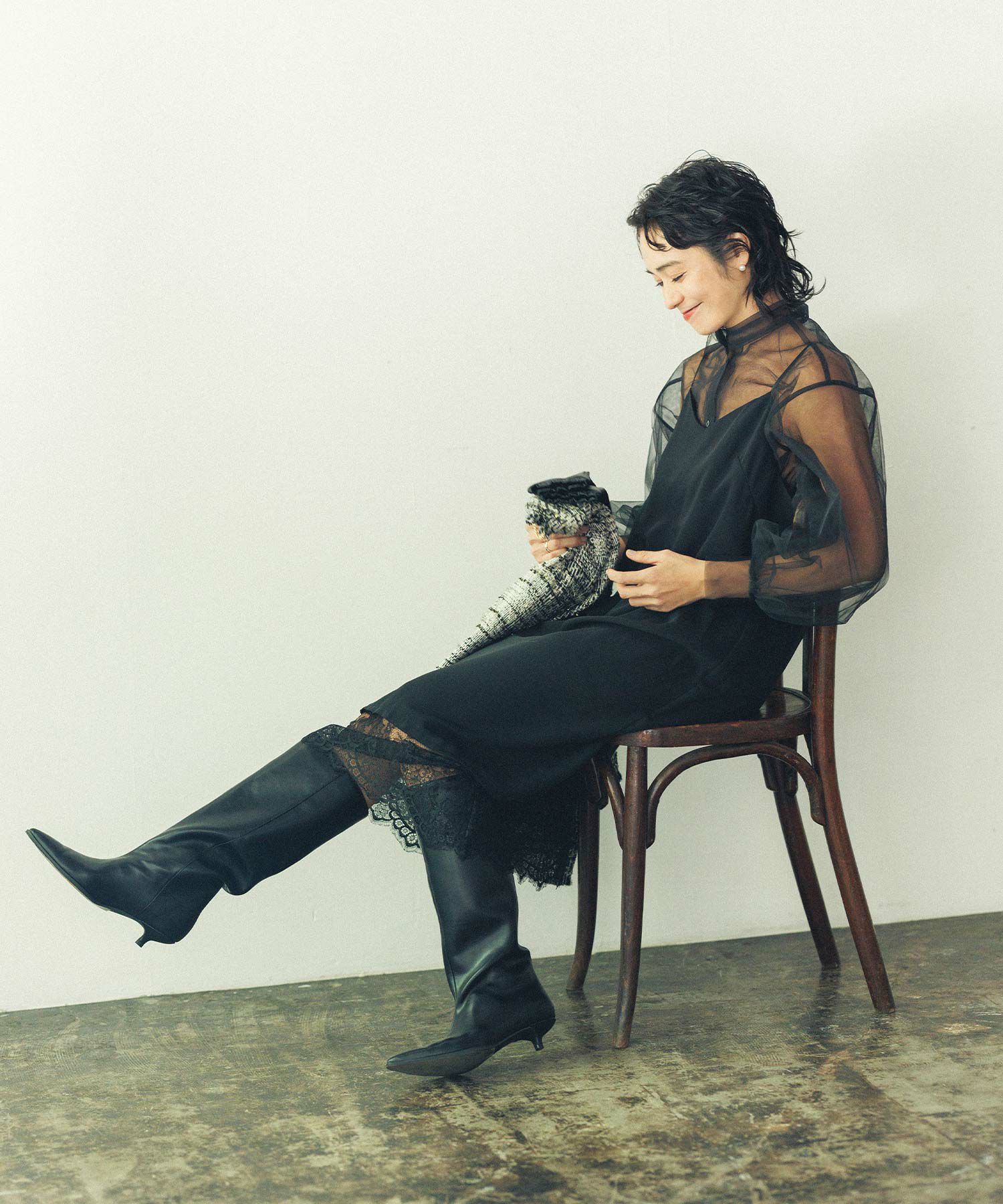 アトリエブルージュより、シャープなトゥが女性らしいロングブーツをセレクト。