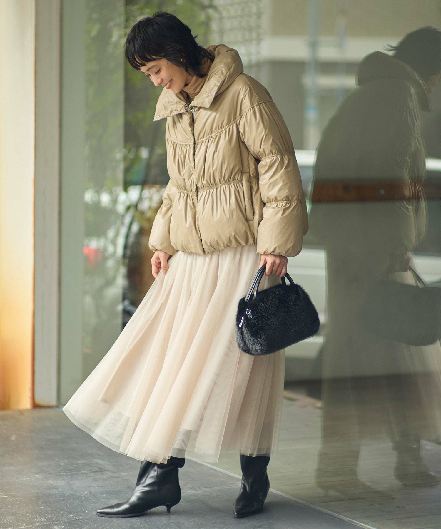 ワイドシルエットの筒でそのまま履けるので、今季の気分にもぴったり。