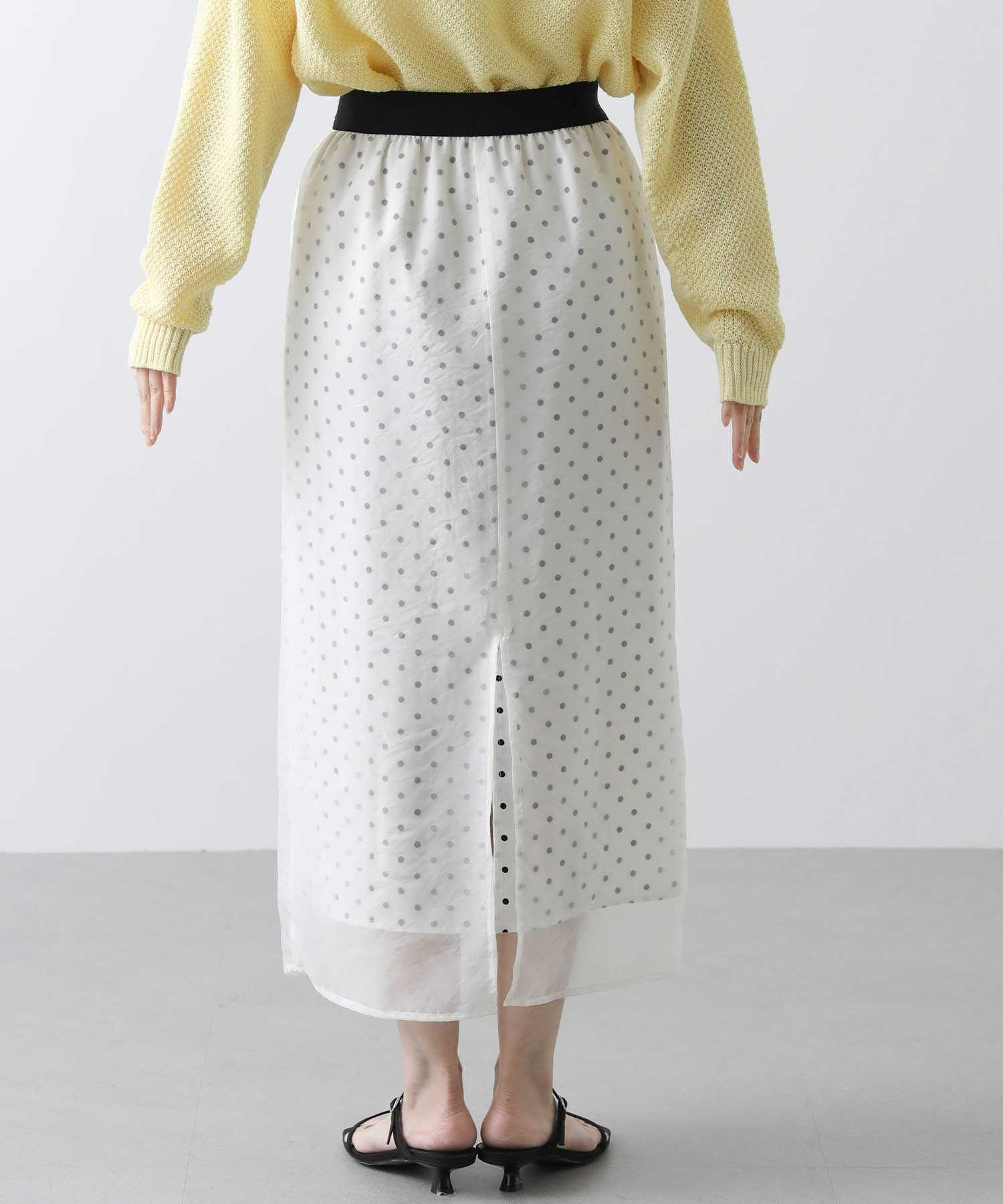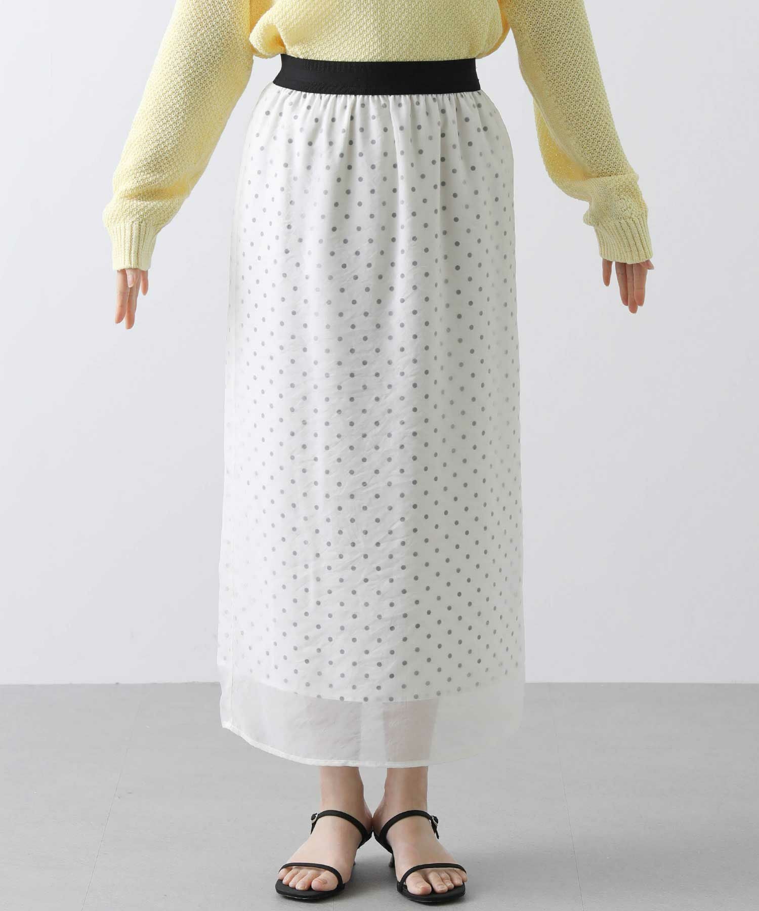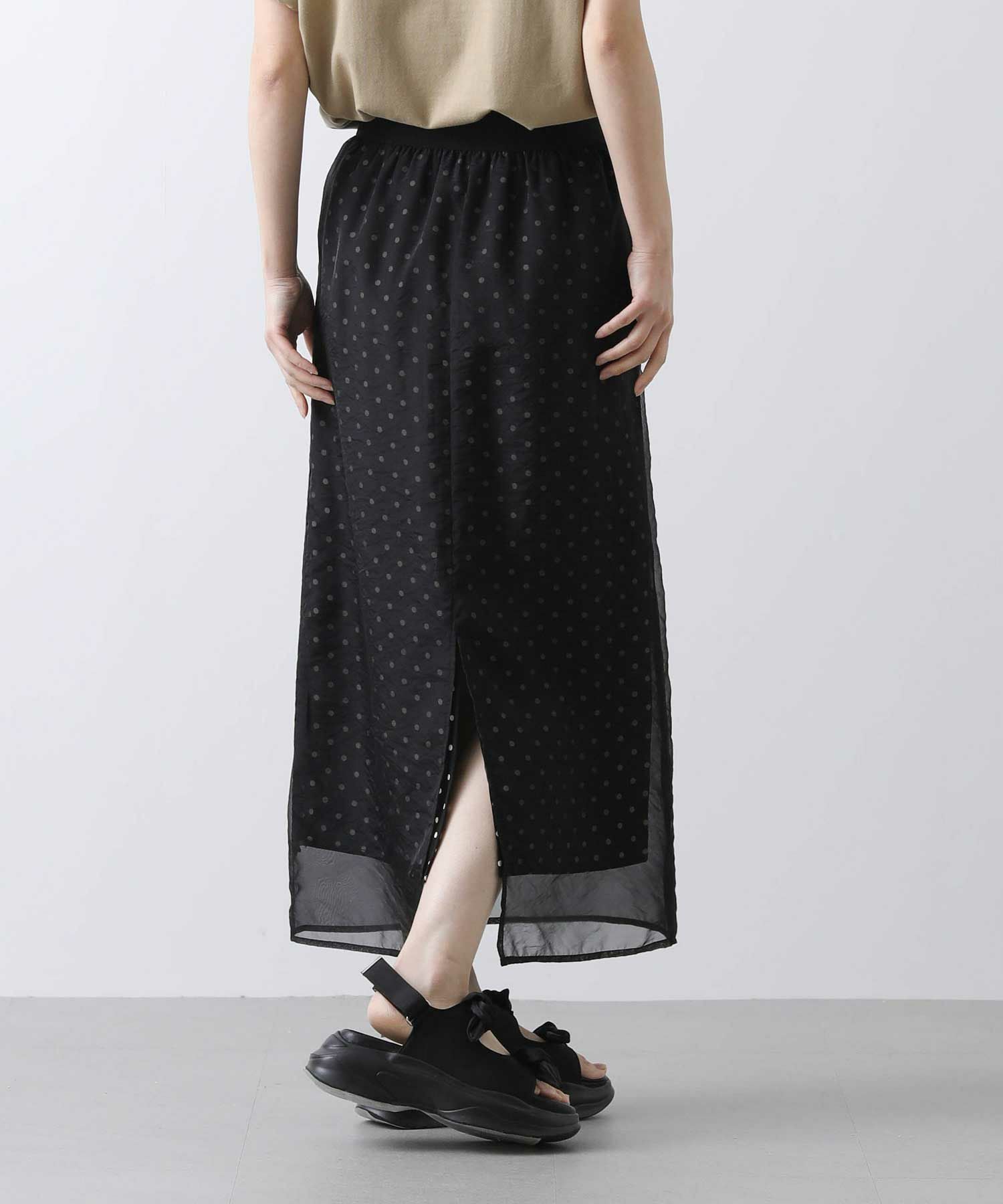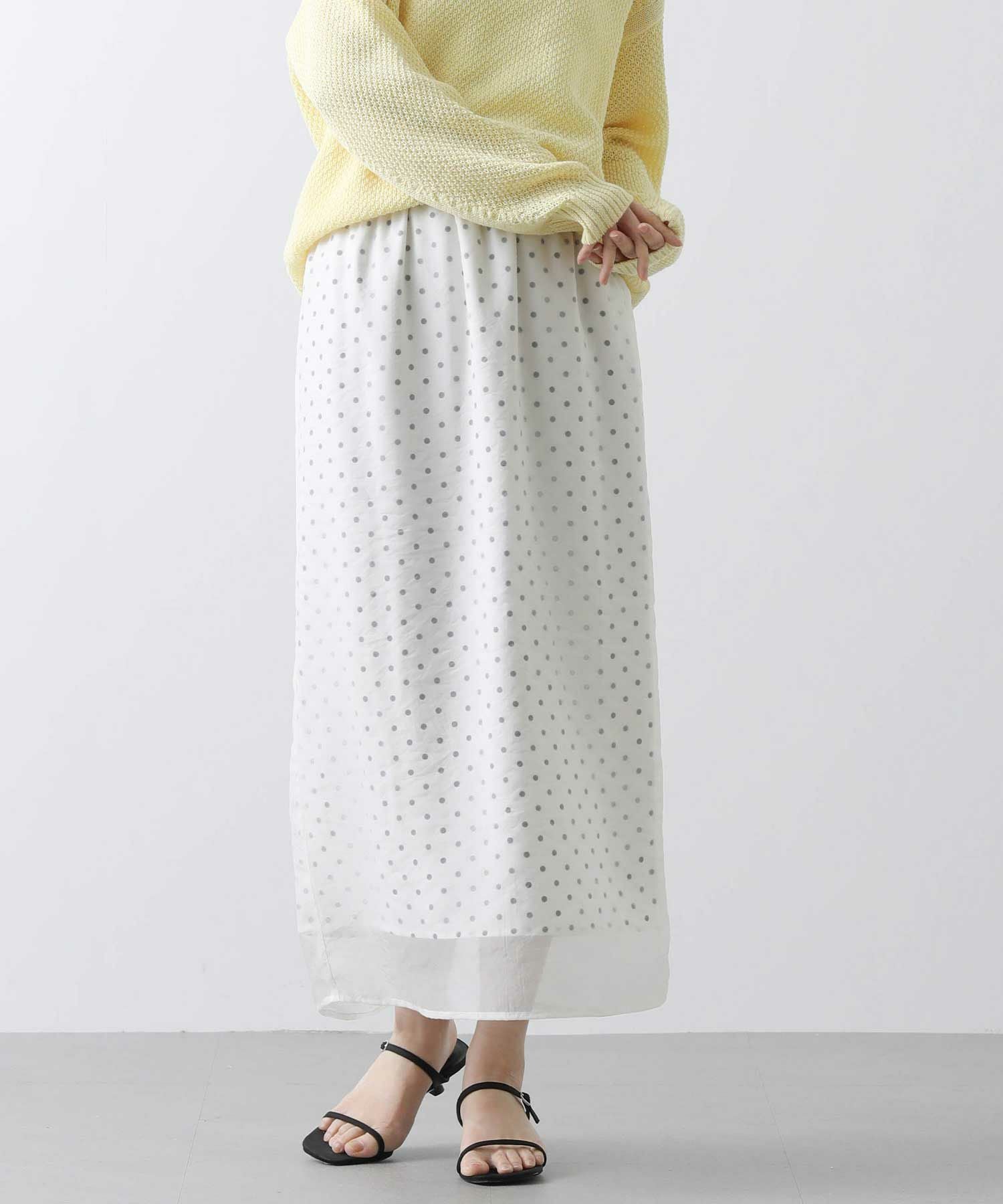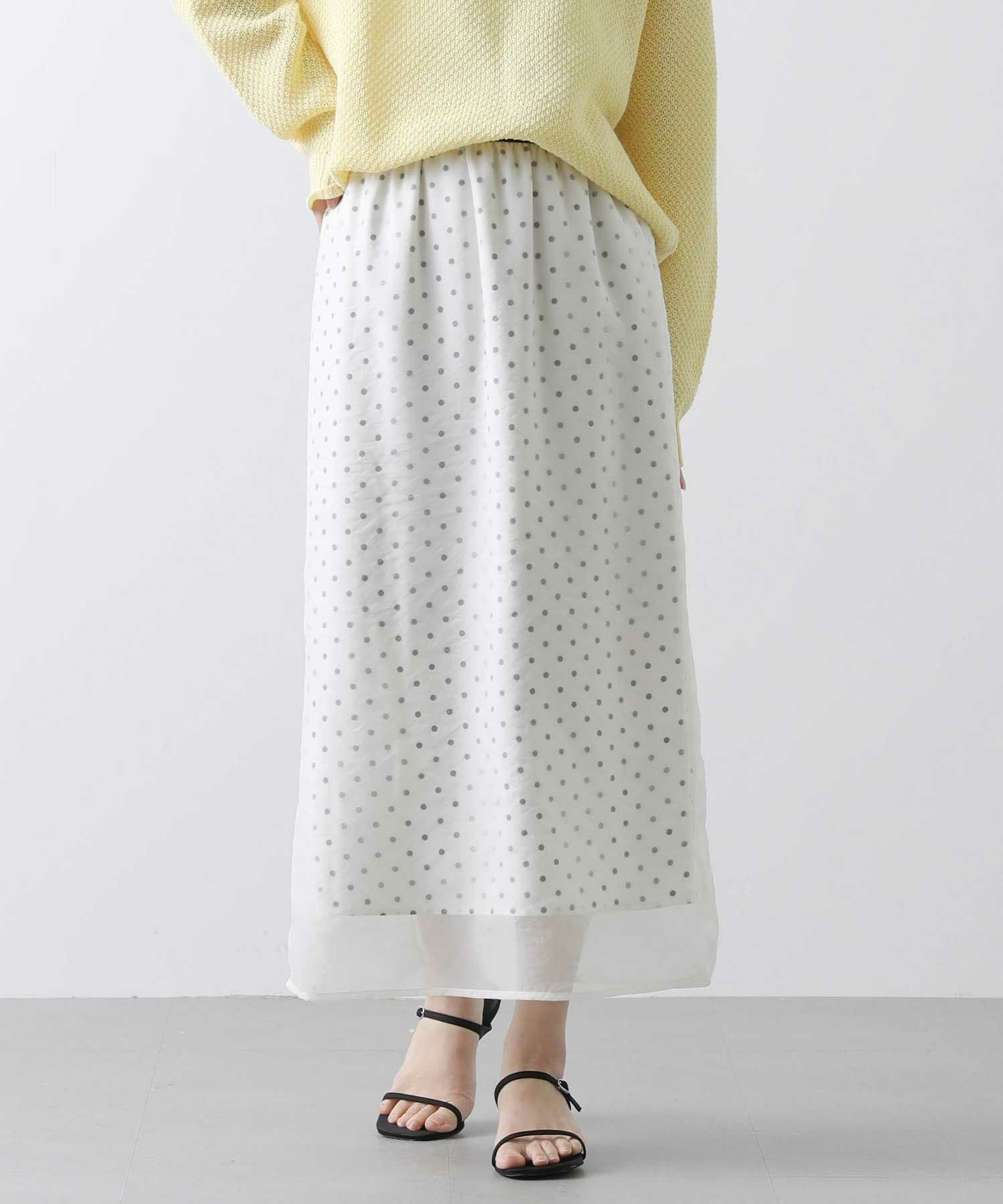 表地から透けて見えるドットが新鮮でかわいいスカート。