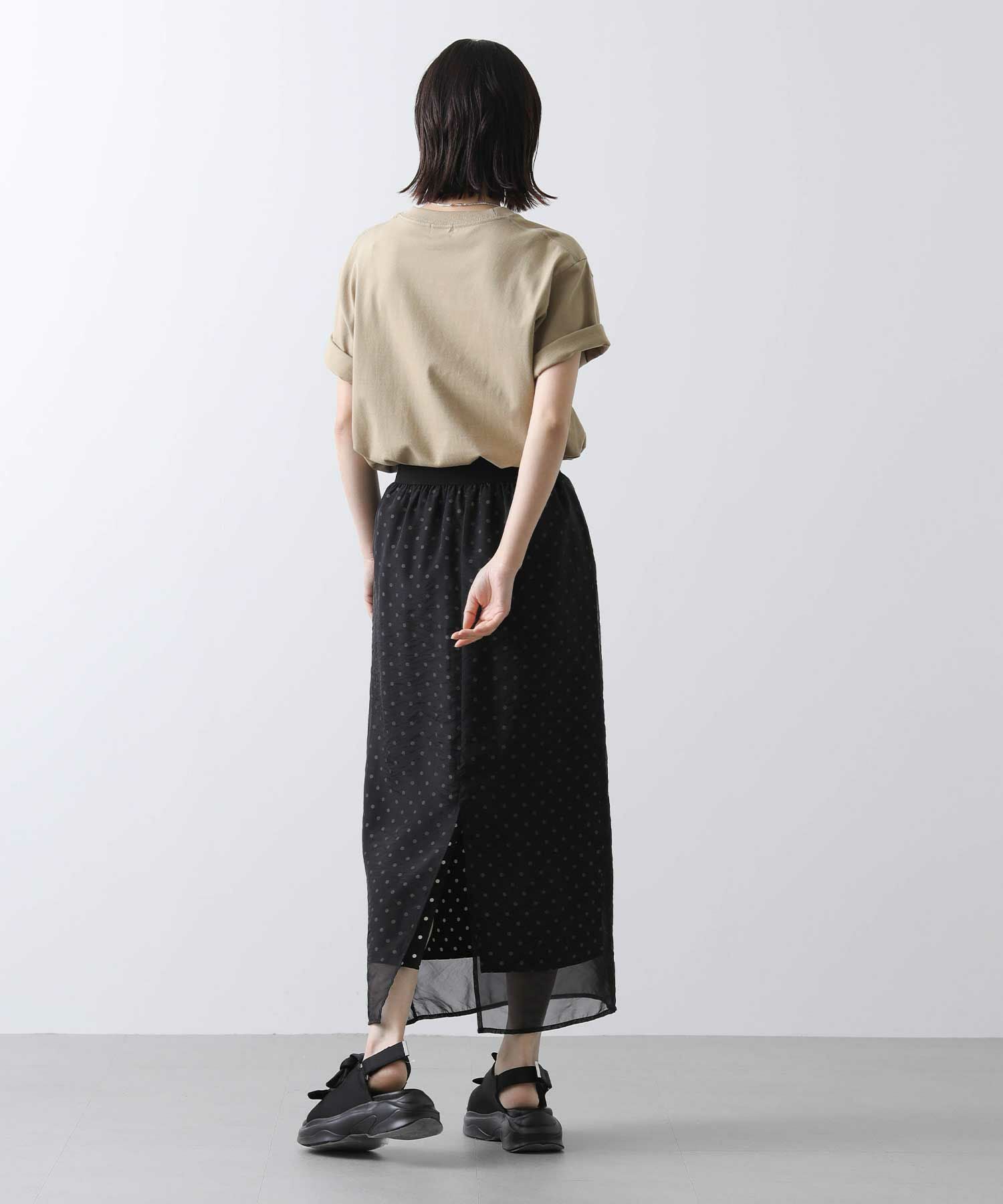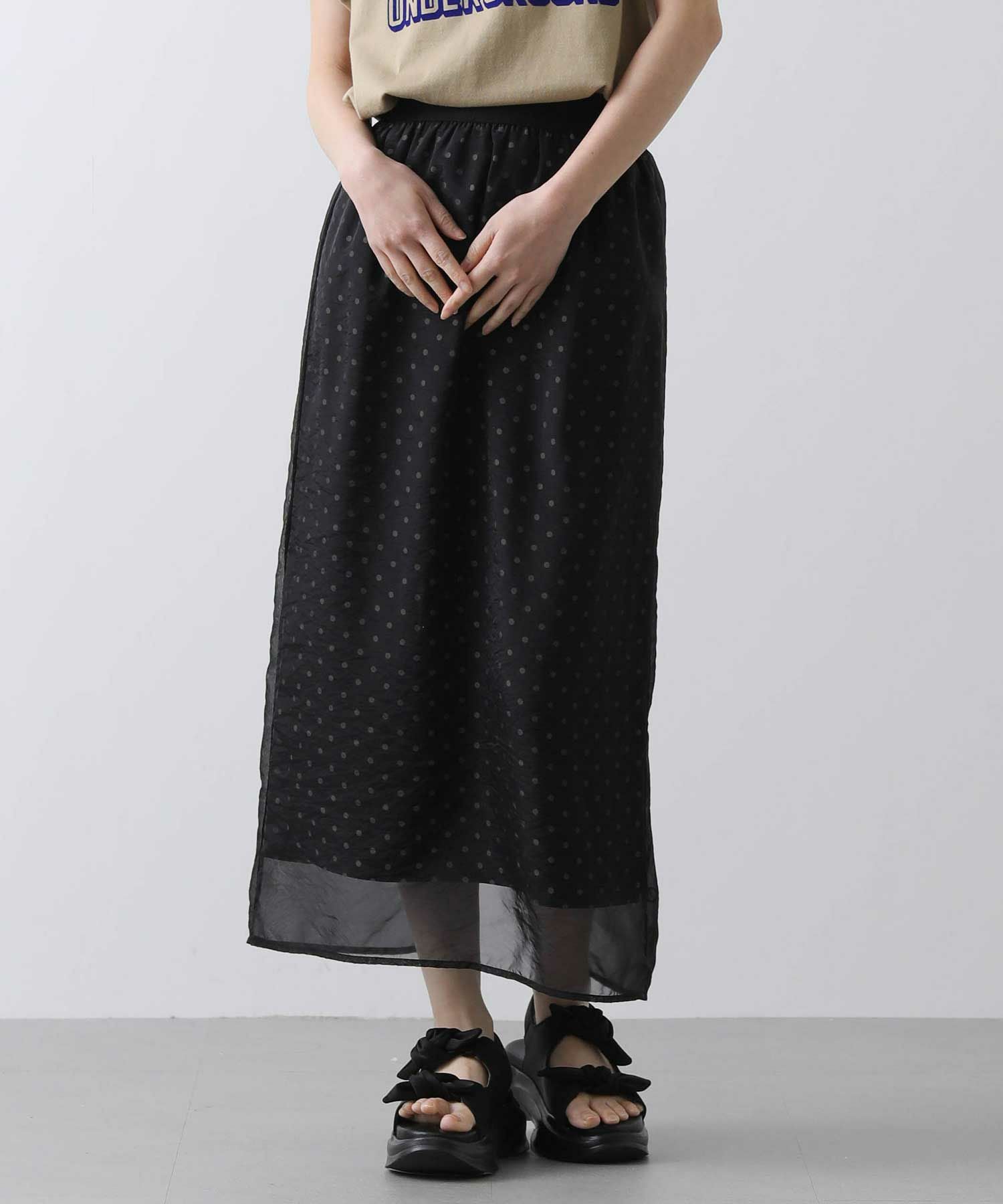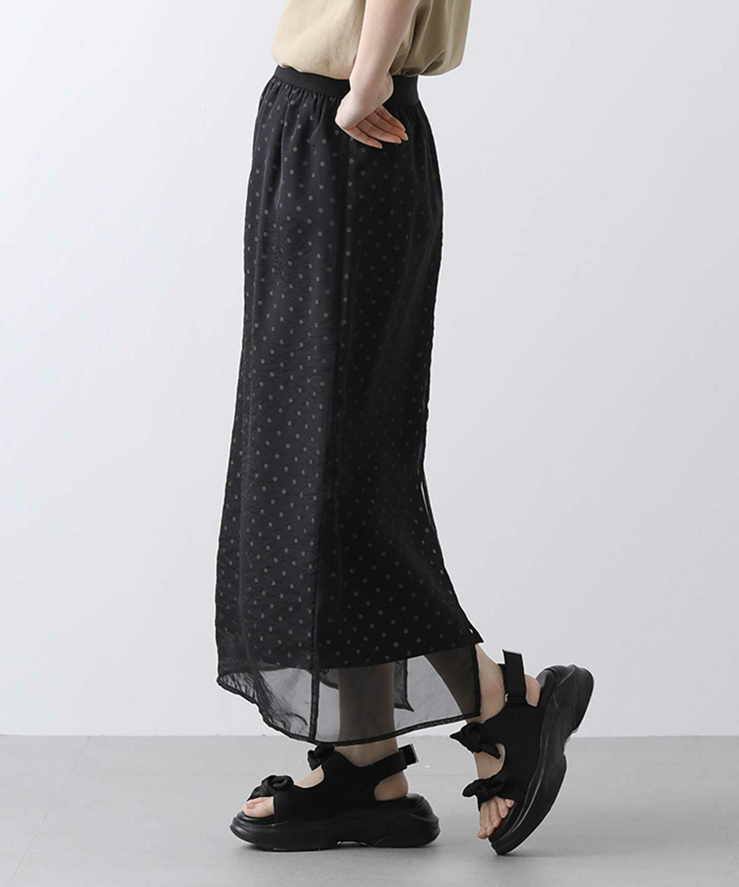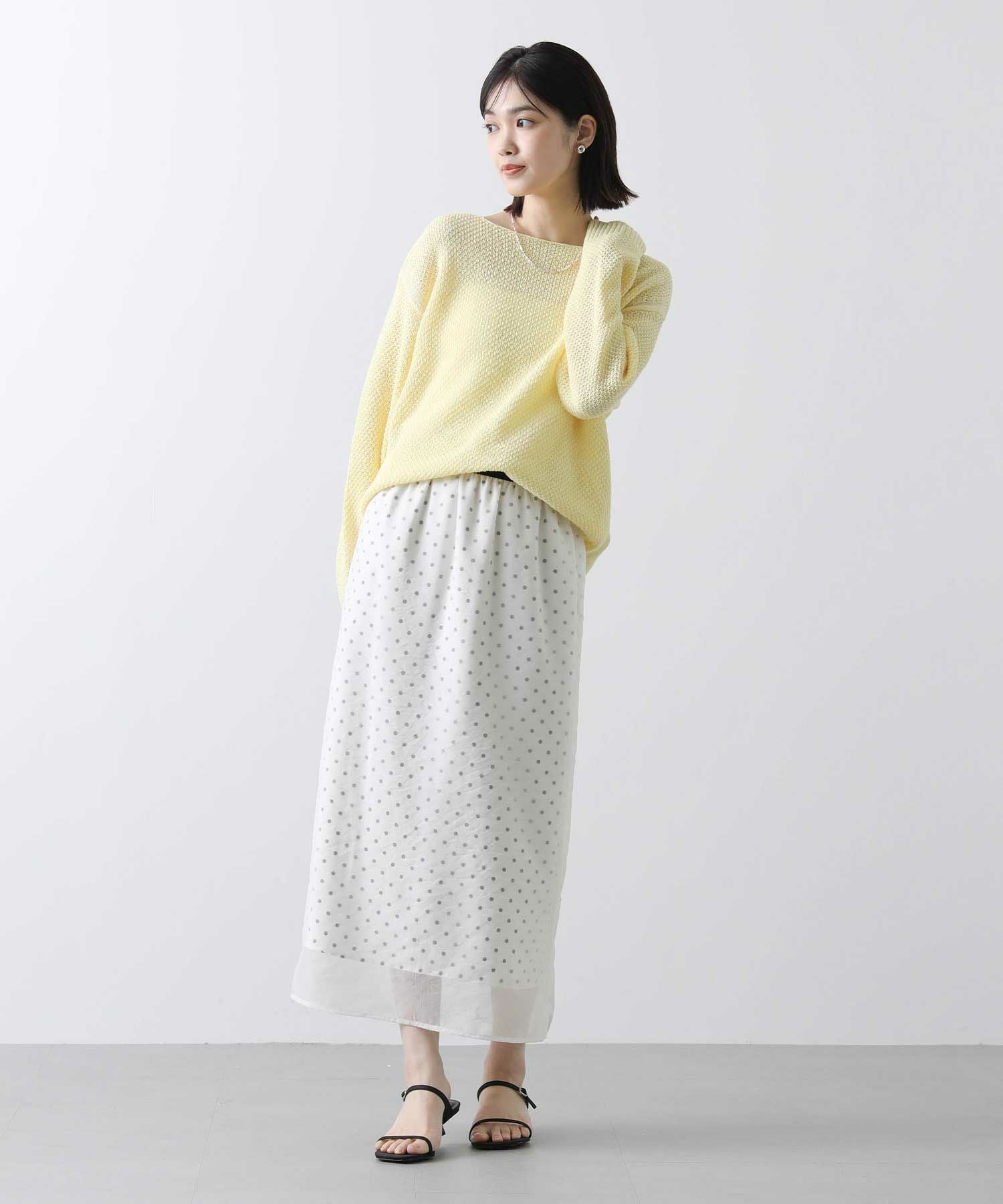 表地から透けて見えるドットが新鮮でかわいいスカート。