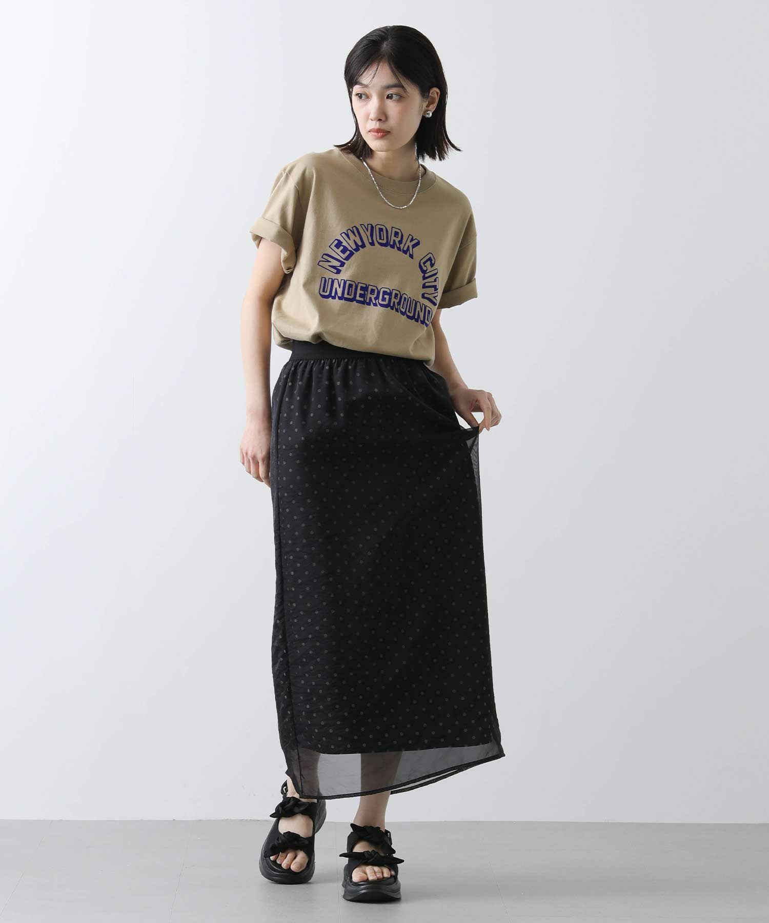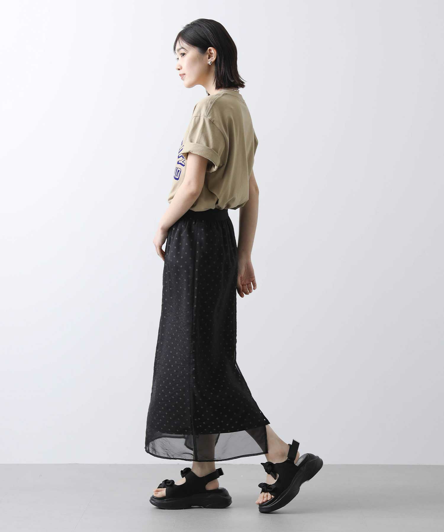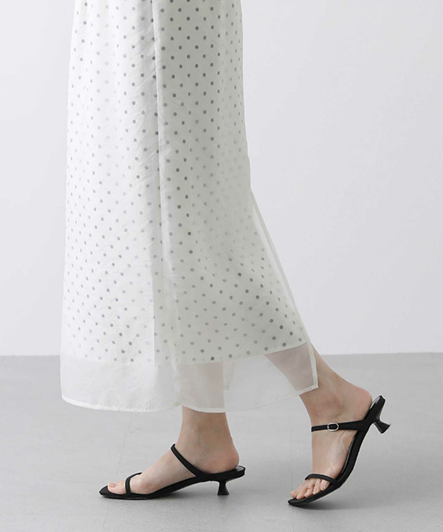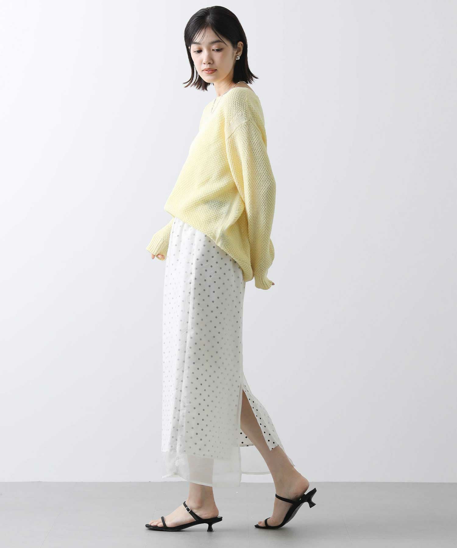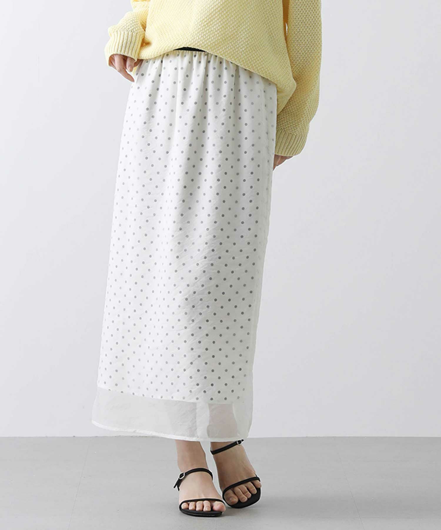 表地から透けて見えるドットが新鮮でかわいいスカート。