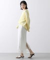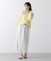 裏地をあえて短めにして、足元の軽さを楽しめるデザインにしています。ウエストはぐるりゴムなので、リラックスした穿き心地に。後にスリットを入れて、抜け感を出しています。