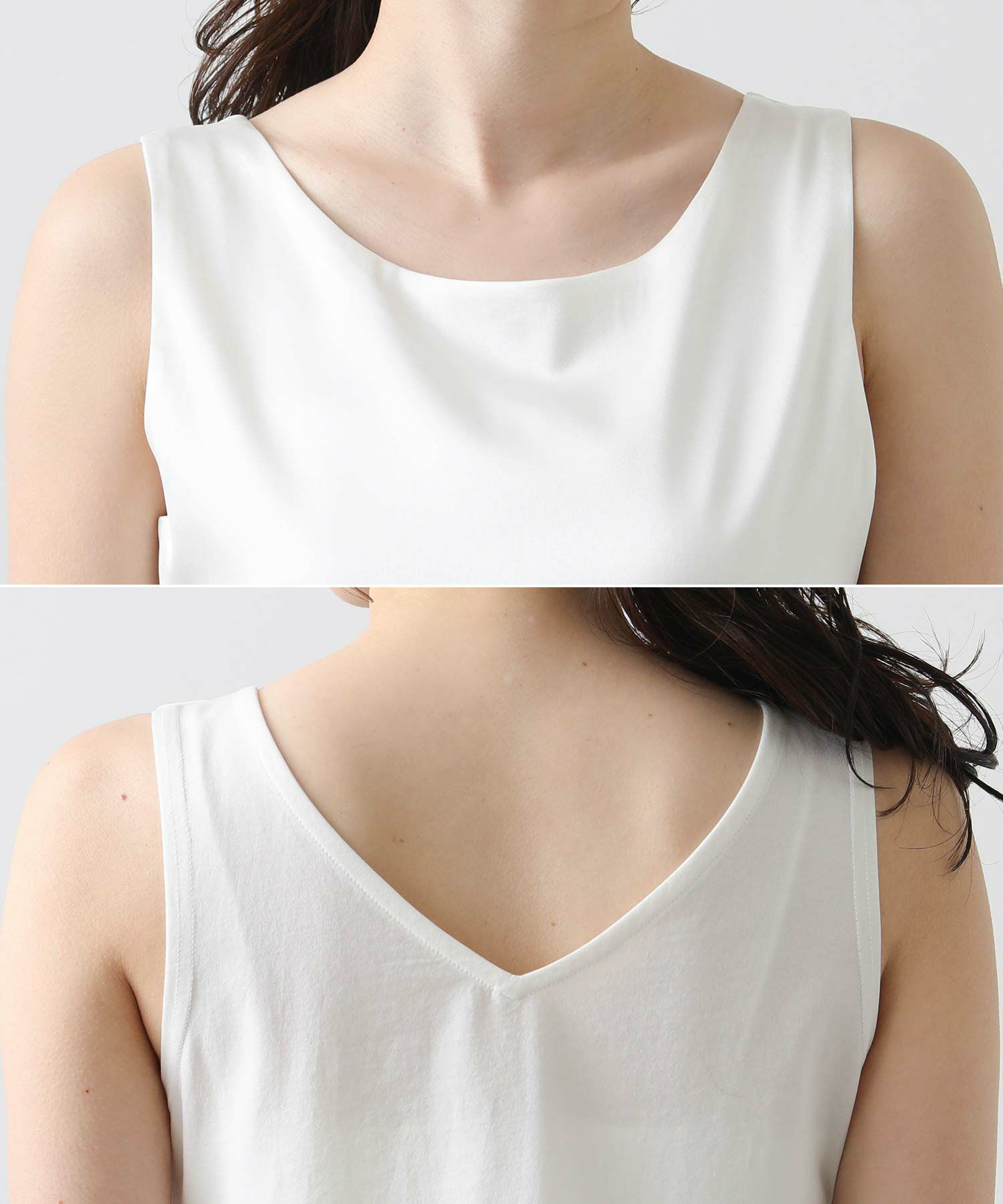 肩まわりは下着のストラップが見えにくいデザインにアップデートされ、実用性がさらに向上しました。