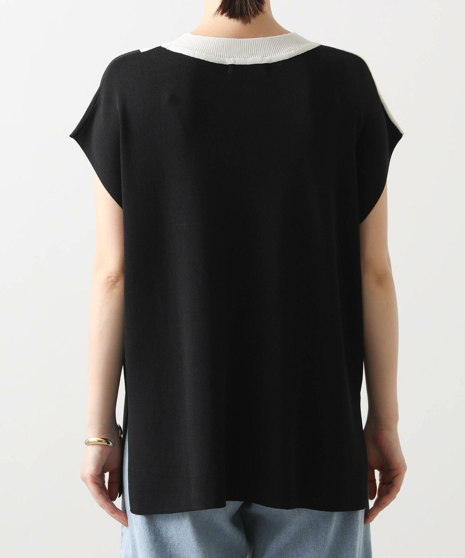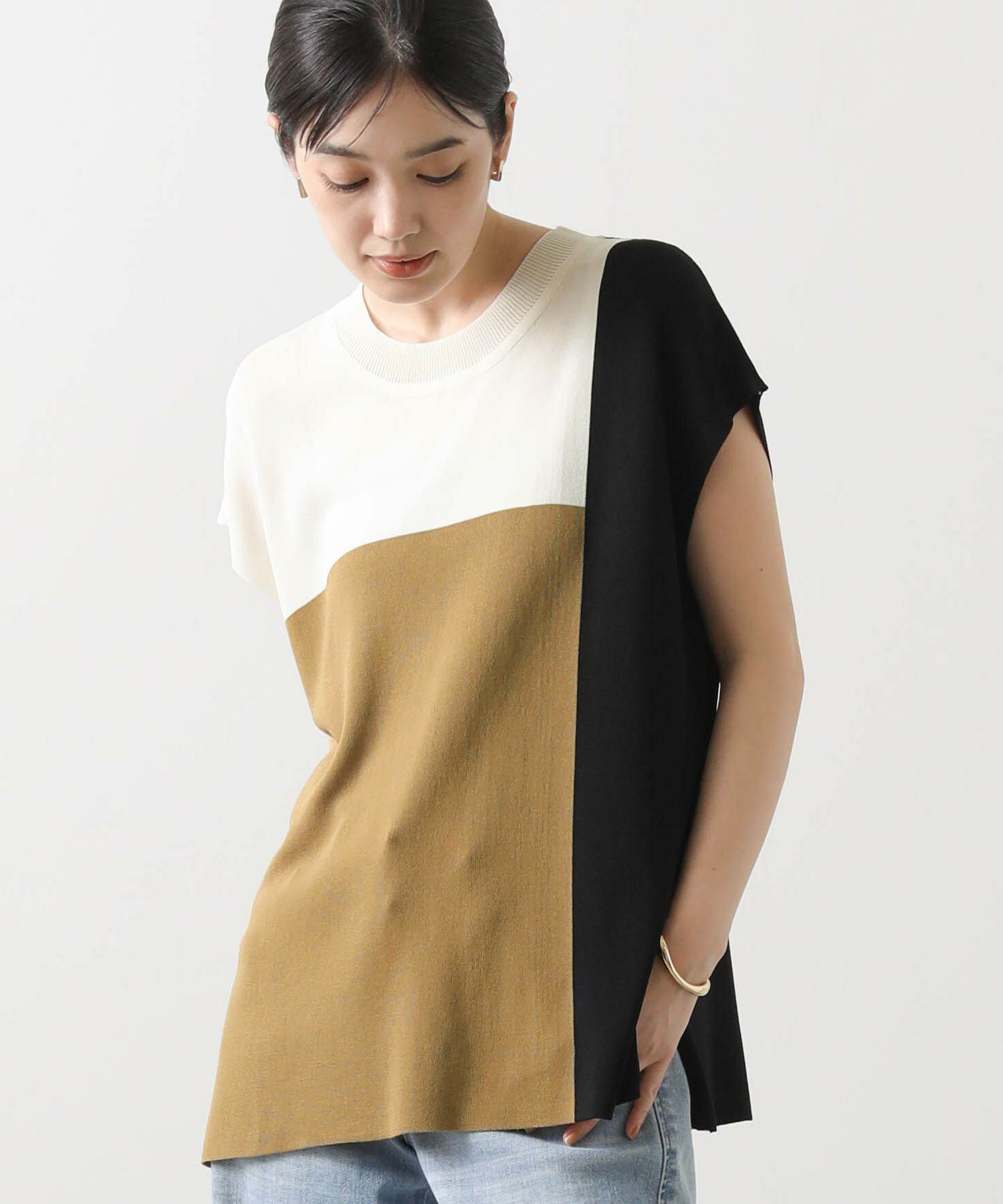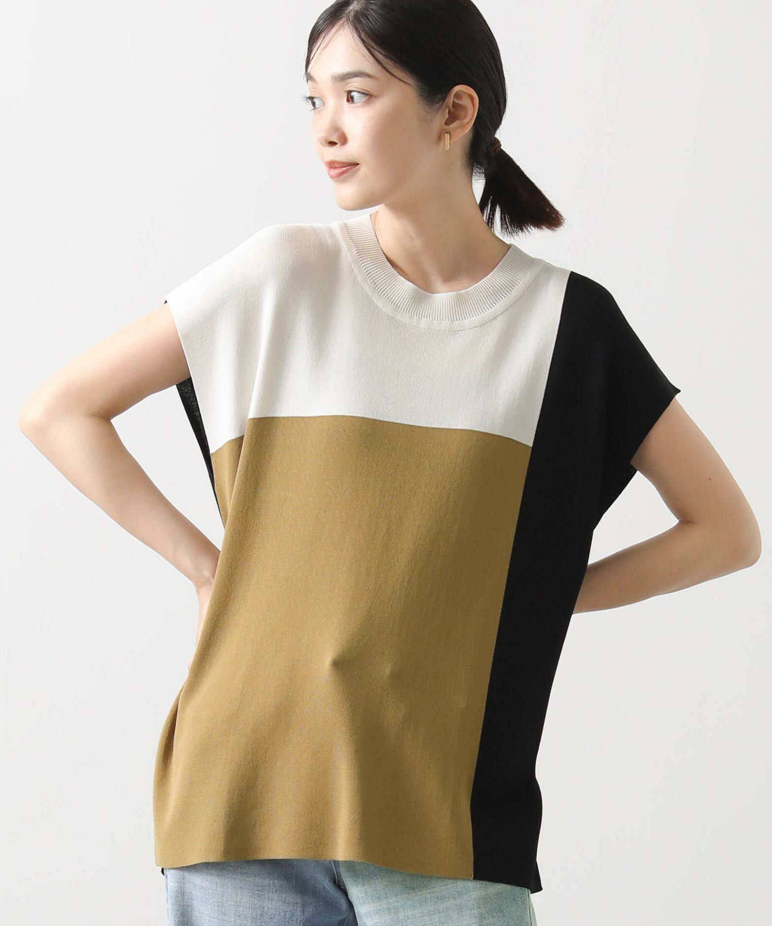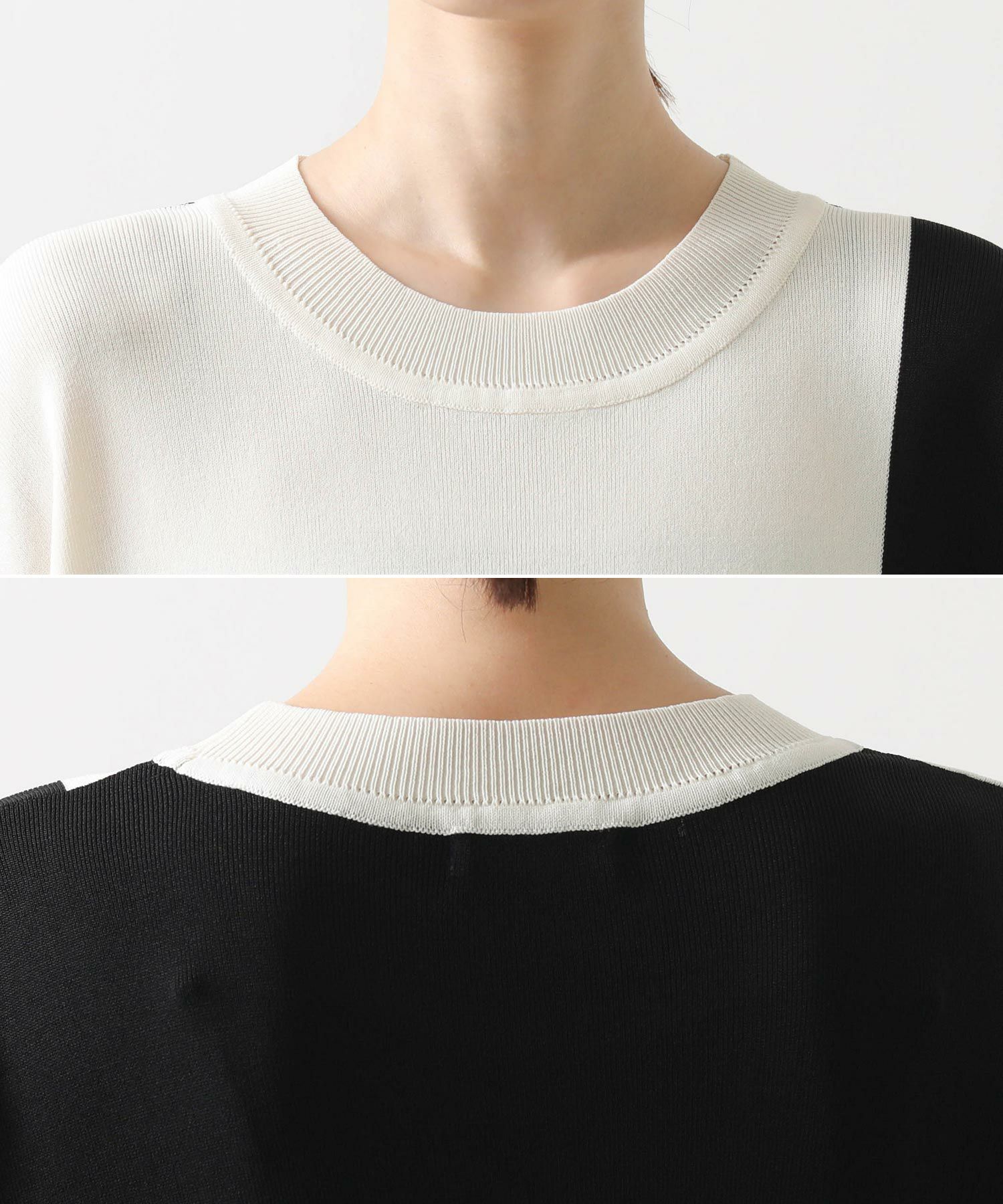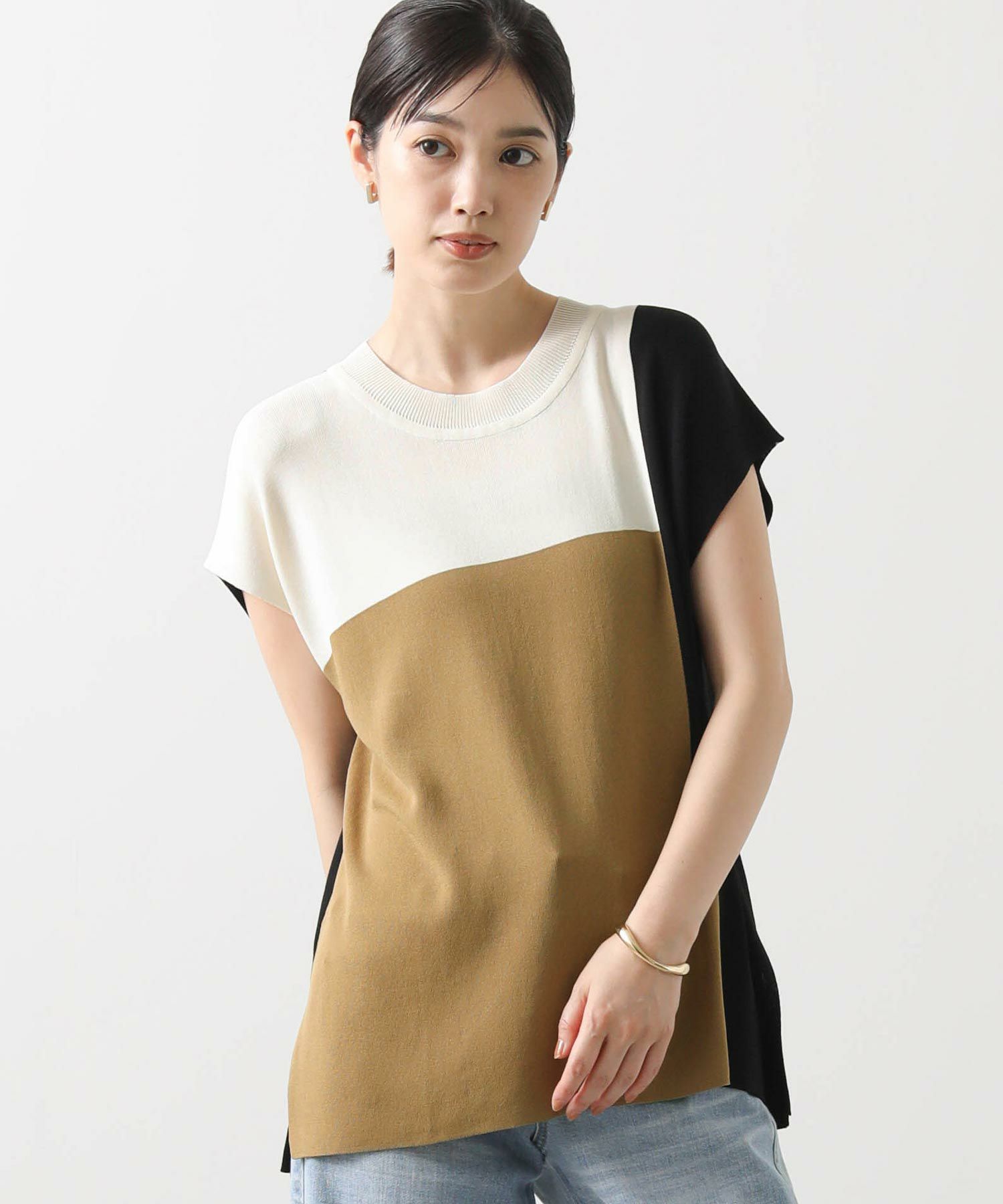 カラー配色が目を惹くサマーニットトップス。