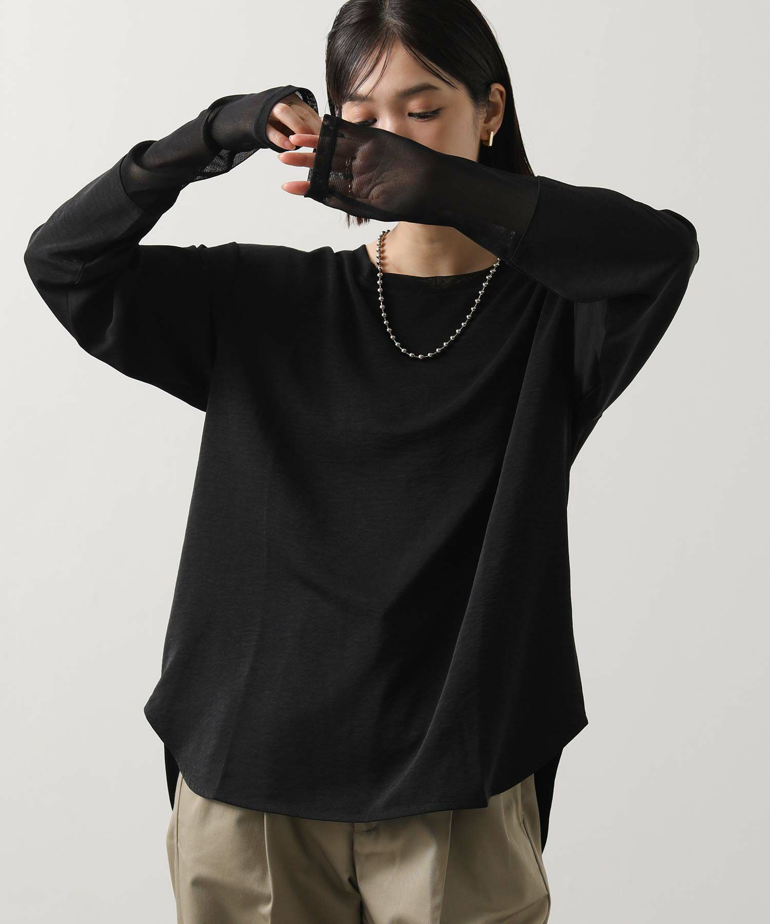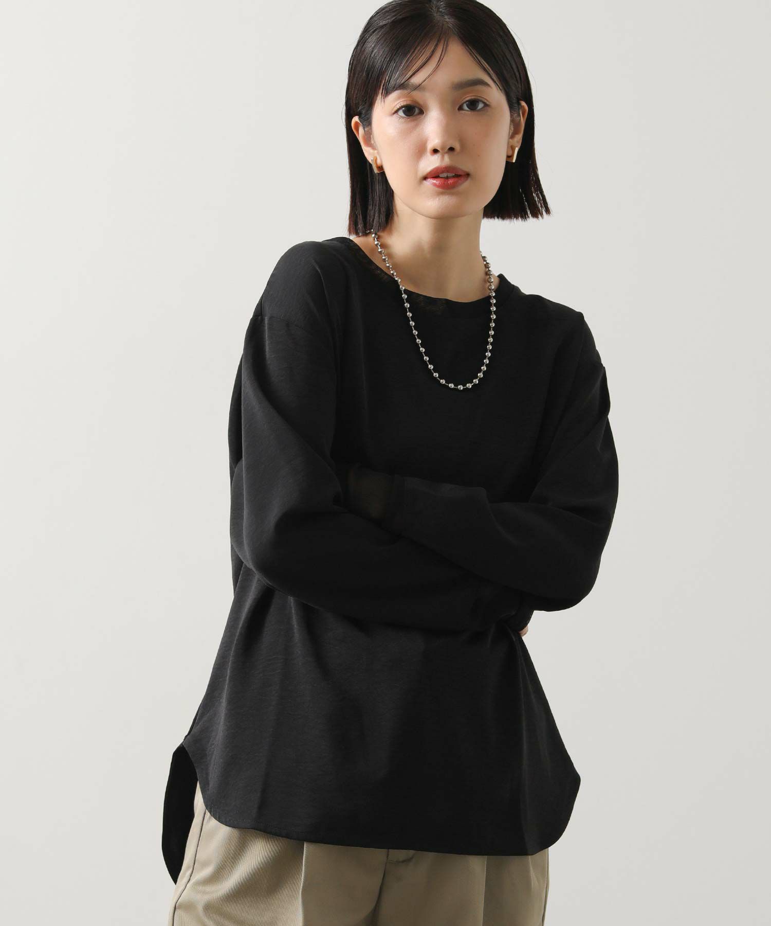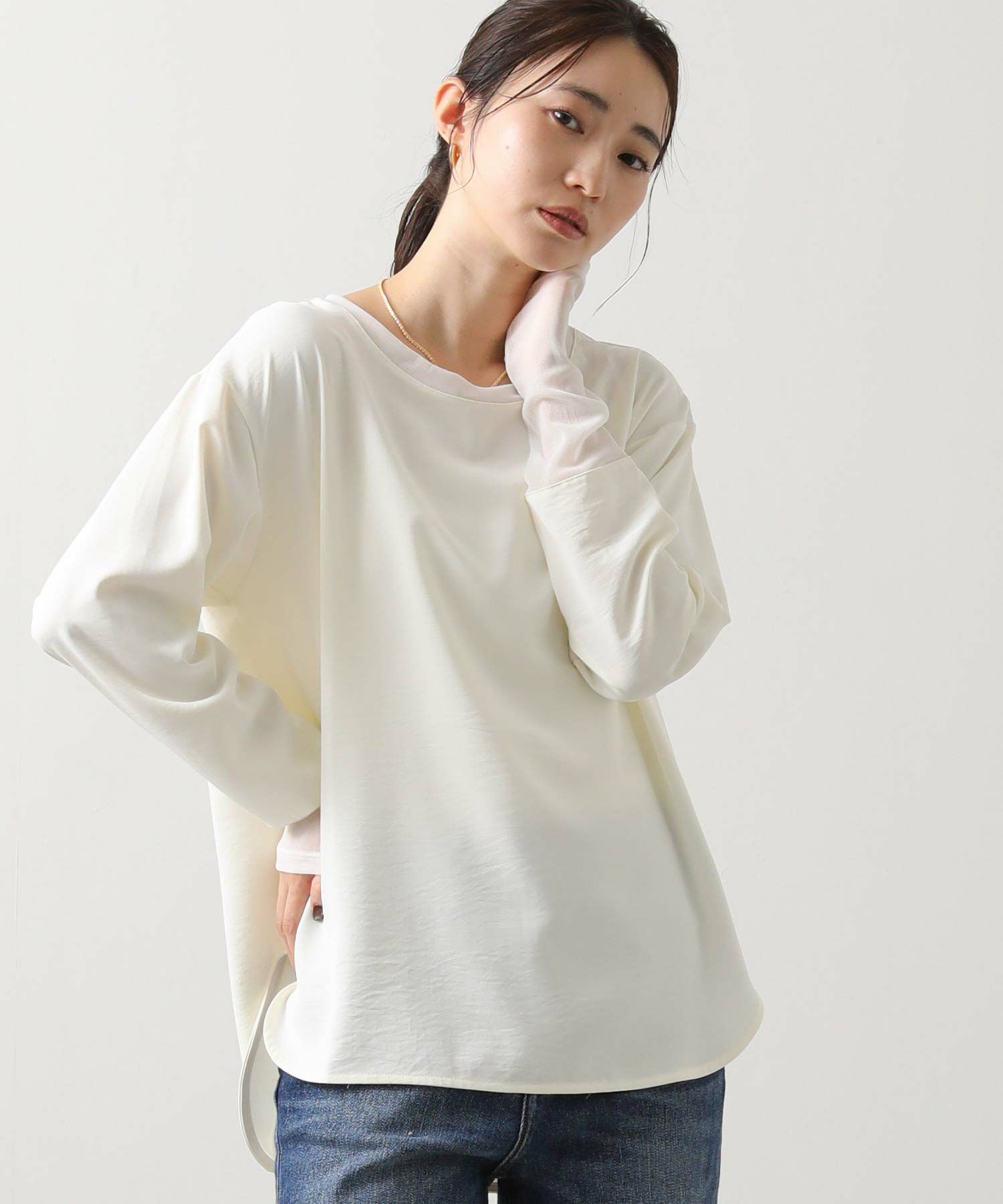 シンプルなロンT型ですが、落ち感のあるダブルクロスを使用し上品&キレイめな印象に。