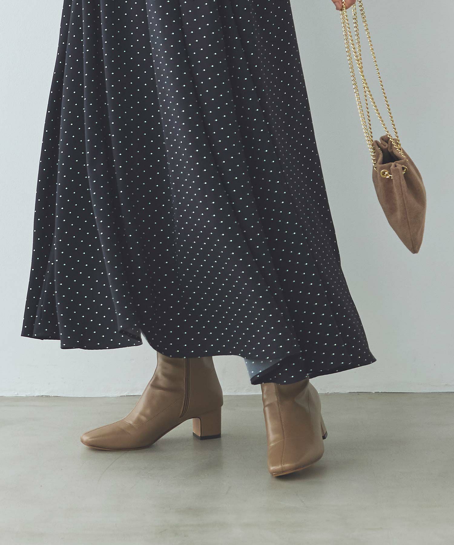スクエアトゥでパンツからさりげなくのぞかせてラフに合わせても、ワンピースなどのきれいめスタイルにも、幅広いコーディネートに取り入れやすく、旬のバランスを楽しめます。