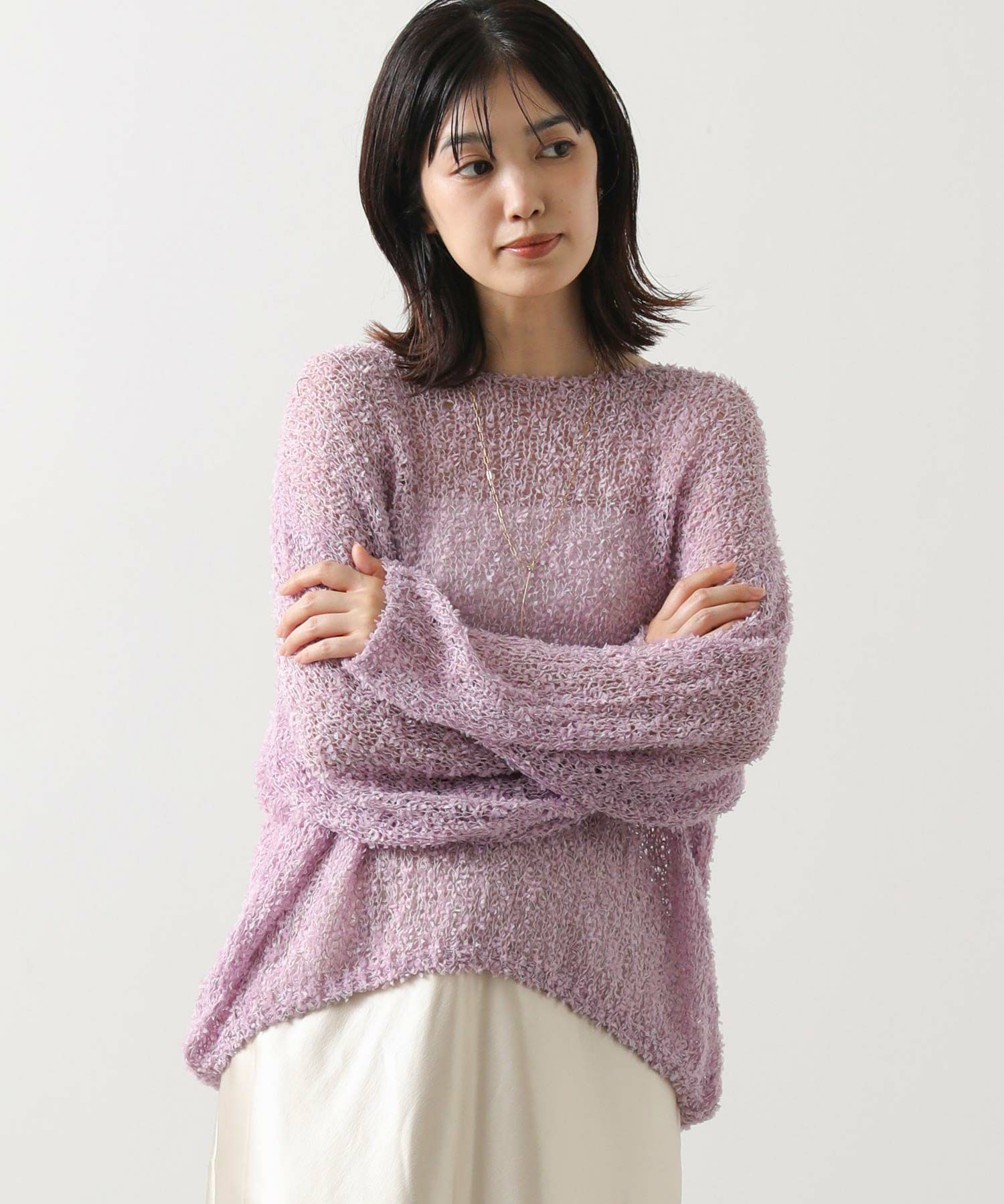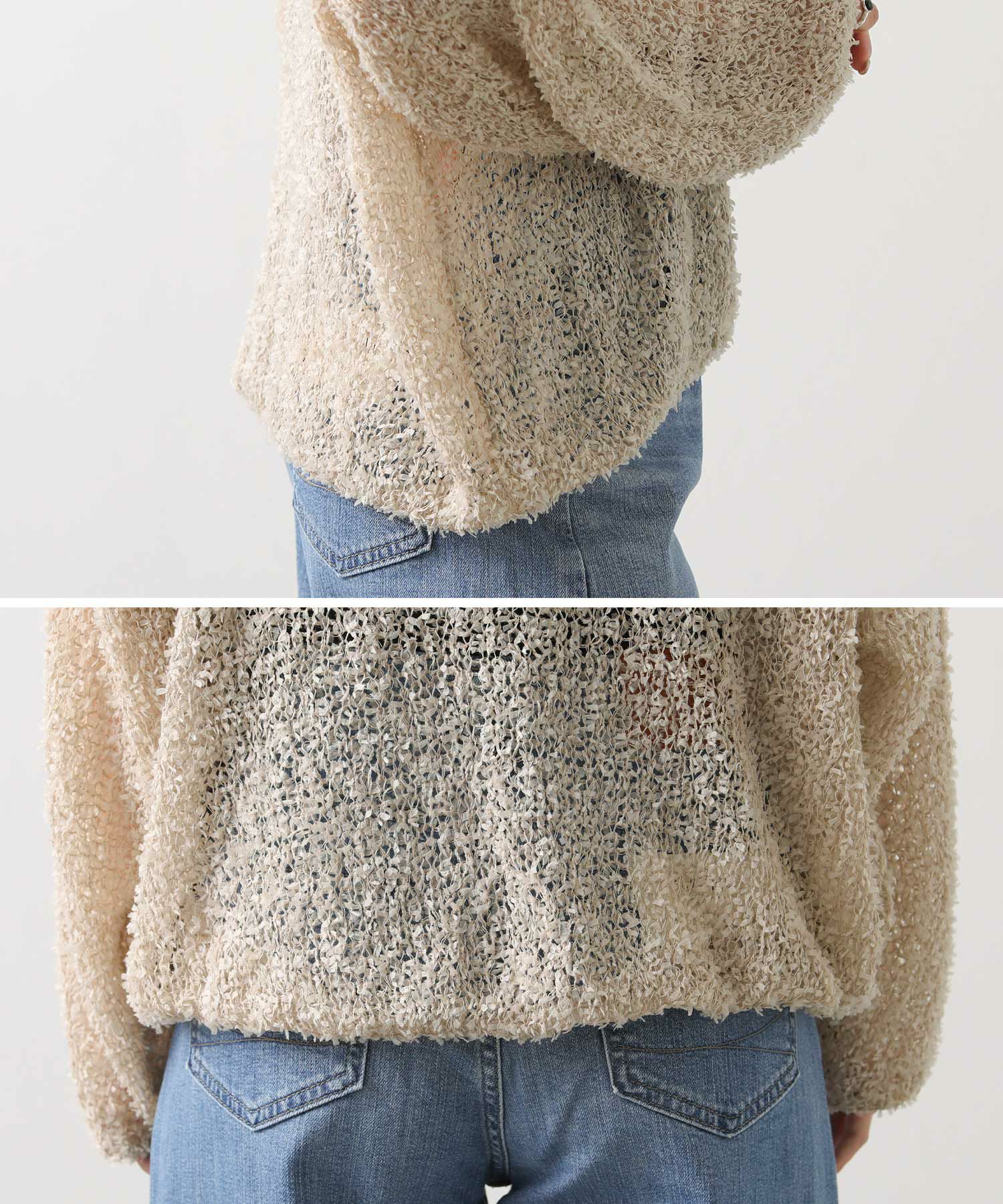 【tomberduciel(トンベドゥシェル】から、春夏人気だった、リボンのようなテープが軽やかに躍る、表情豊かな糸で編み立てたニットプルオーバーをカラー別注。