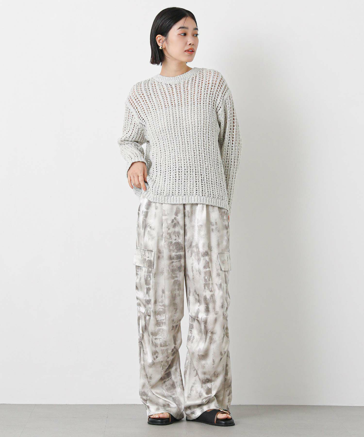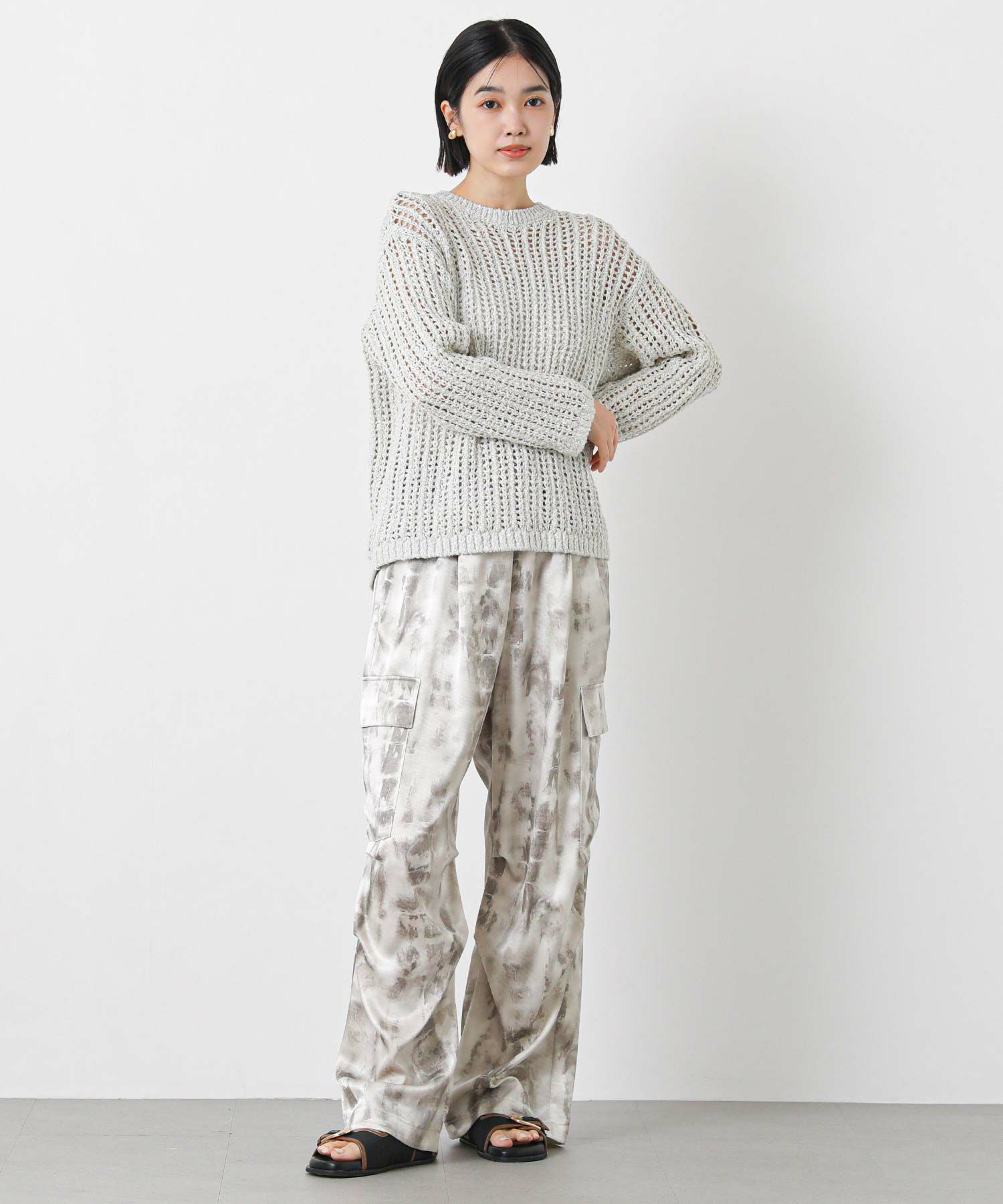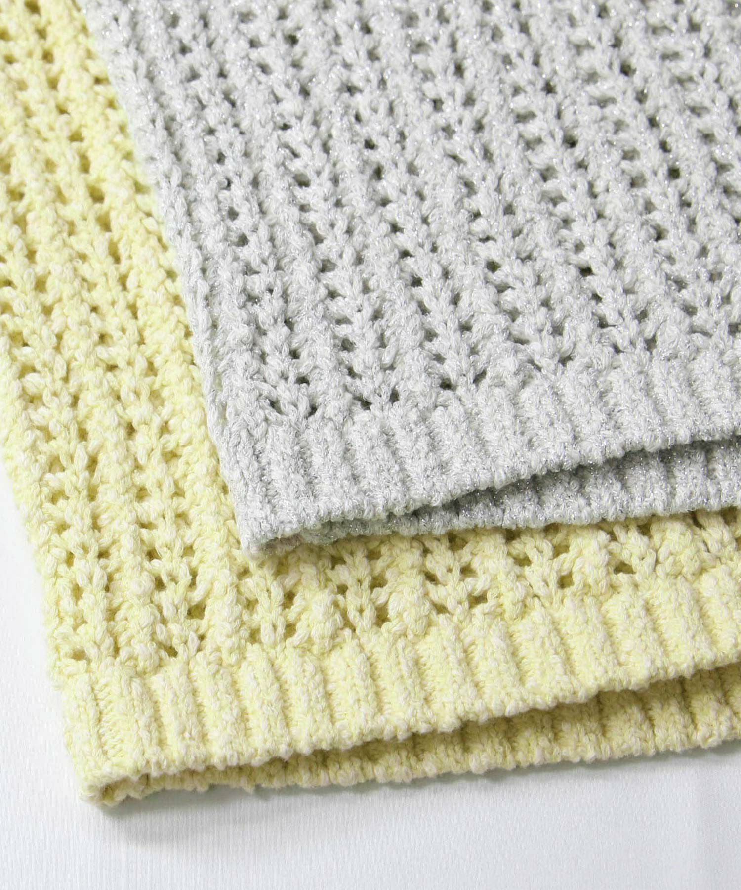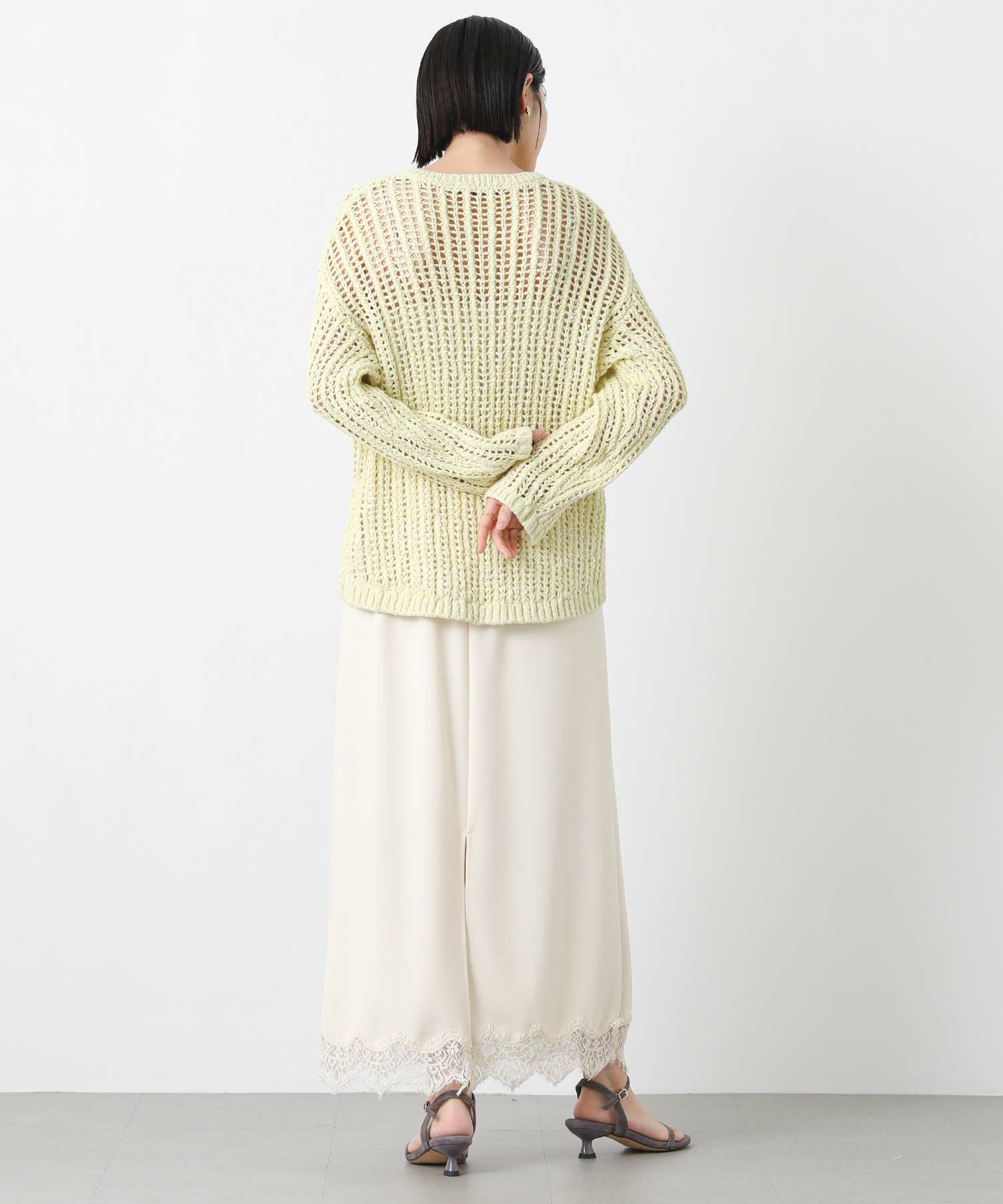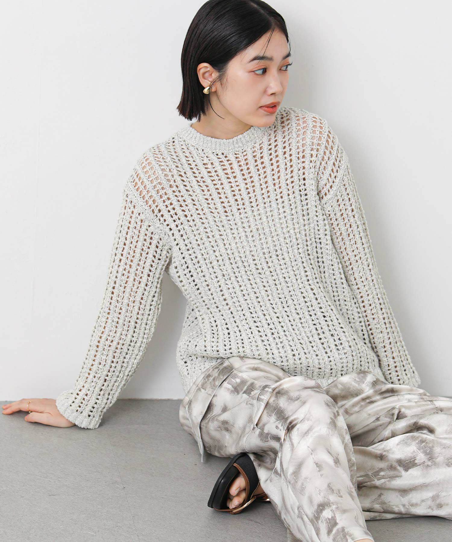 さらっとした肌触りのリリヤーンの糸を使用した、ざっくり感が可愛い透かし柄のニットプルオーバー。