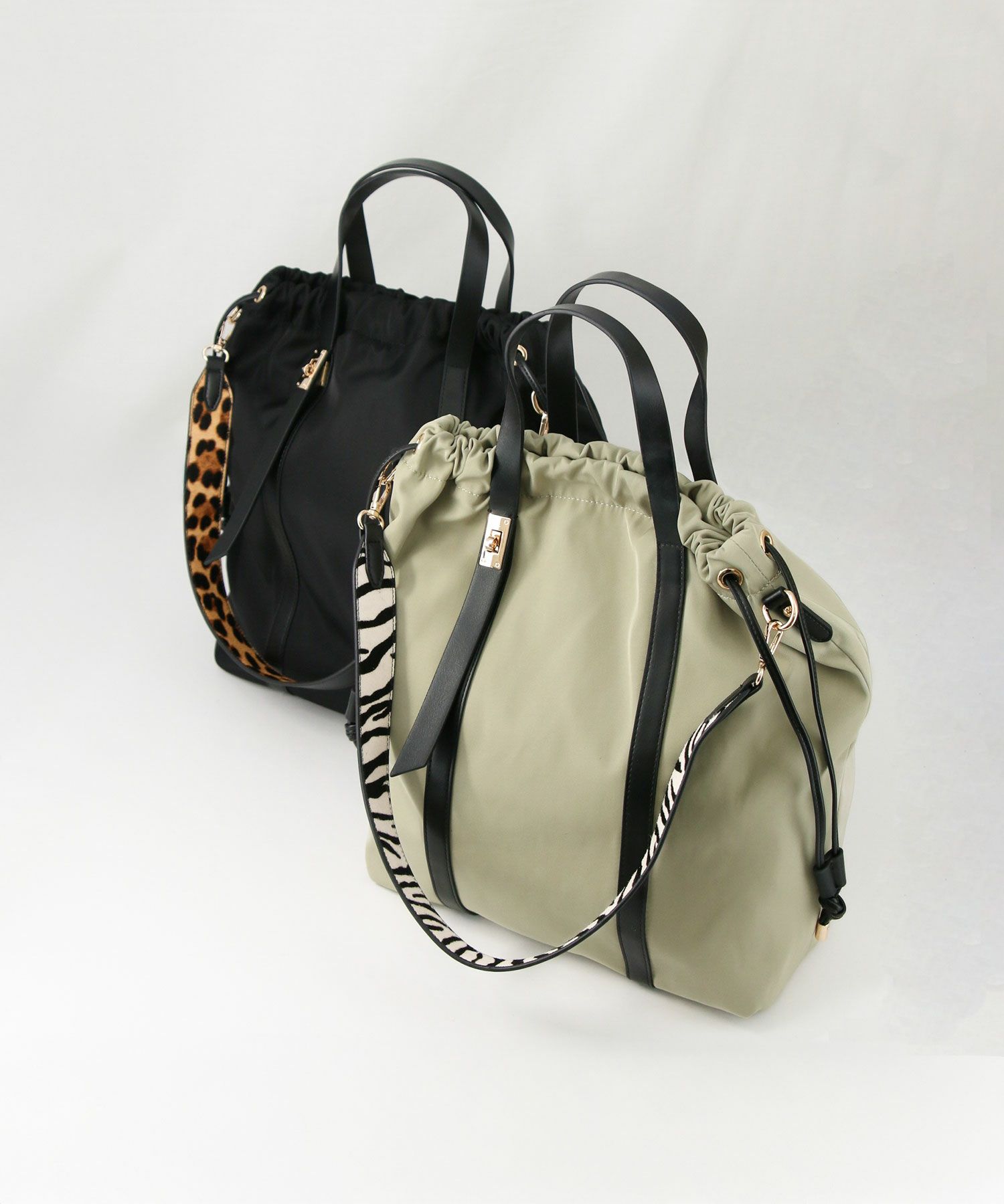 ブラックにはトレンドのレオパード柄、ベージュにはゼブラ柄のショルダーにし、大人な印象に仕上げました。