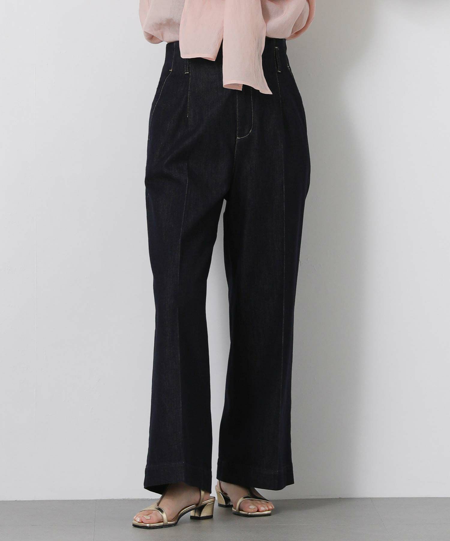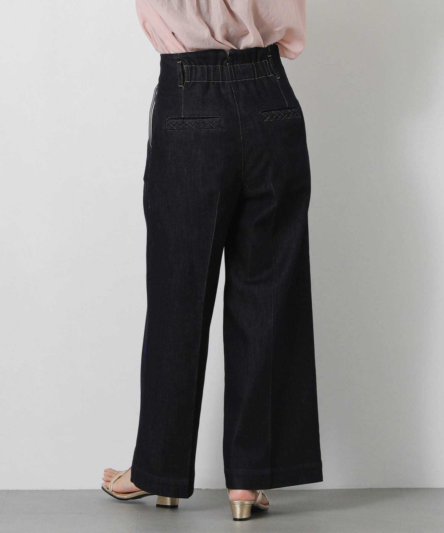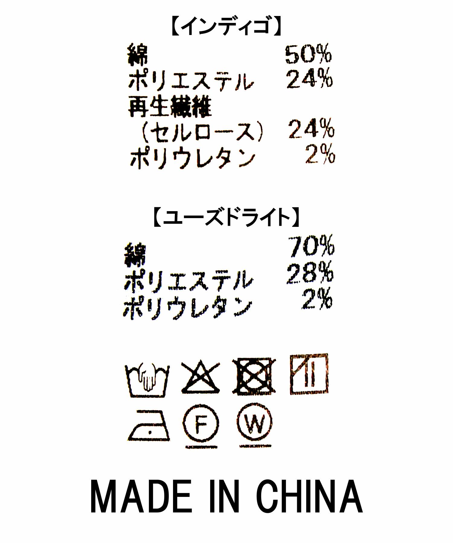 インディゴ:色落ちしにくい染色方法でお作りしており、キレイめな見え方を保って着用いただけます。配色のステッチでカジュアル感をプラスしました。