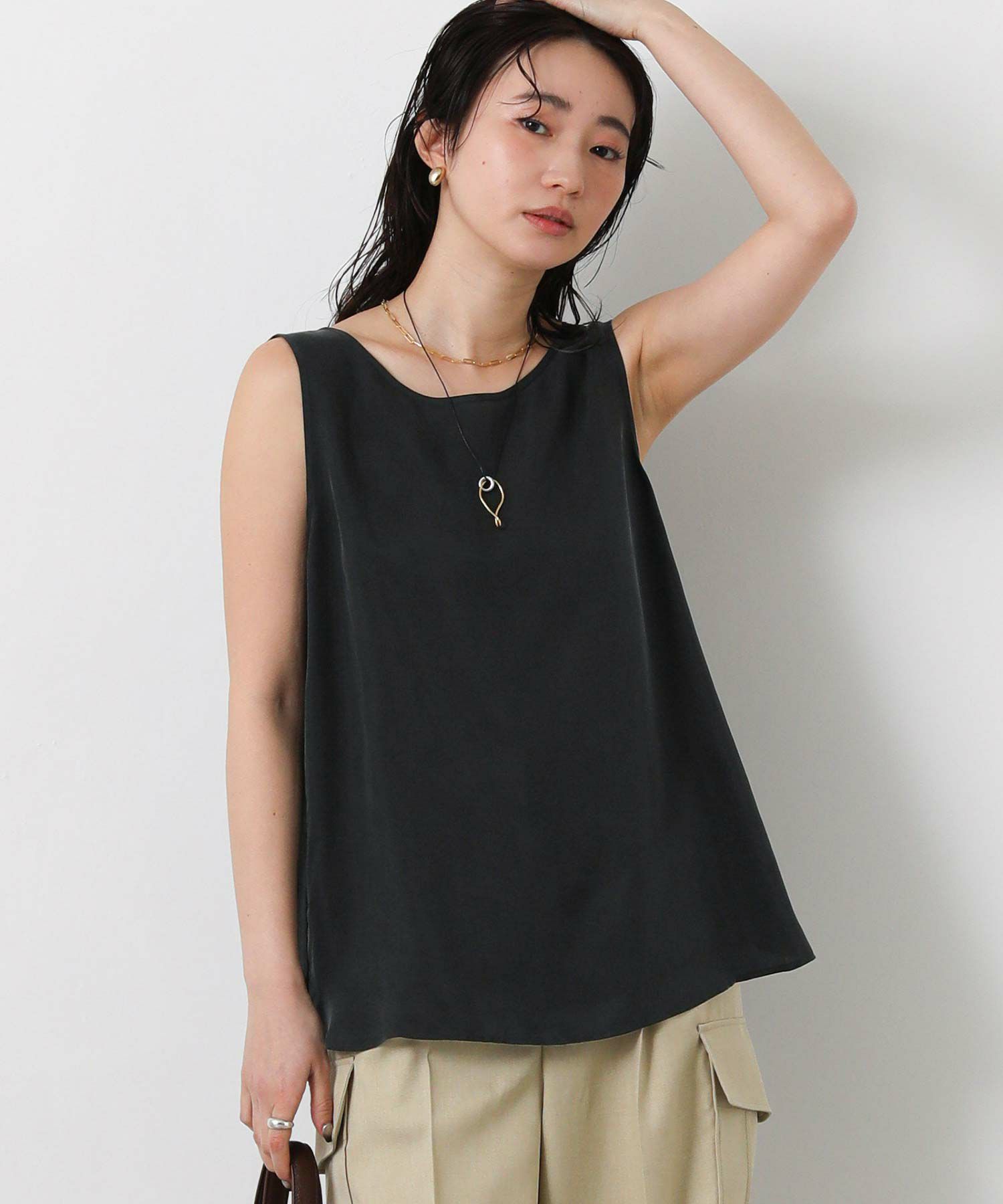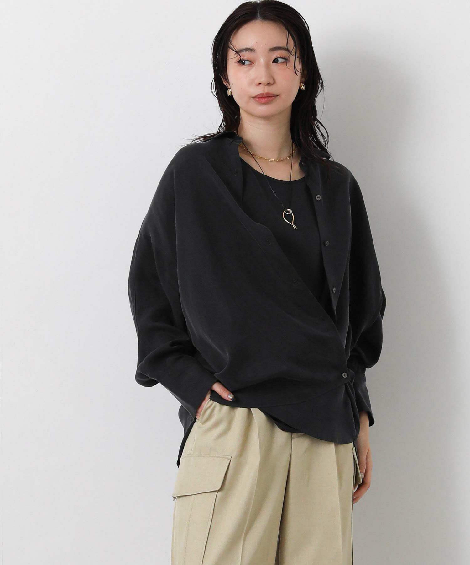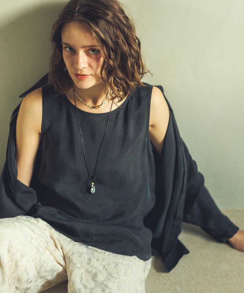 マットな光沢ととろみのある日本製のキュプラ素材を使用したブラウス。