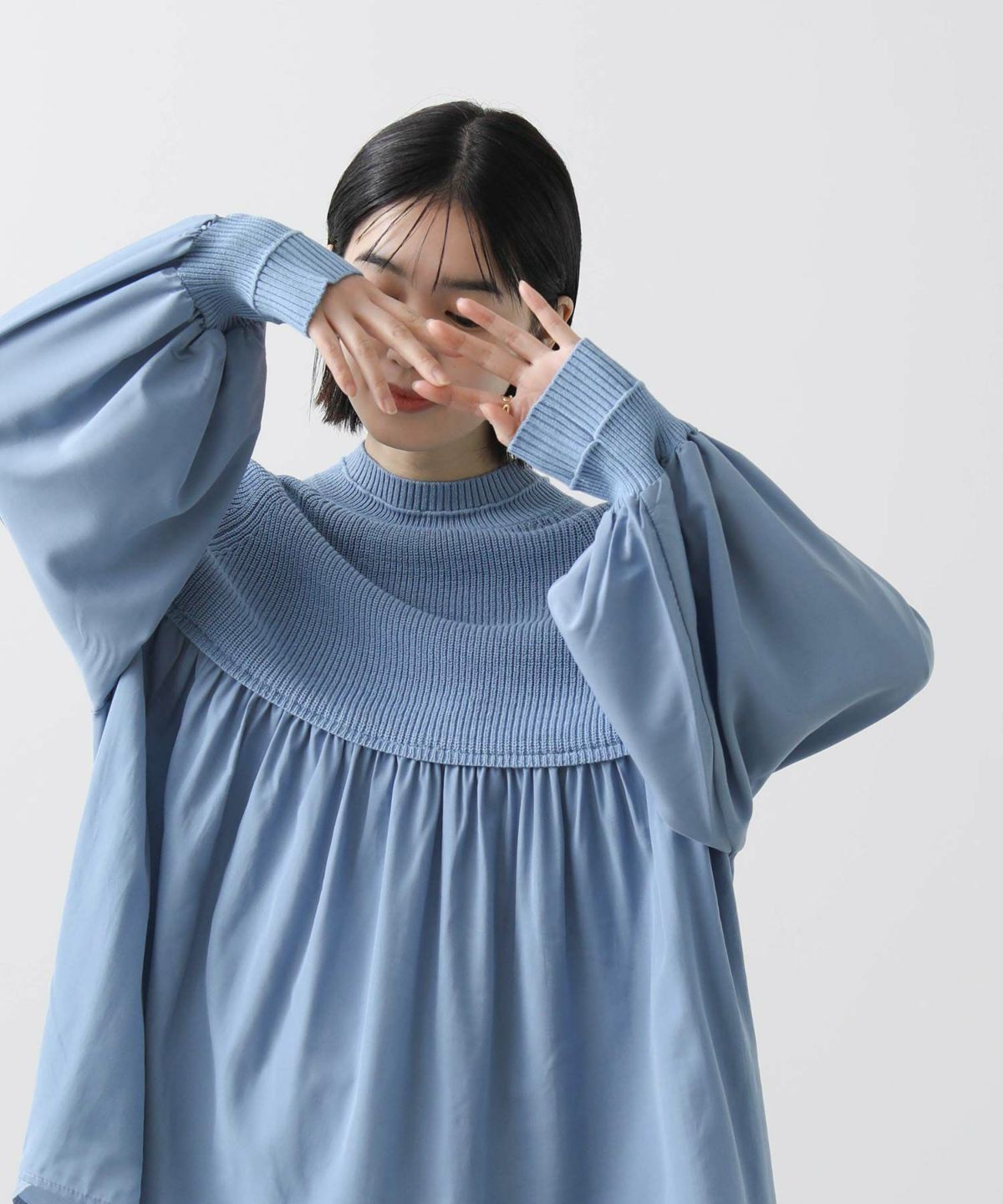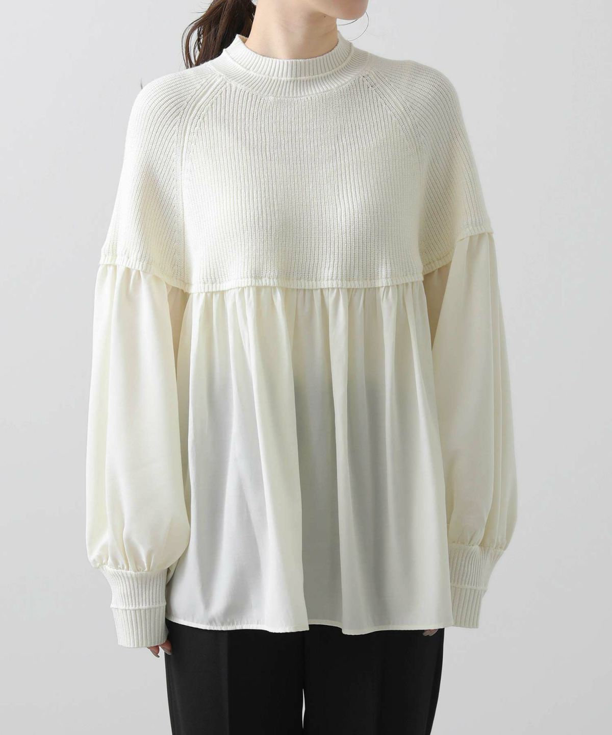 f.ラウンドニット切替チュニック