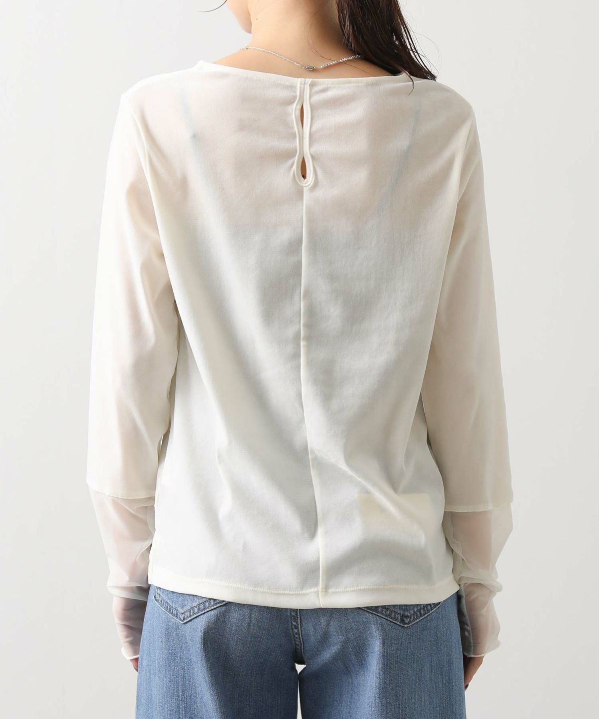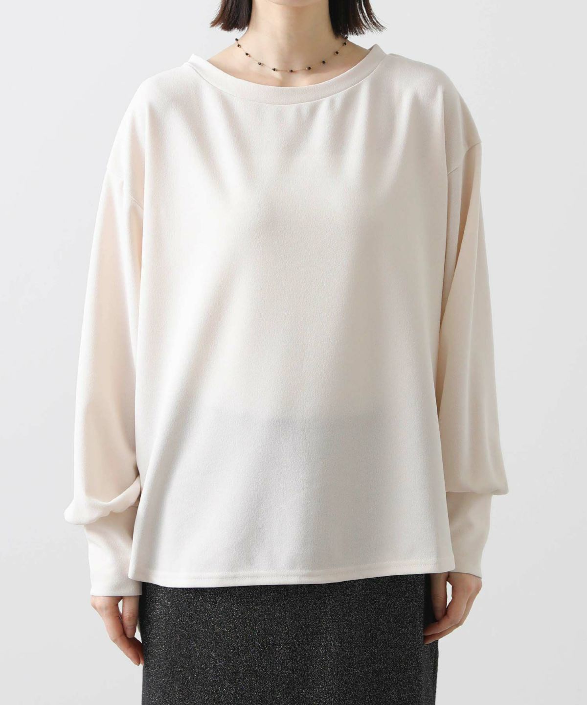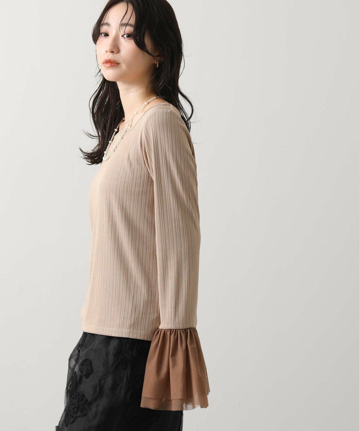 ベロア袖チュールボートネックトップス