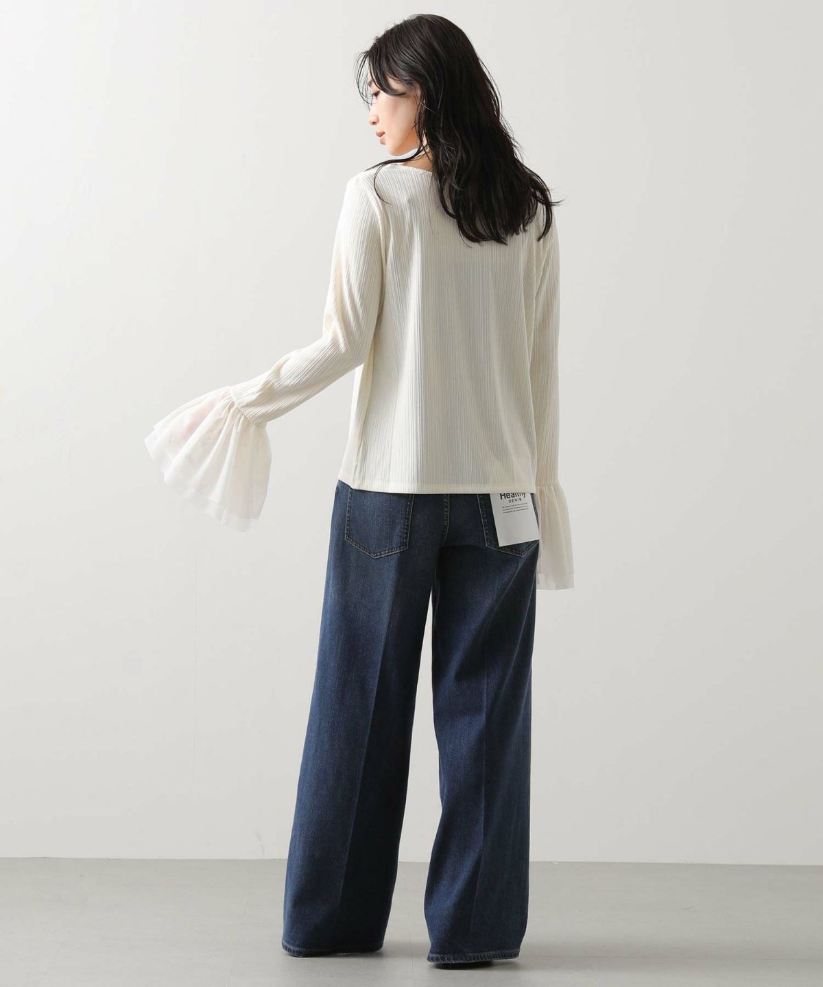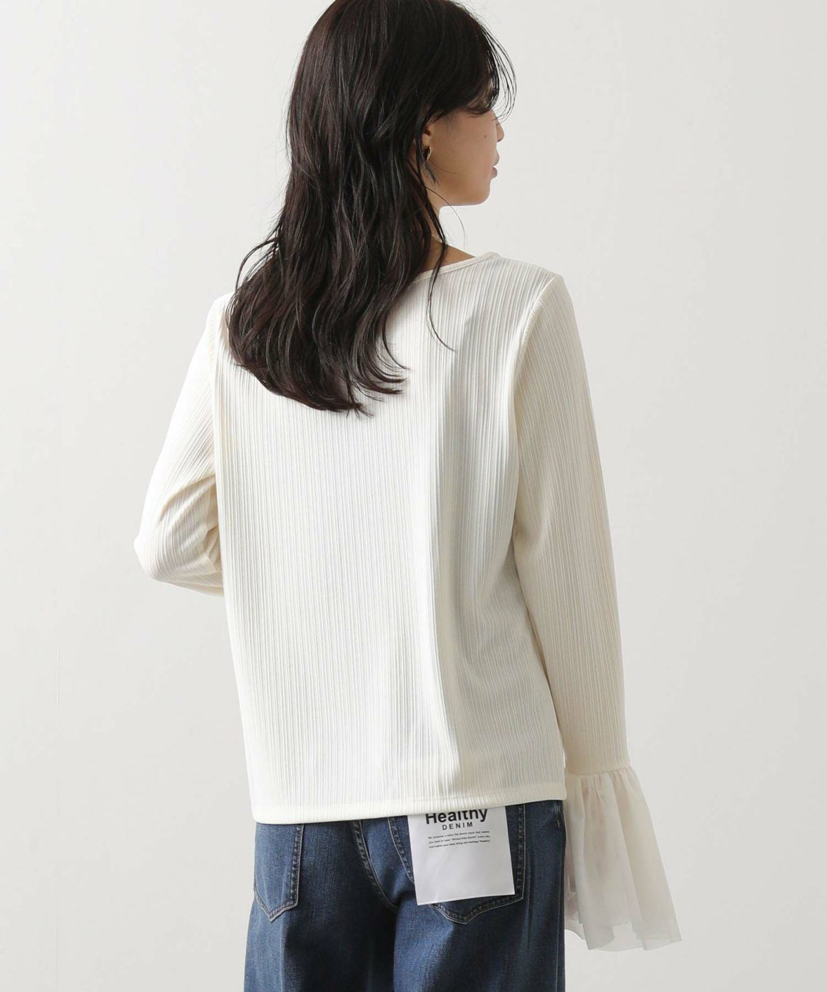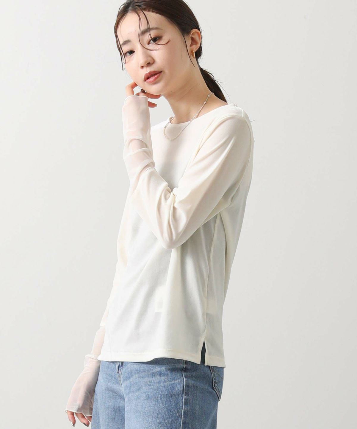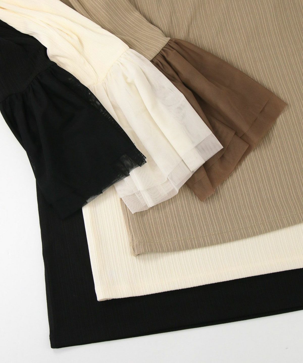 ベロア袖チュールボートネックトップス