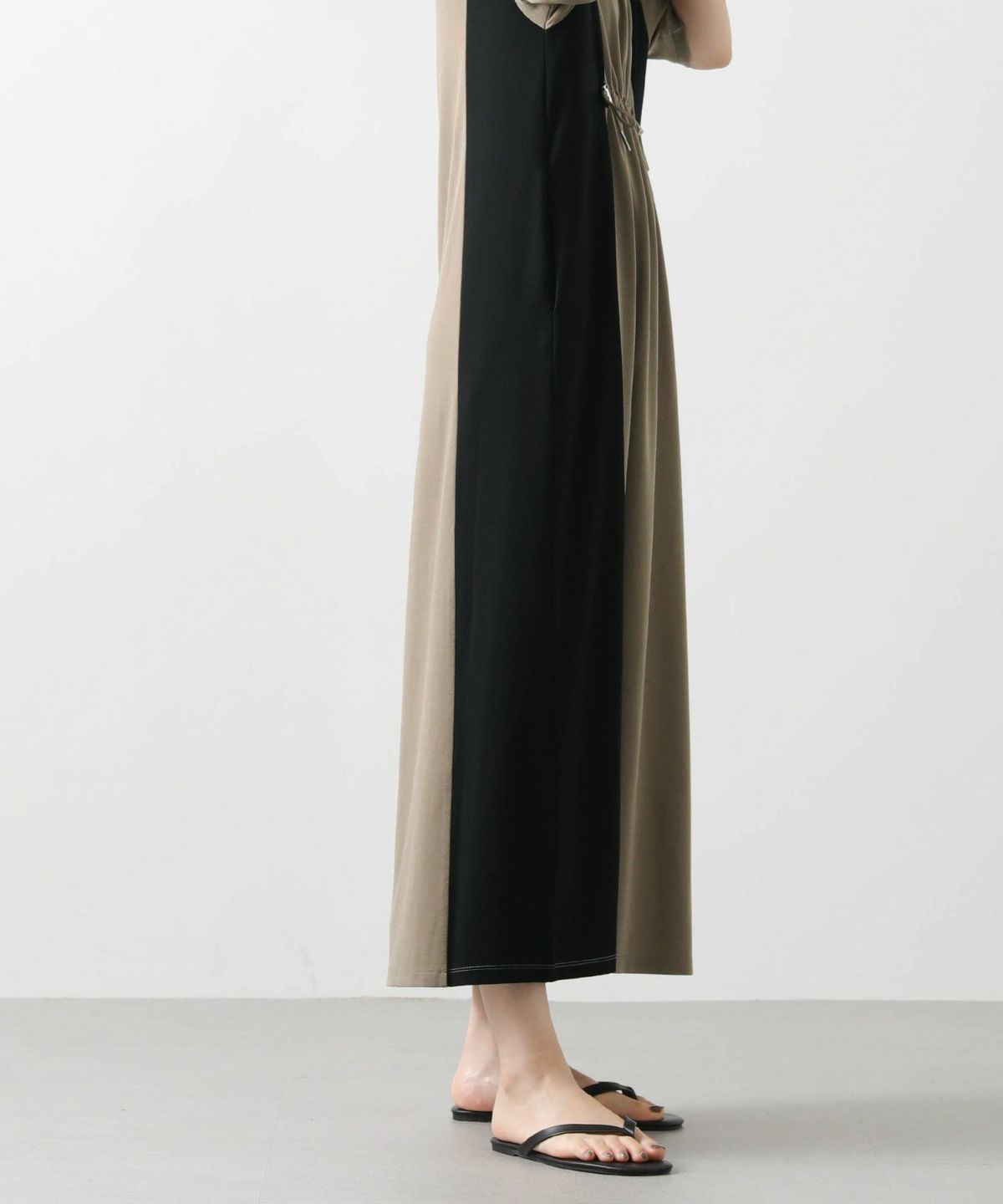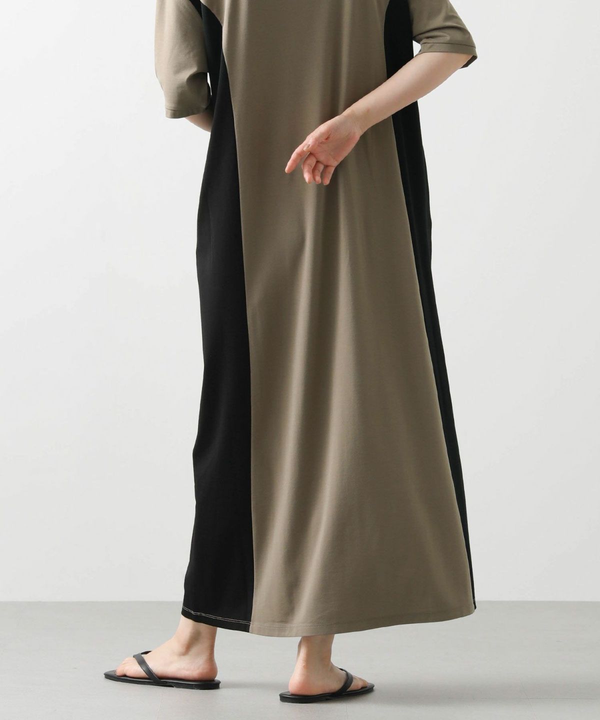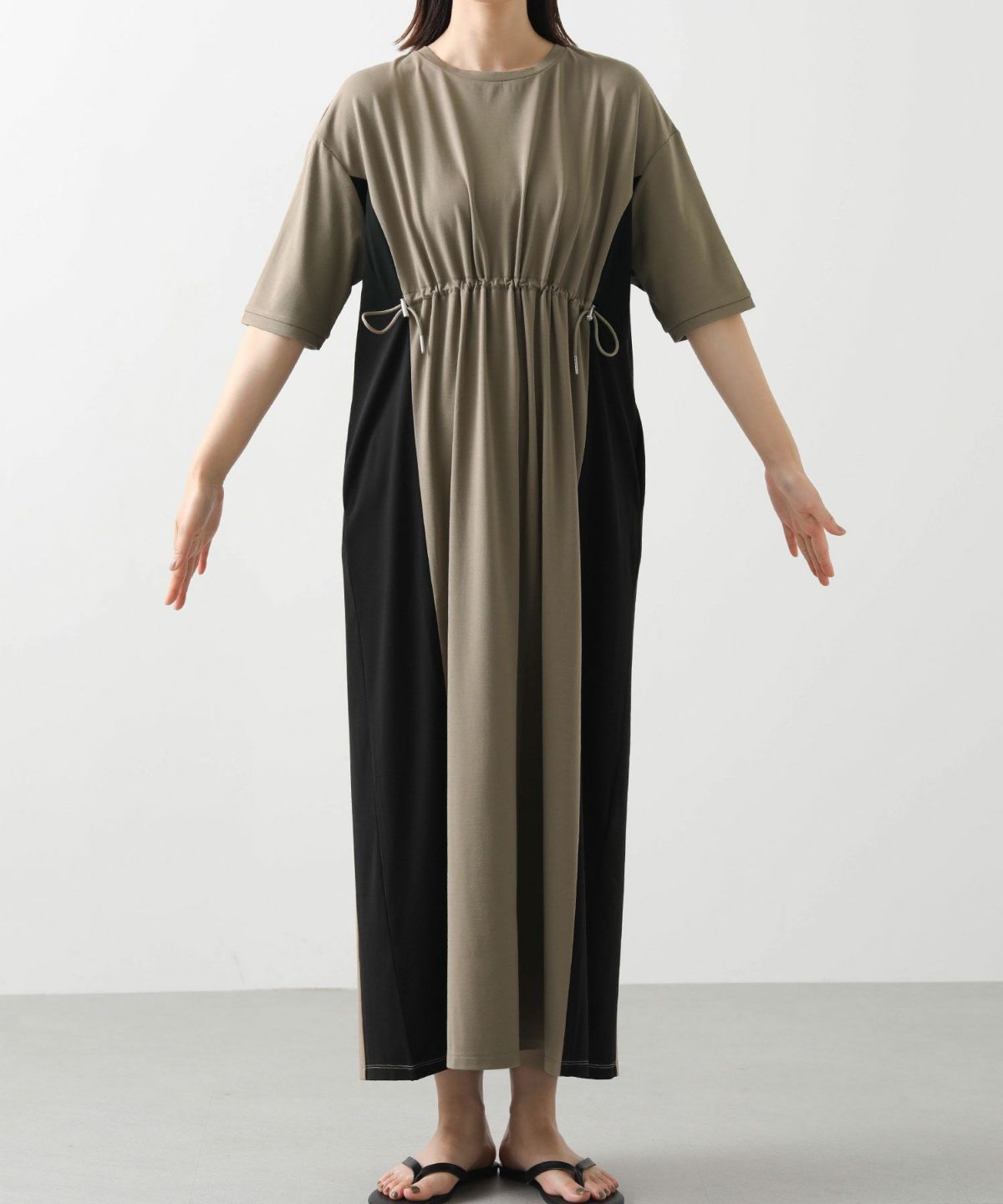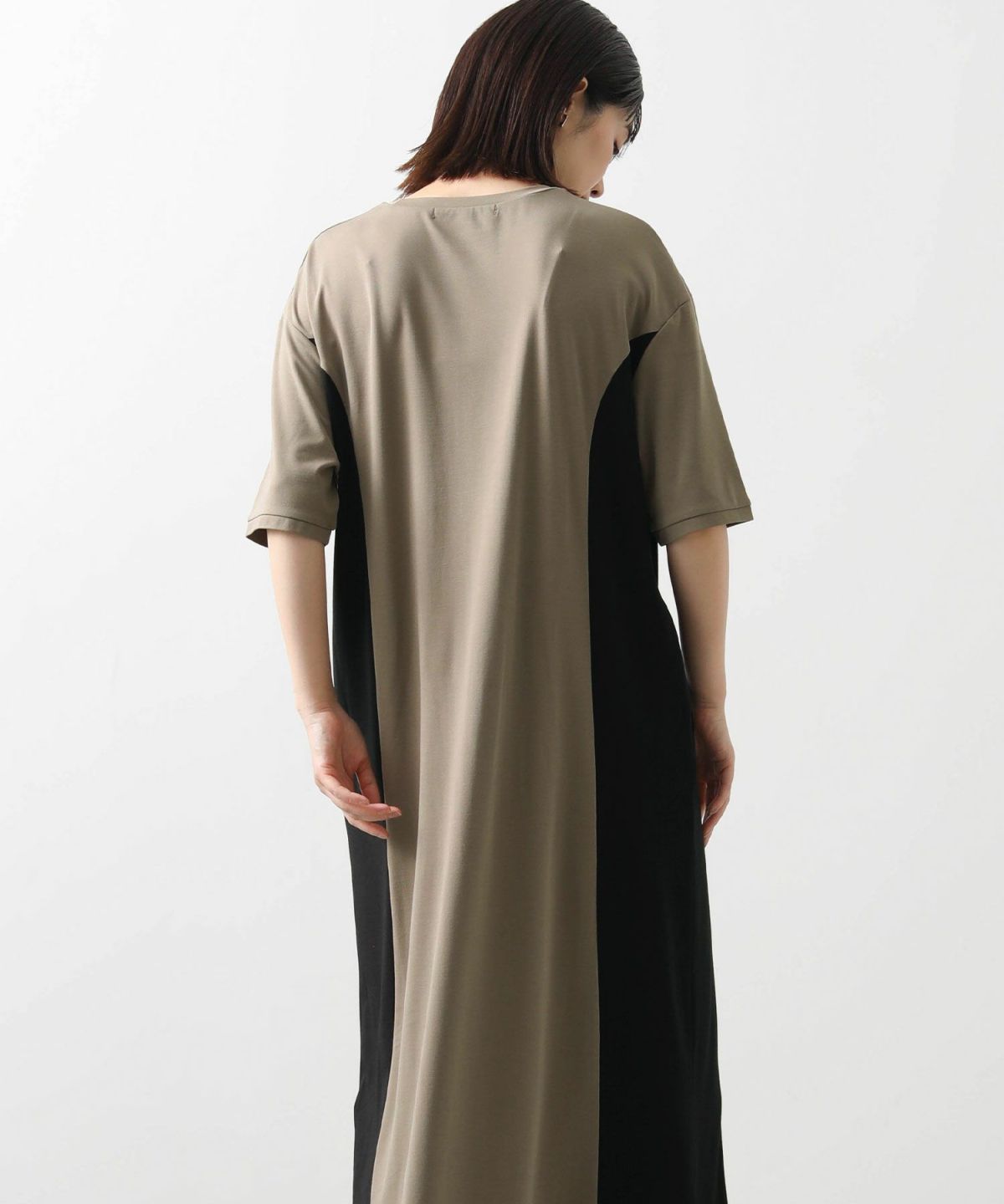 s.ドロストサイド切り替え5分袖ワンピース