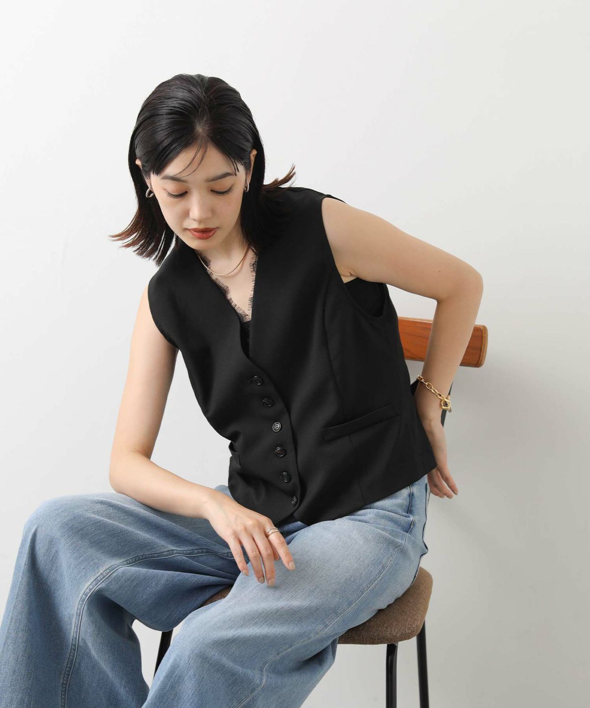 s.ラメシャギージャガードベスト