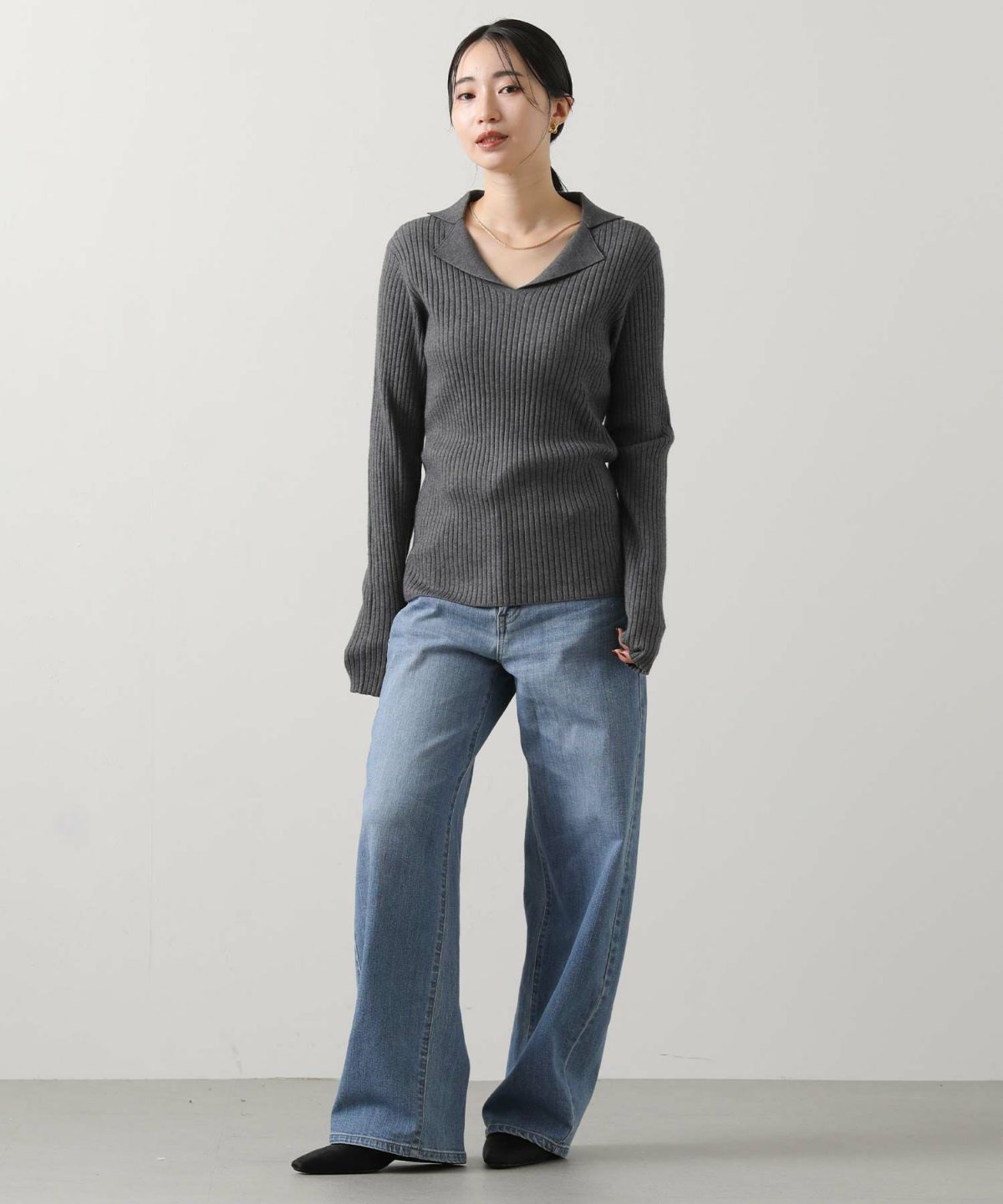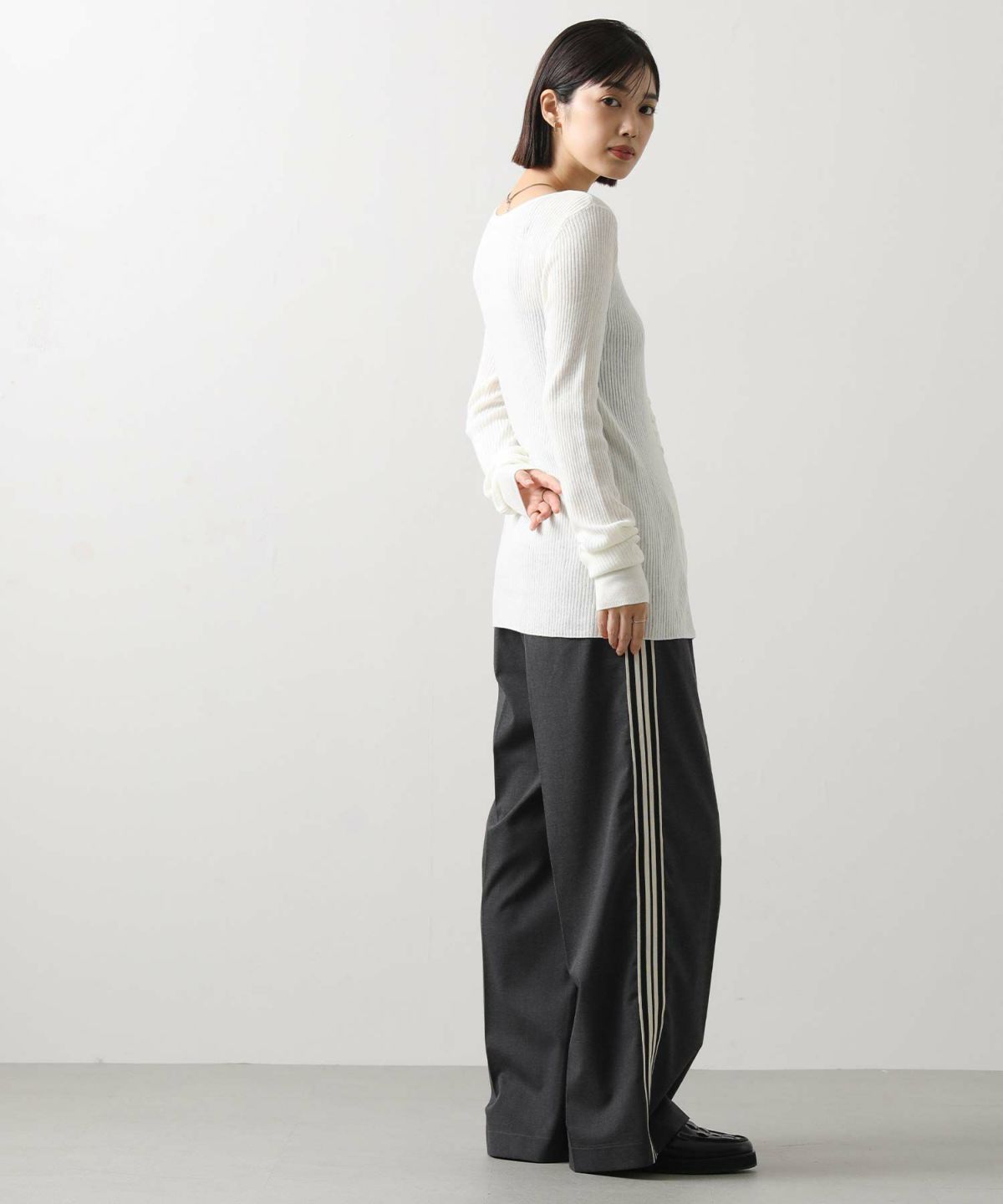 LUウール混前後2WAYリブニット