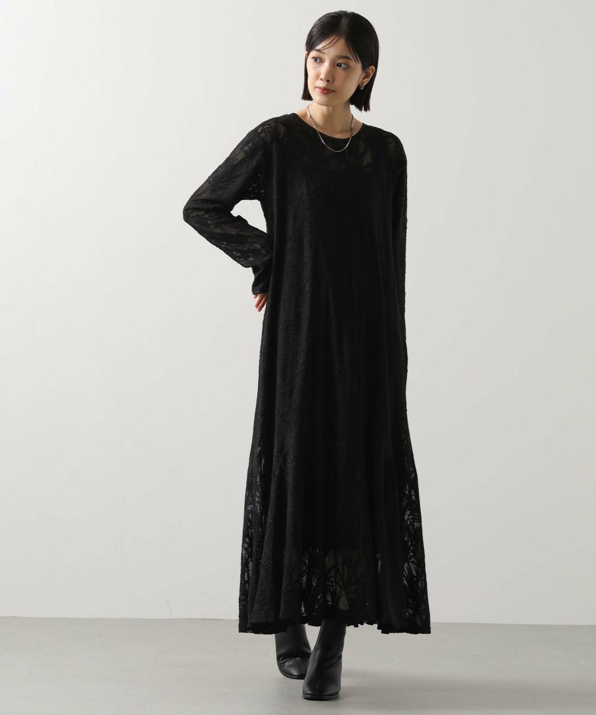 s.シアーレースフレアワンピース