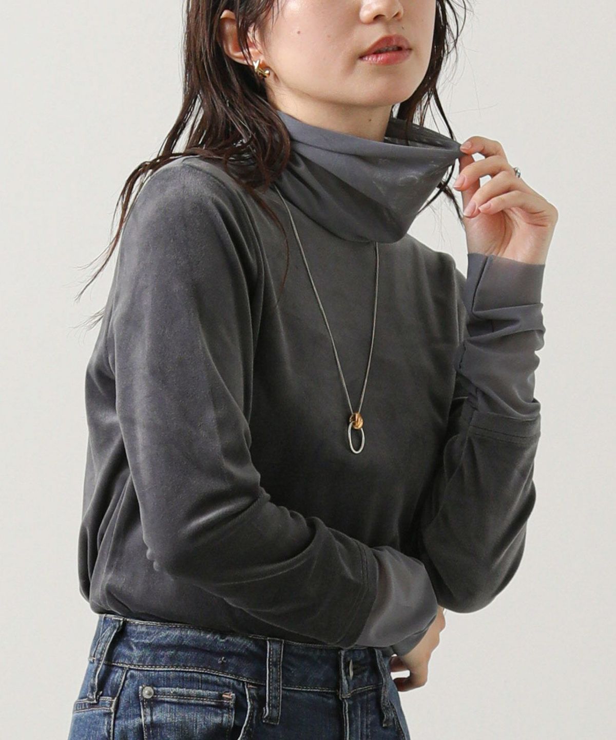 ベロア×シアータートルトップス
