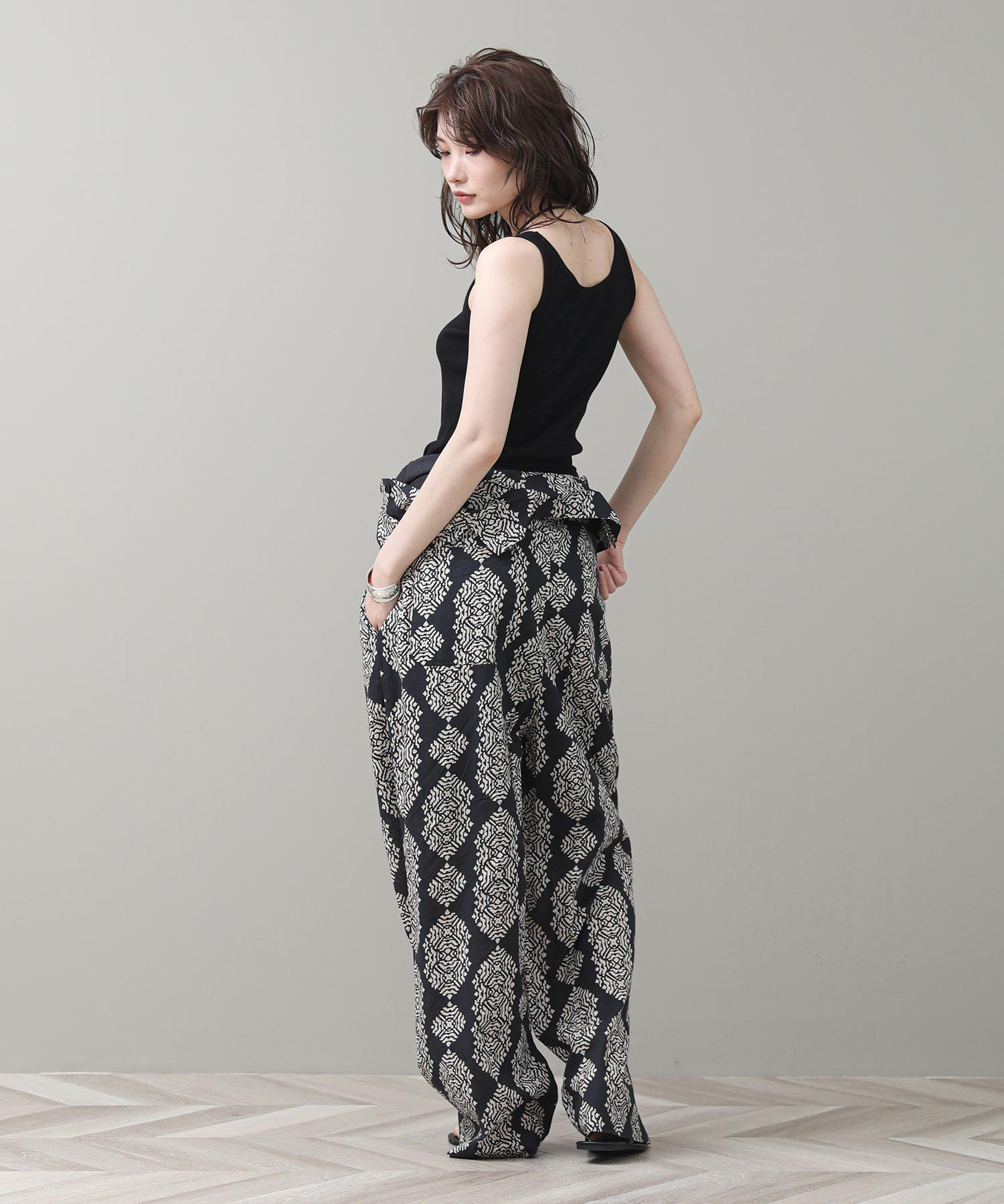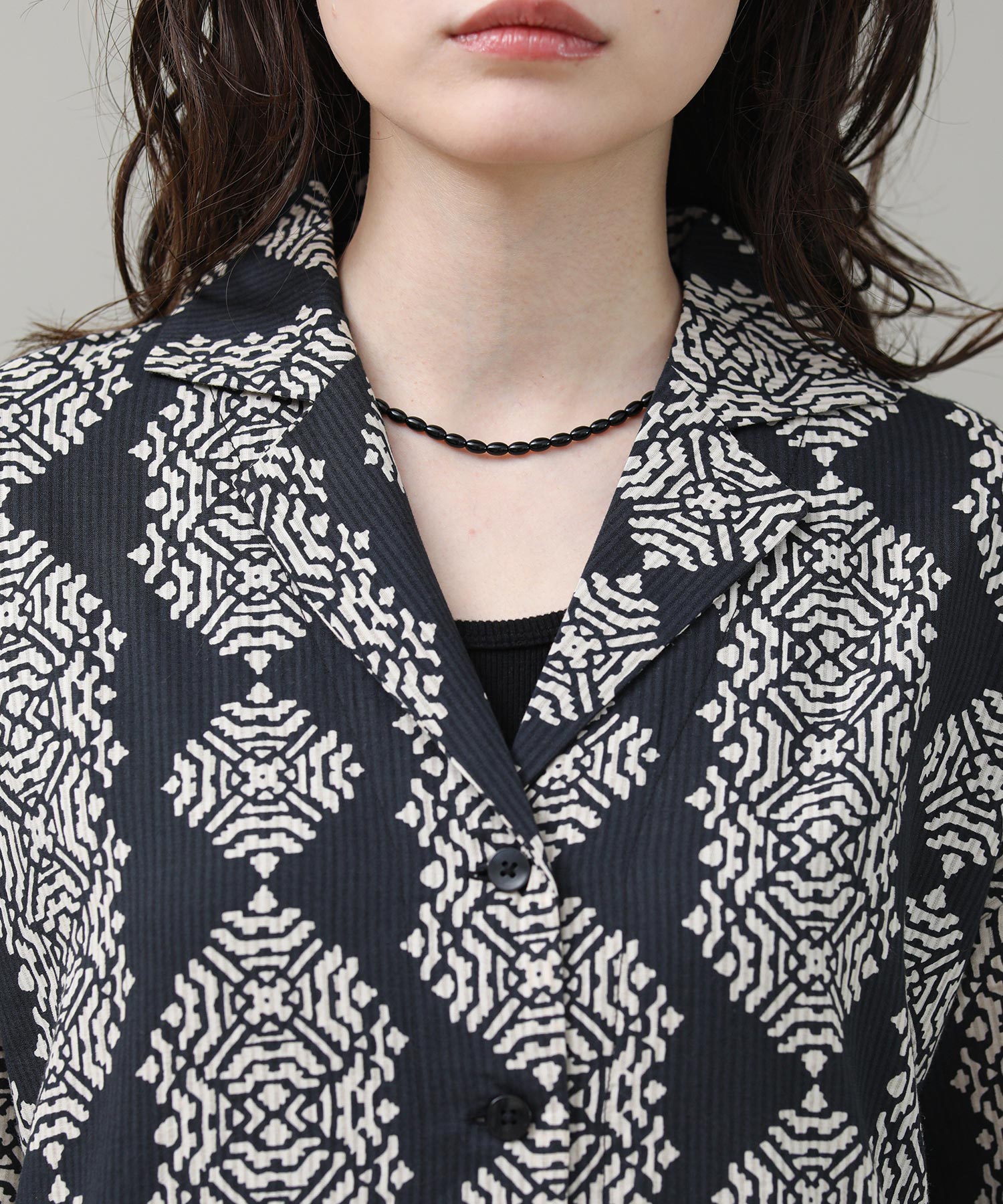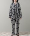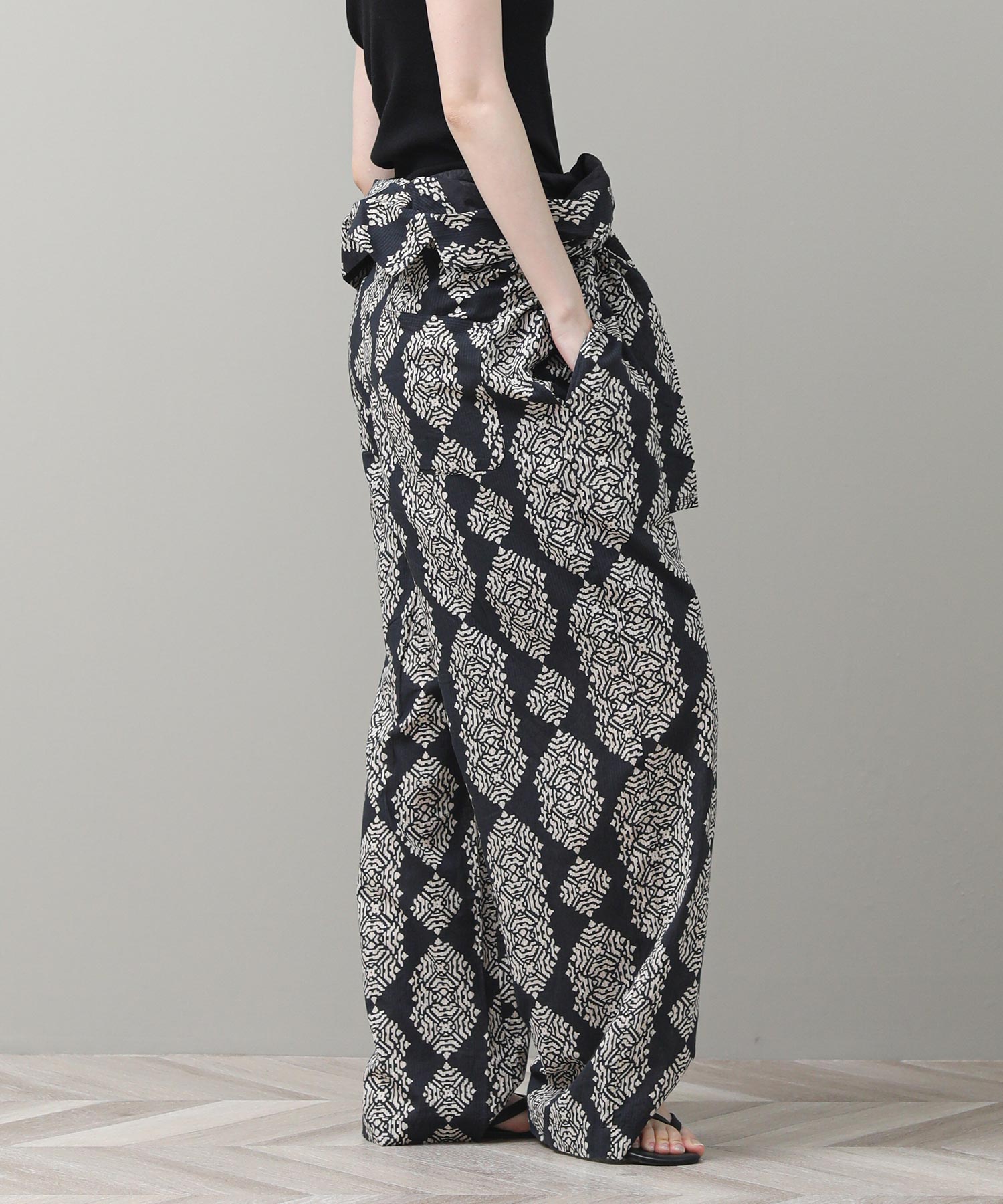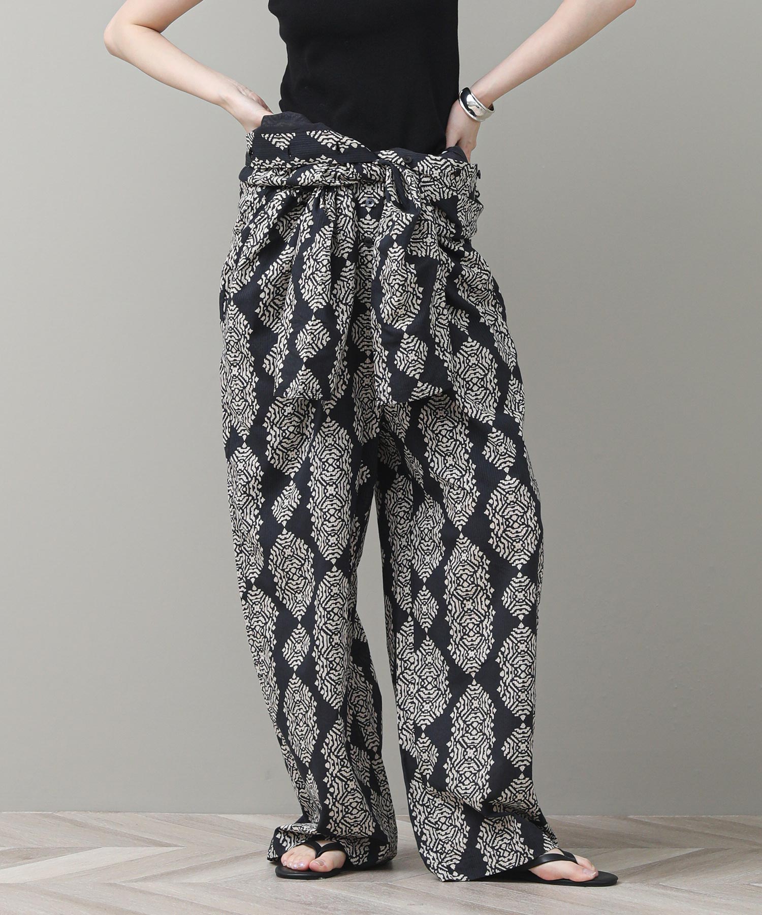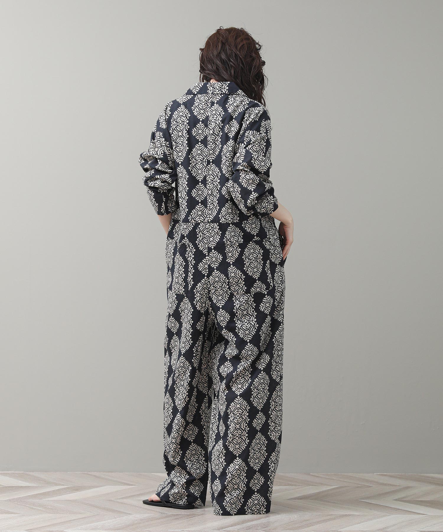 そのままストンと着てパジャマ風に、あるいはウエストをブラウジングしてシルエットを変えて楽しむこともできます。背面には便利なポケット付き。裏地付きなので、薄手素材でも透けを気にせず着用可能です。膝下は裏地を省き、風通しの良さと涼しさを実現しました。袖口の無駄な装飾を省いたシンプルなデザインが、軽やかな着心地をさらに際立たせます。70年代のヒッピーから着想を得たエスニックなジオメトリック柄は可愛らしすぎず、あえて辛口に仕上げて、モード感も感じられる一着。暑い季節でも心地よくまとえるコットン100%も嬉しいポイントです。