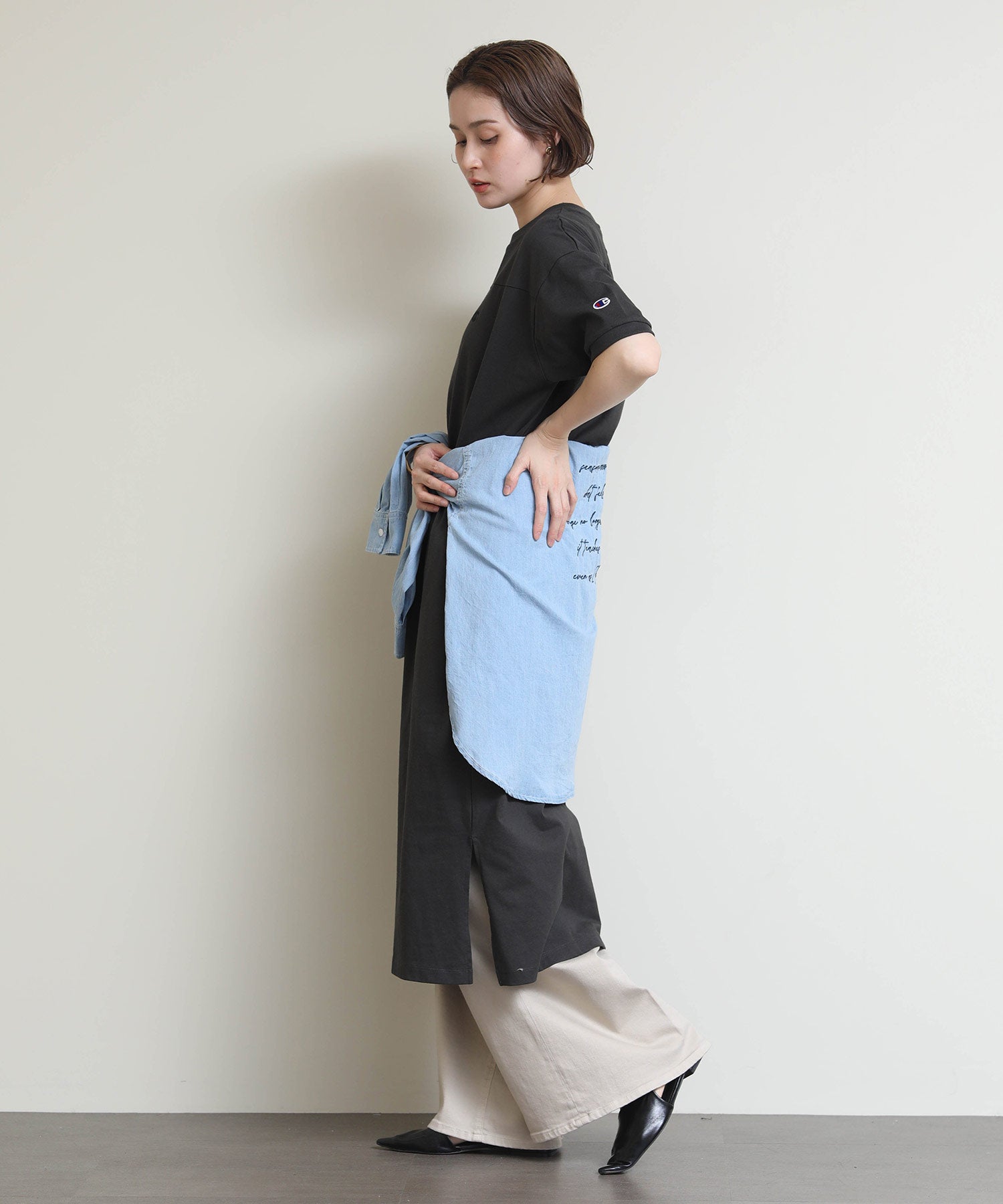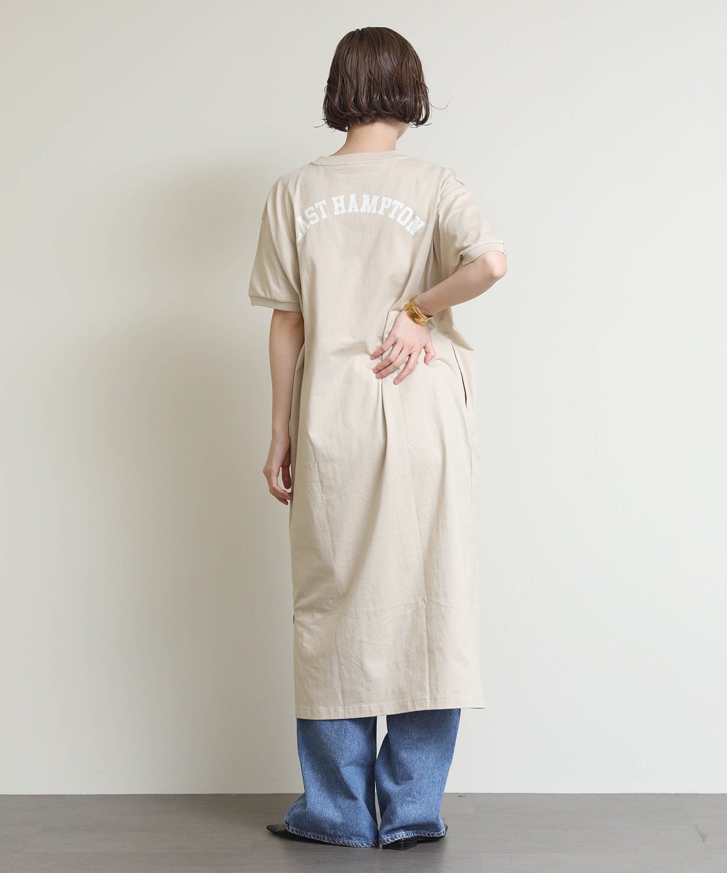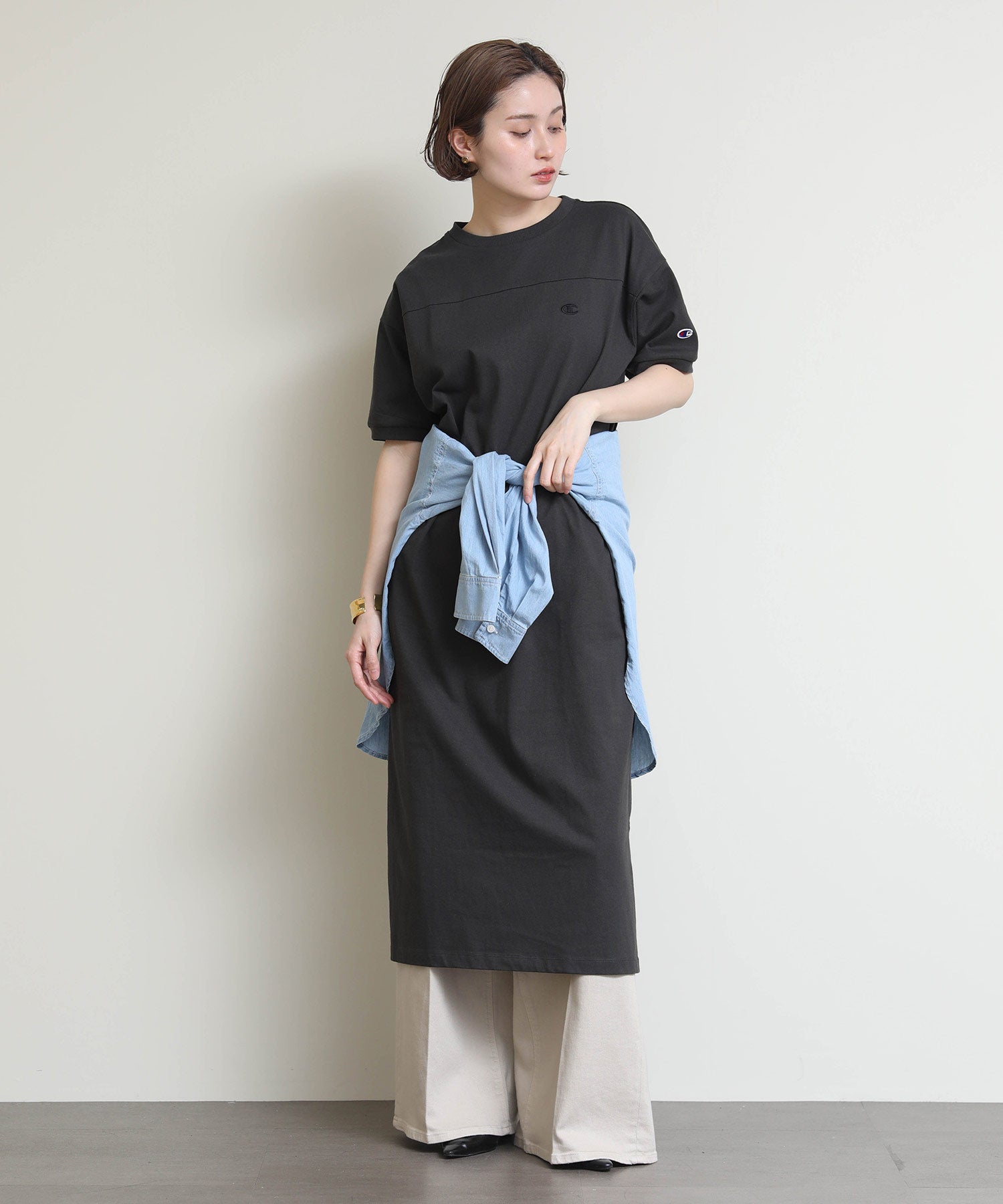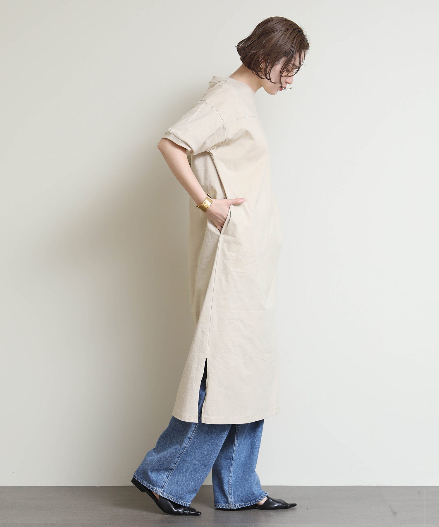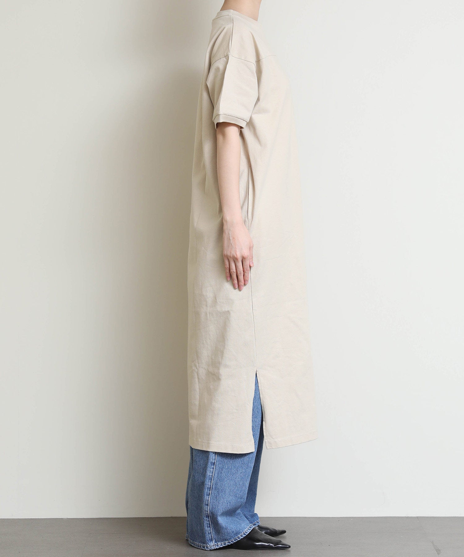 程よくリラックス感のある着心地ながらも、女性らしいシルエットを演出してくれます。一枚でさらっと着るのはもちろん、羽織りをプラスしてもバランスよく決まる万能アイテムです。