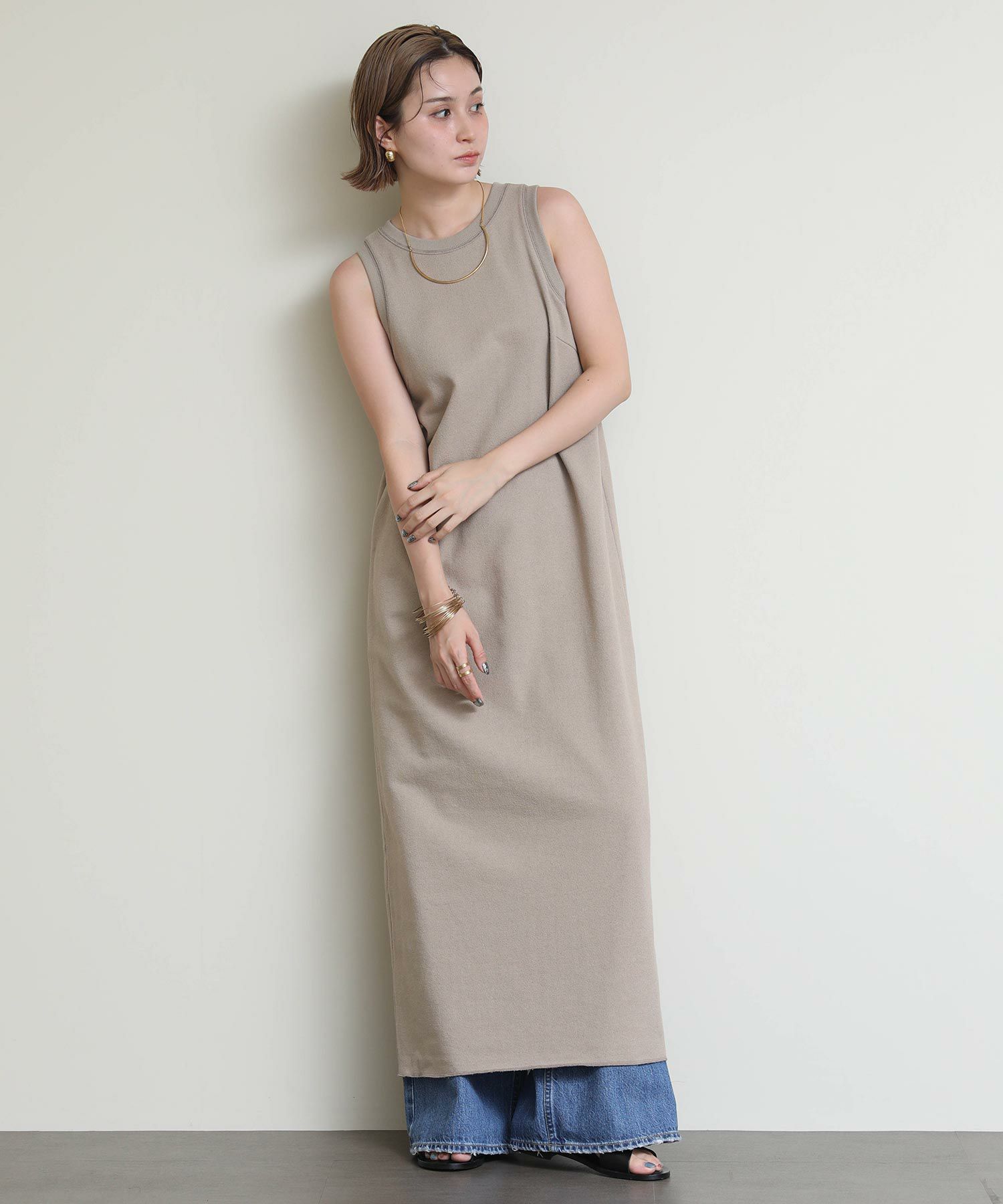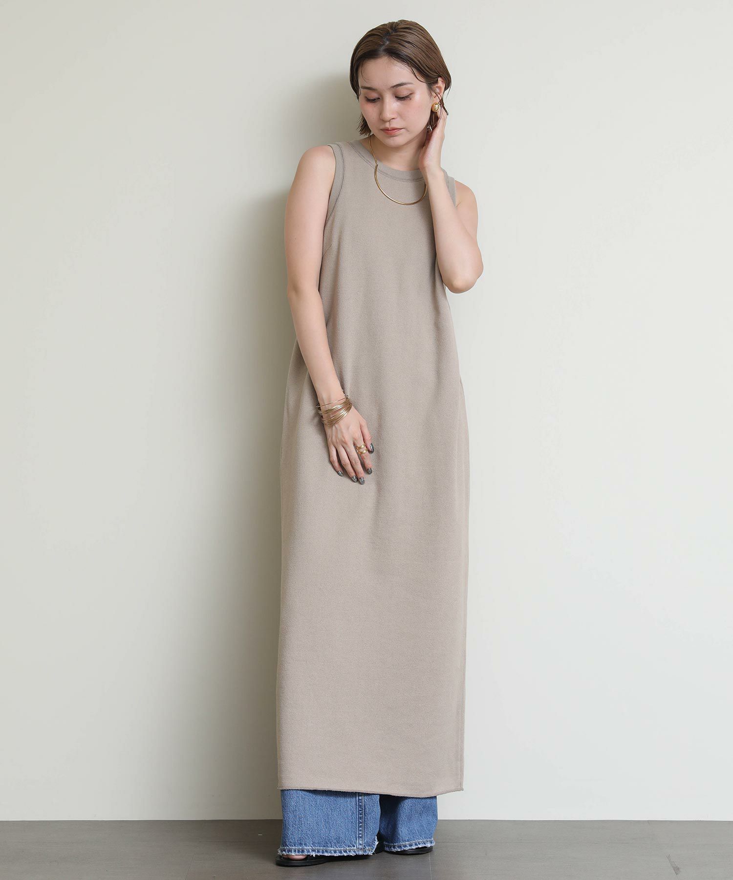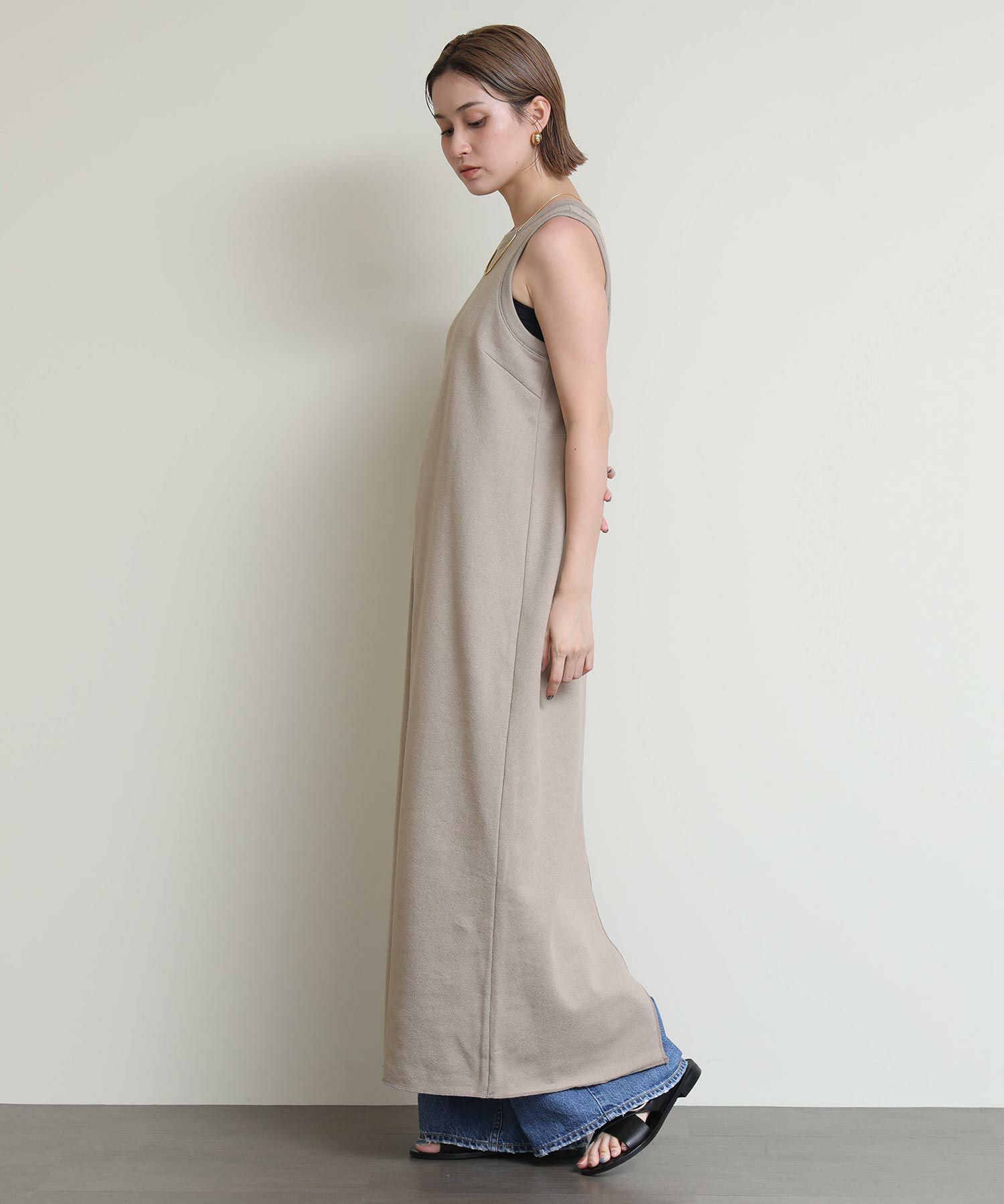 そのままサラッと着るのはもちろん、シャツやカーディガンなどのインナーとして合わせたり、幅広く着まわせるアイテムです。