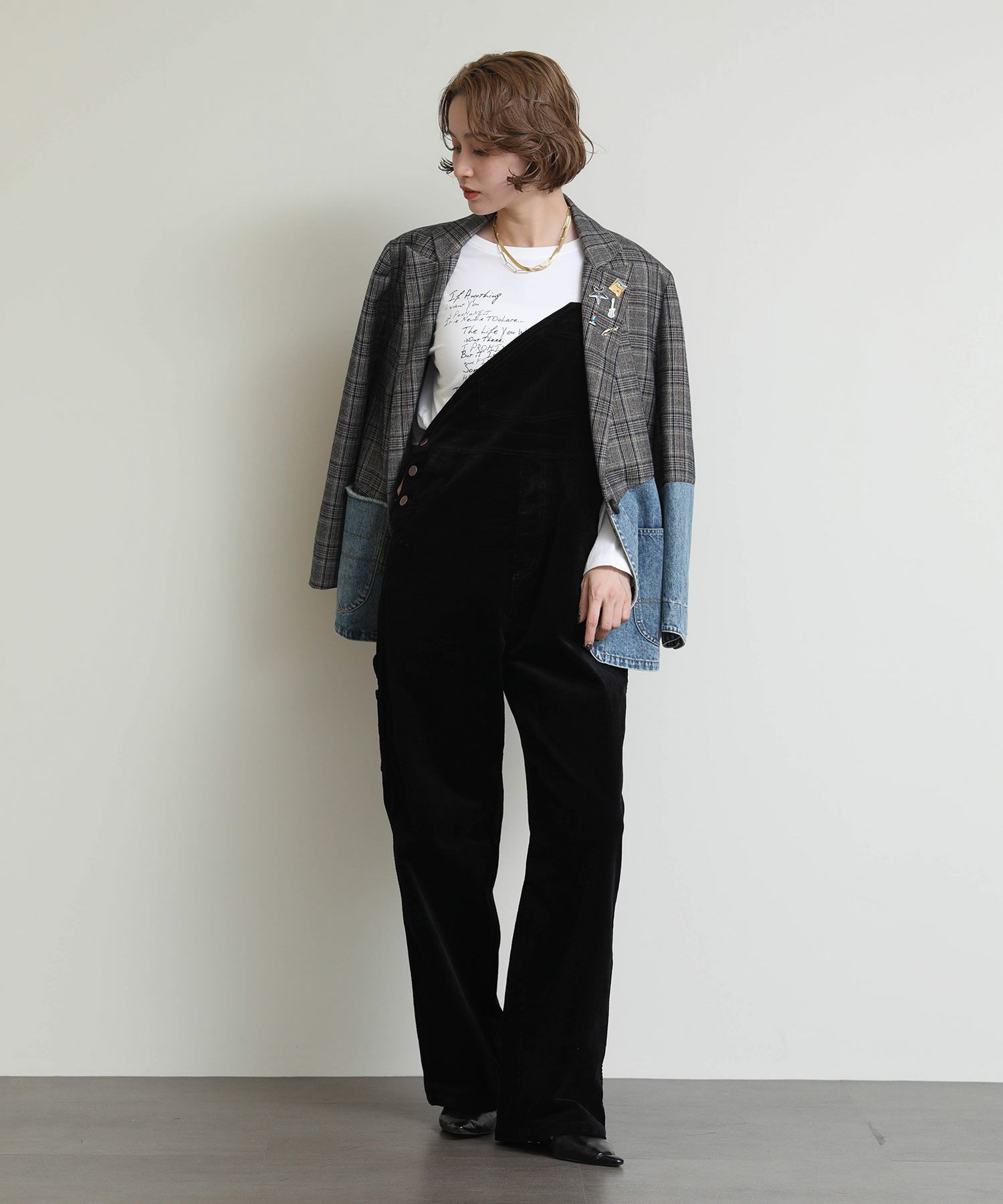 少しひねりを効かせた1枚でサマになるワンショルダーオーバーオール。