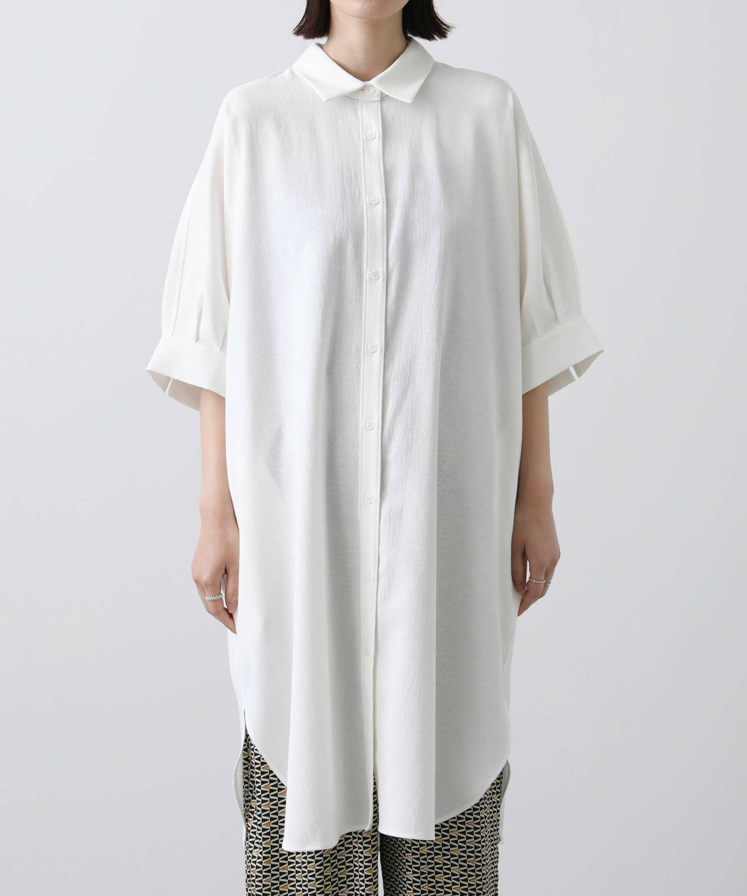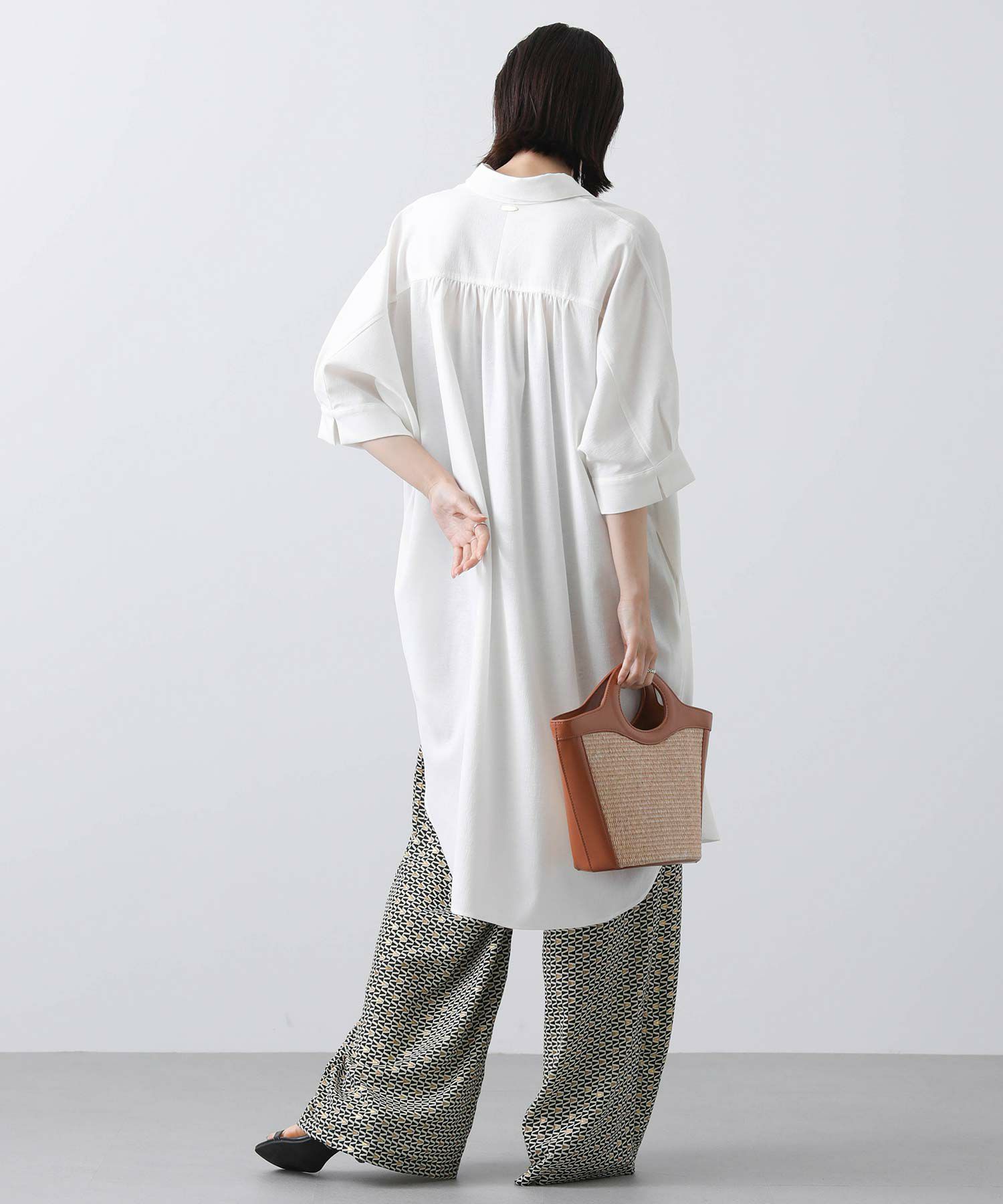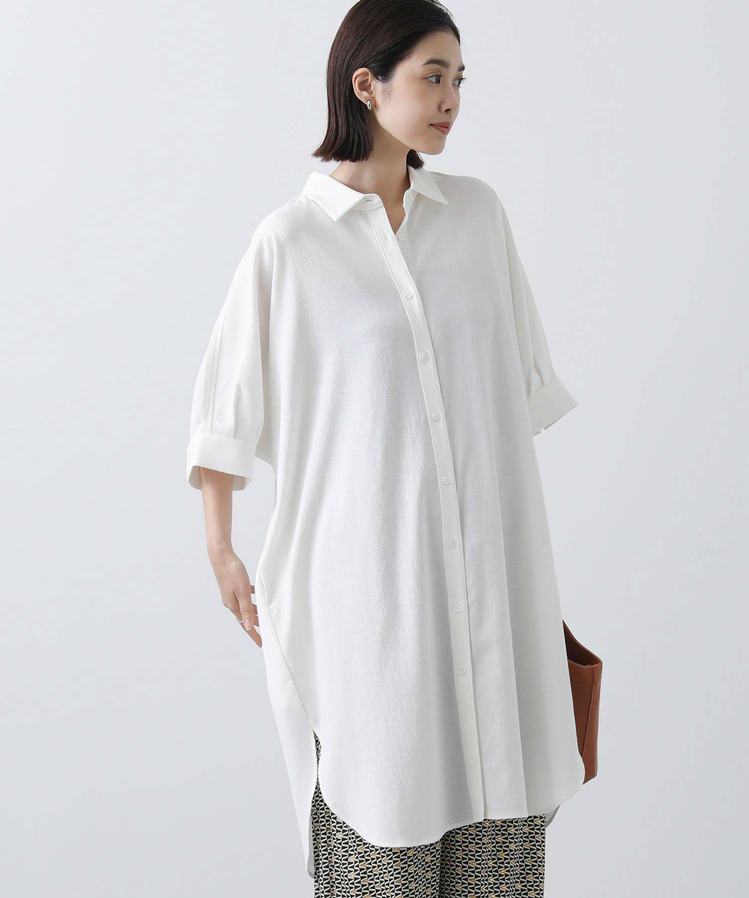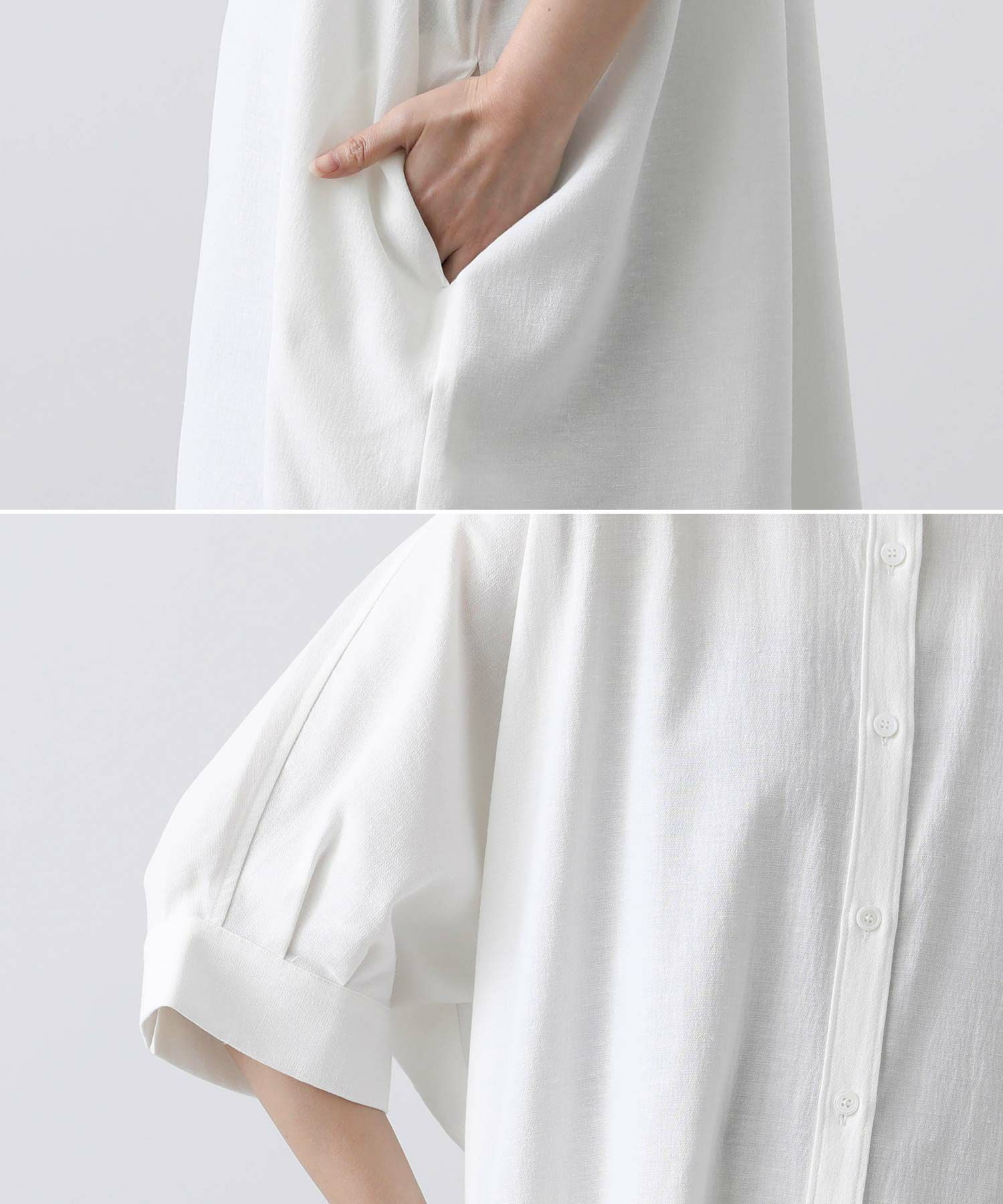 リネン混のさらっとしたドライな生地を使用しているので涼しく着て頂けます。