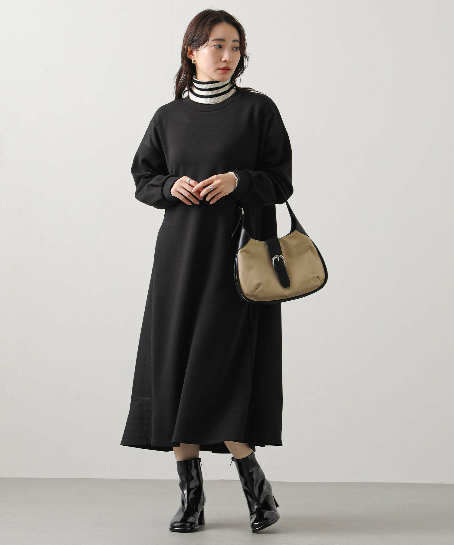 スッキリしたトップスから緩やかに広がるシルエットで、カジュアルさと女性らしさを兼ね備えデザイン。