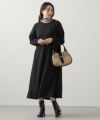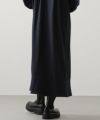 滑らかな素材感のTRデニムとダンボール素材をドッキングしたフレアワンピース。