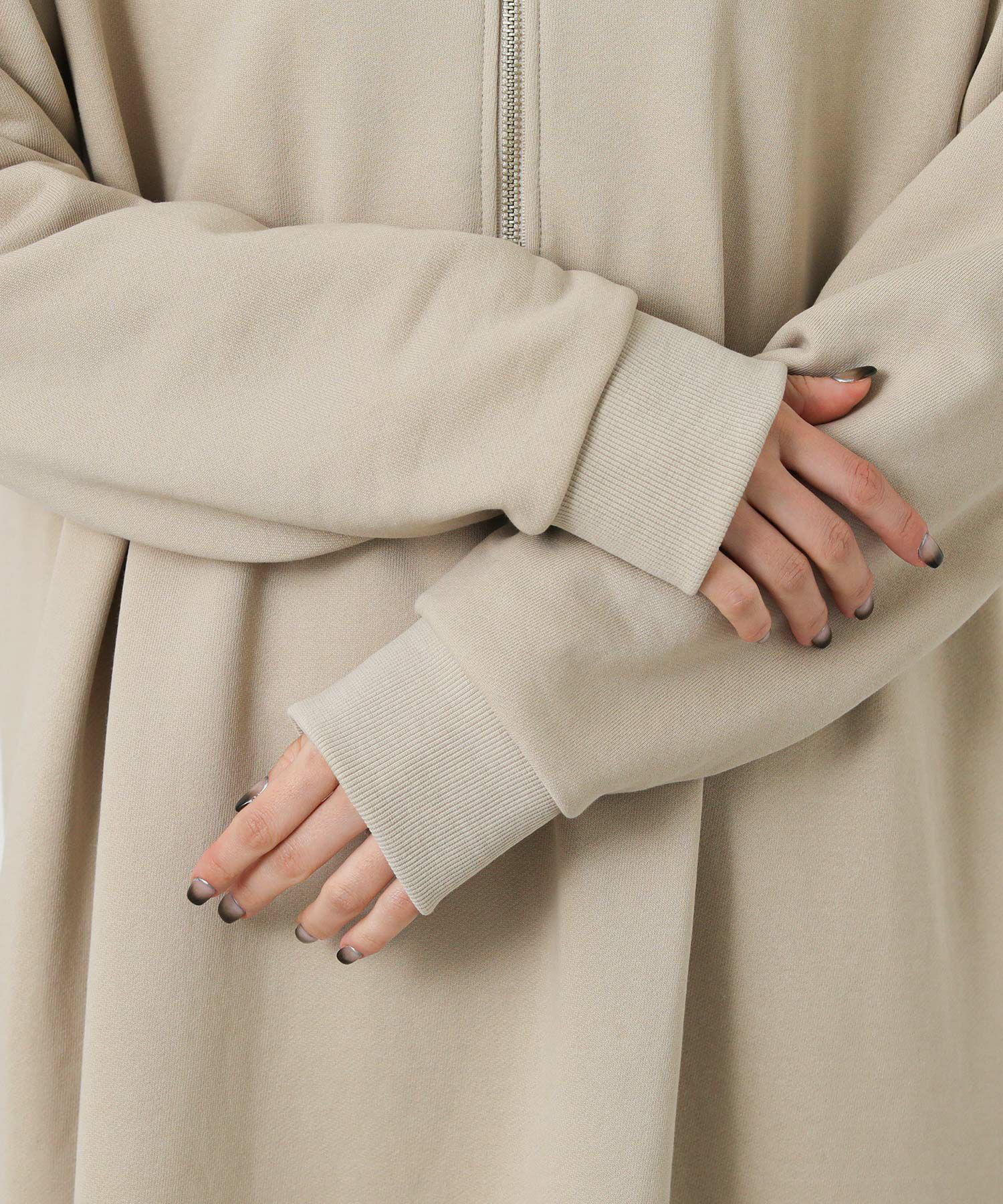 裏毛カットソーを使用した、程よい厚みで春先まで着用できるハーフジップワンピース。