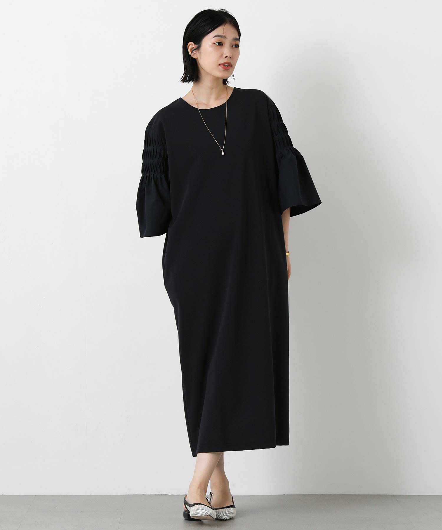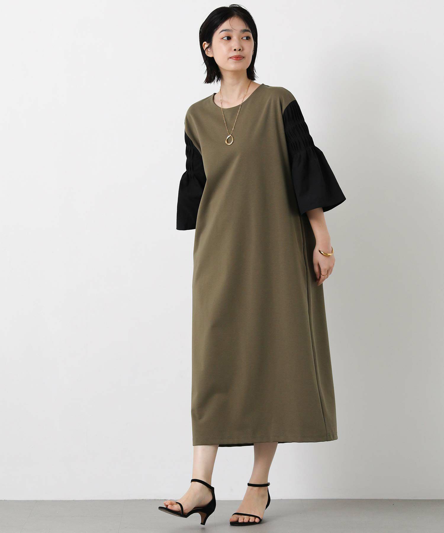 異素材の組み合わせがさりげないアクセントになったワンピース。