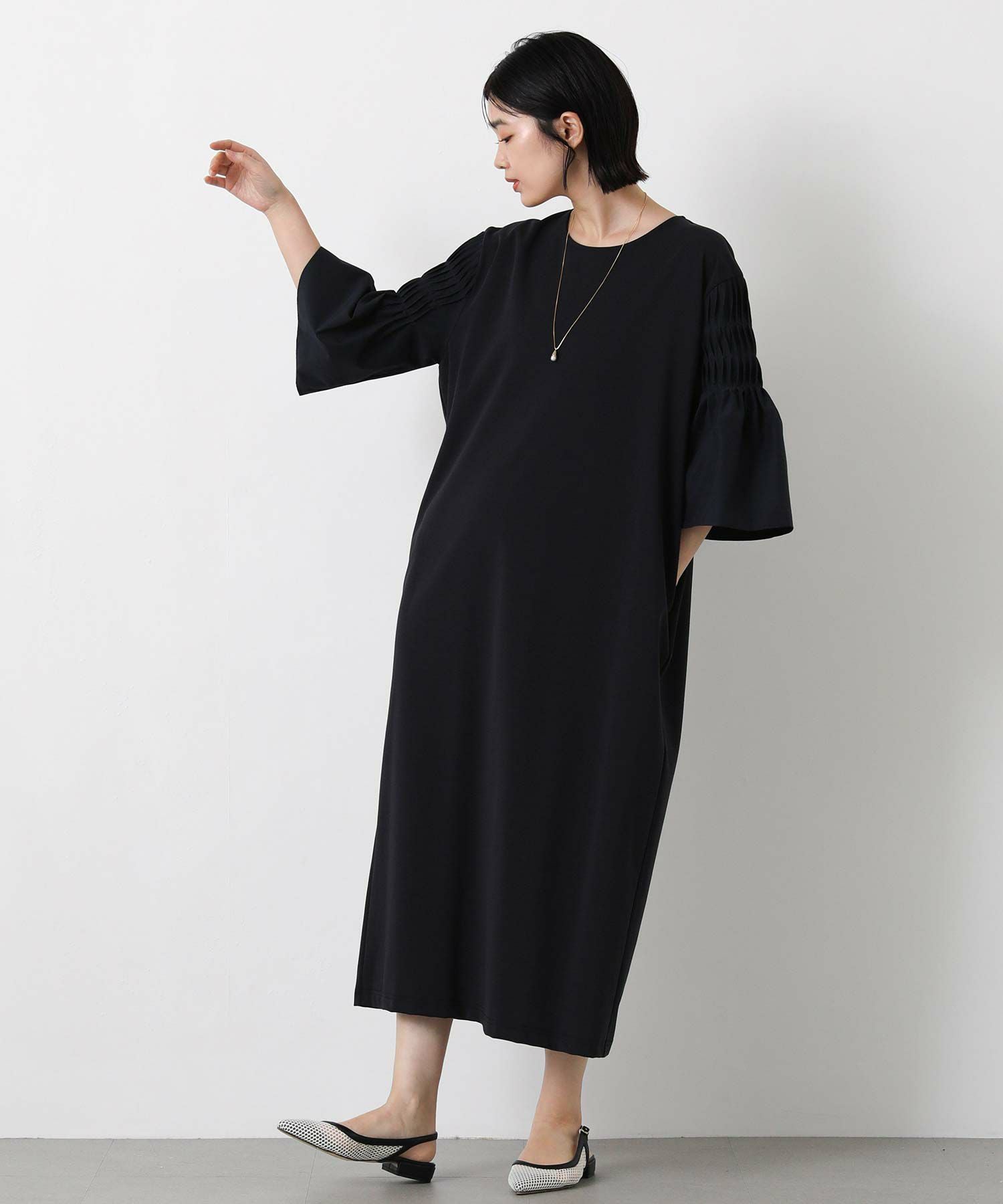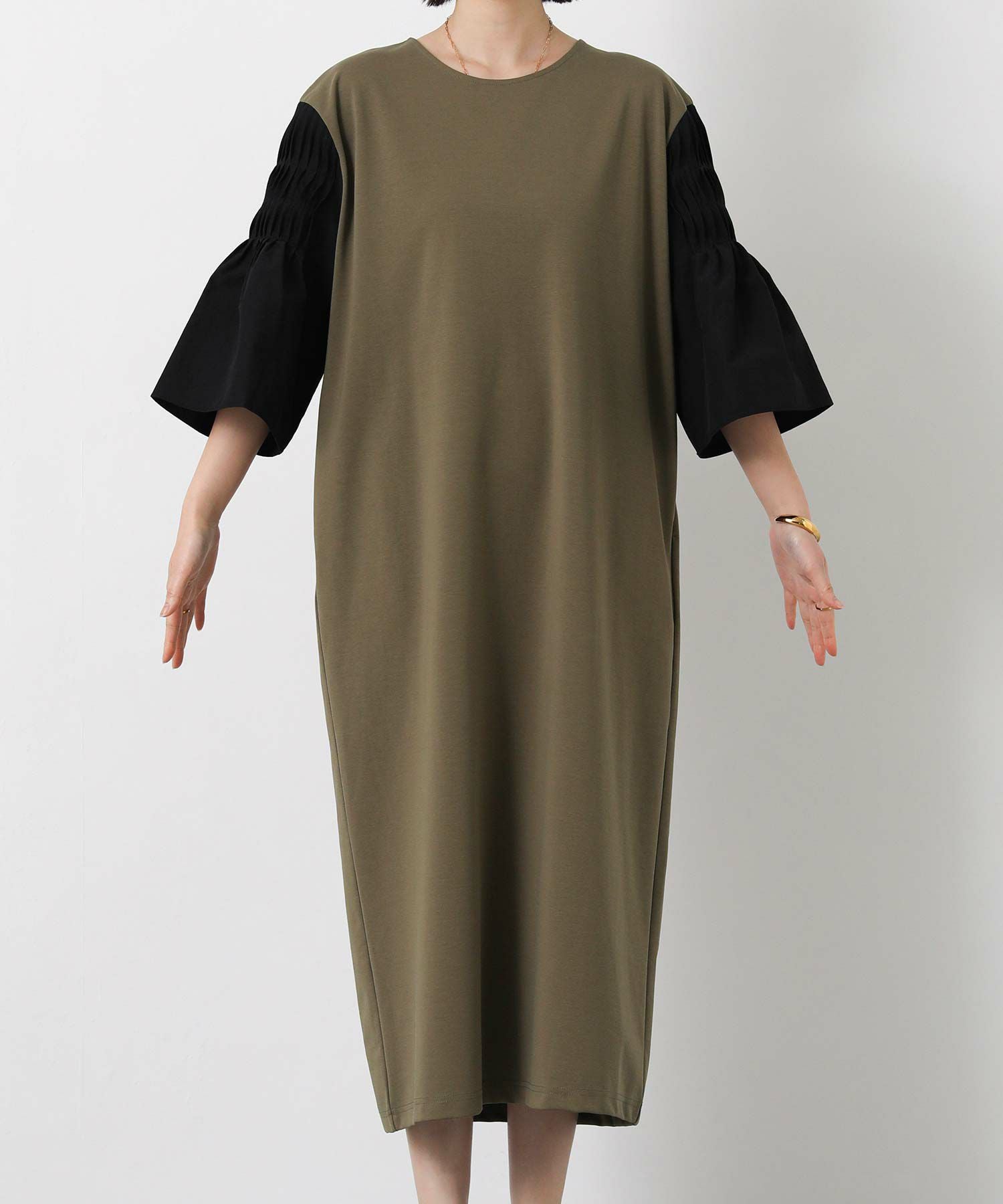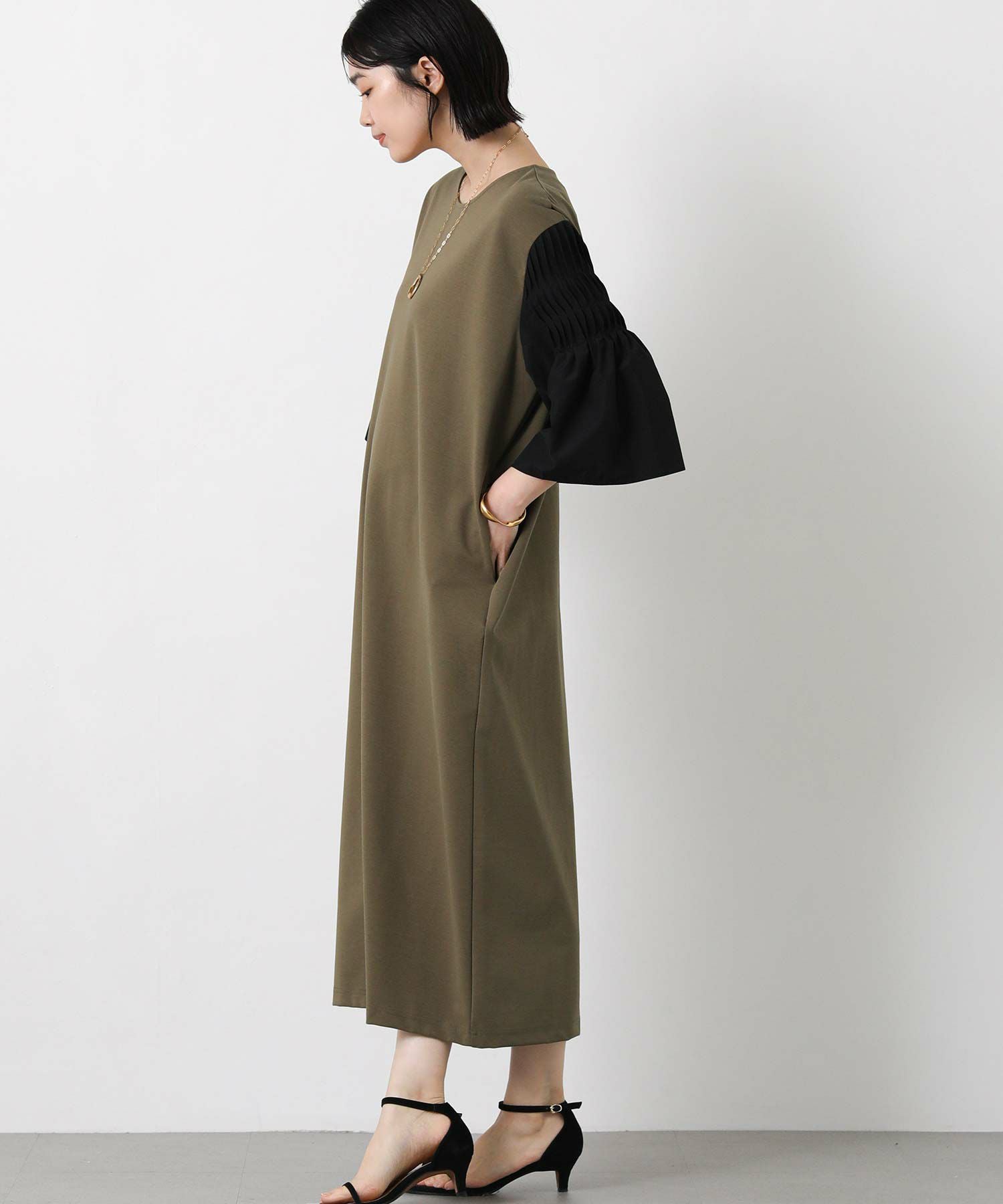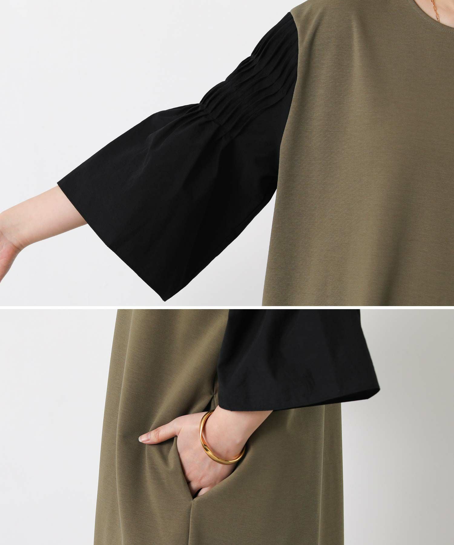 異素材の組み合わせがさりげないアクセントになったワンピース。