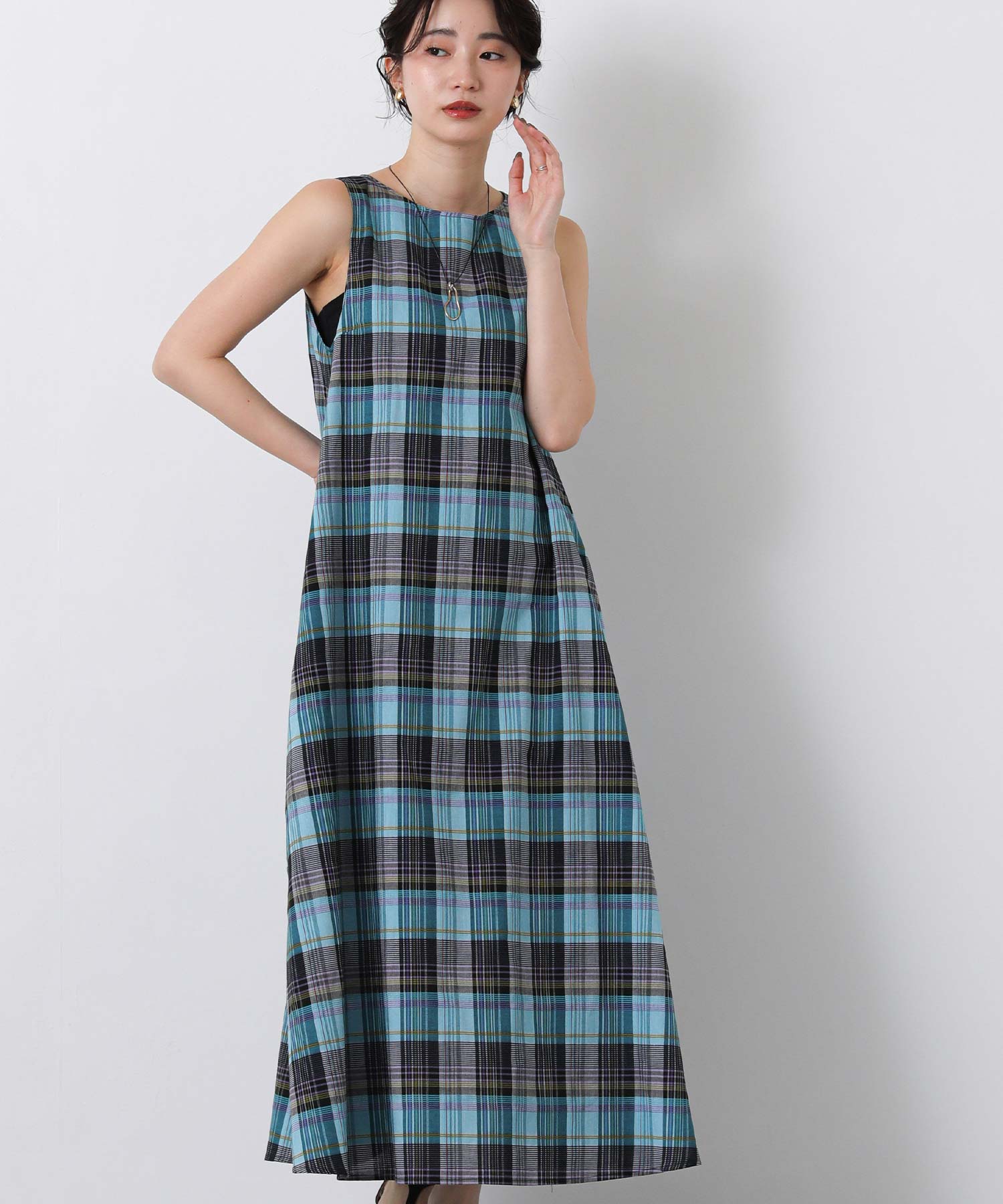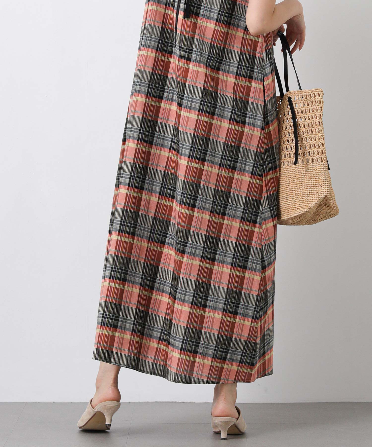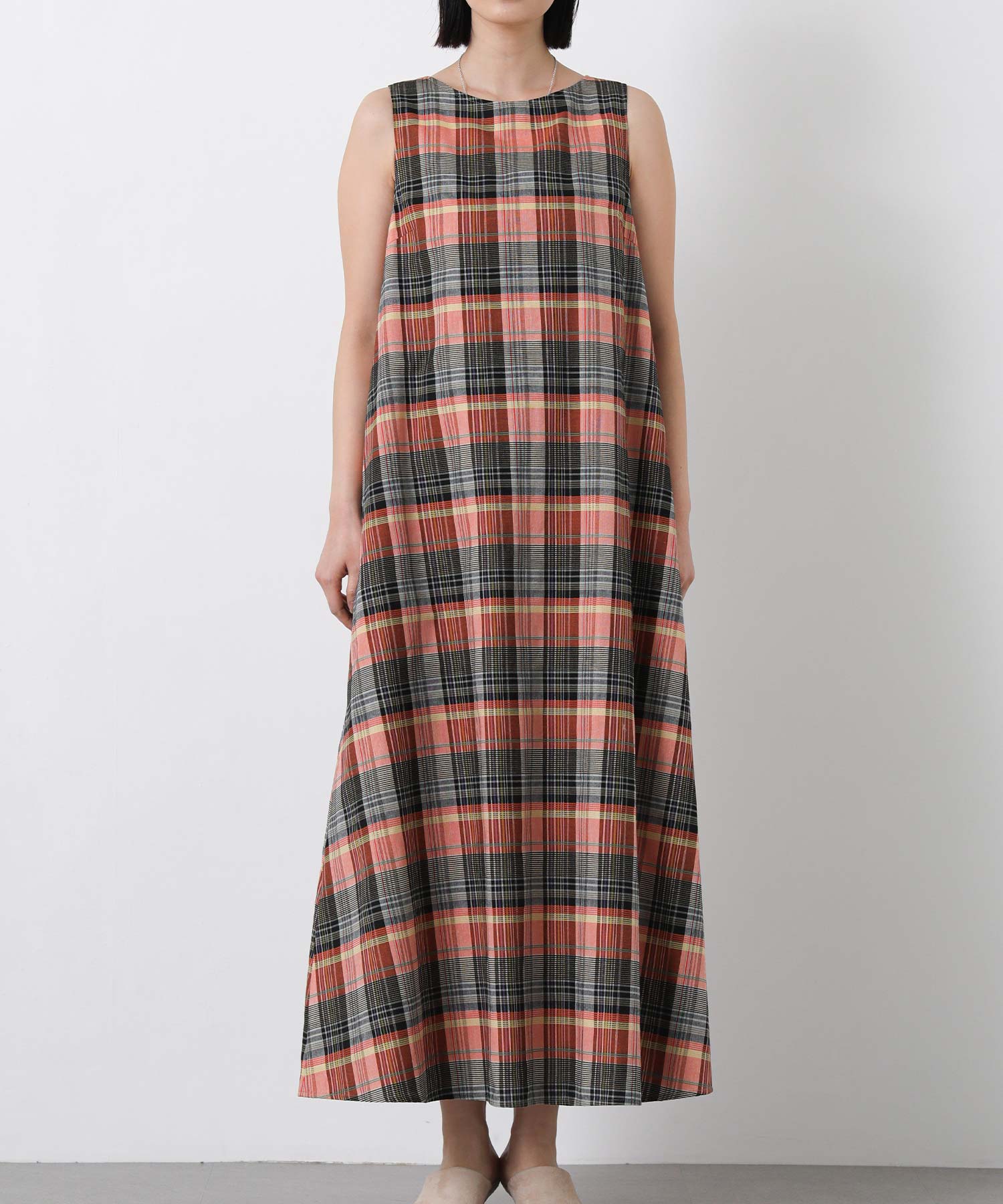 1枚で着映えするマルチカラーチェックのワンピース。