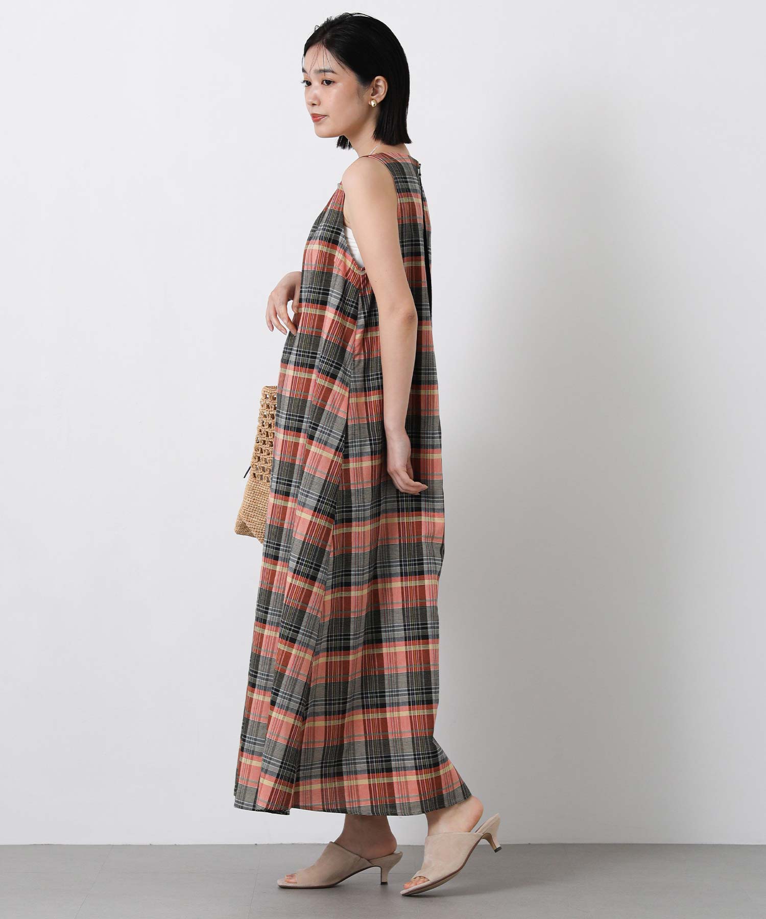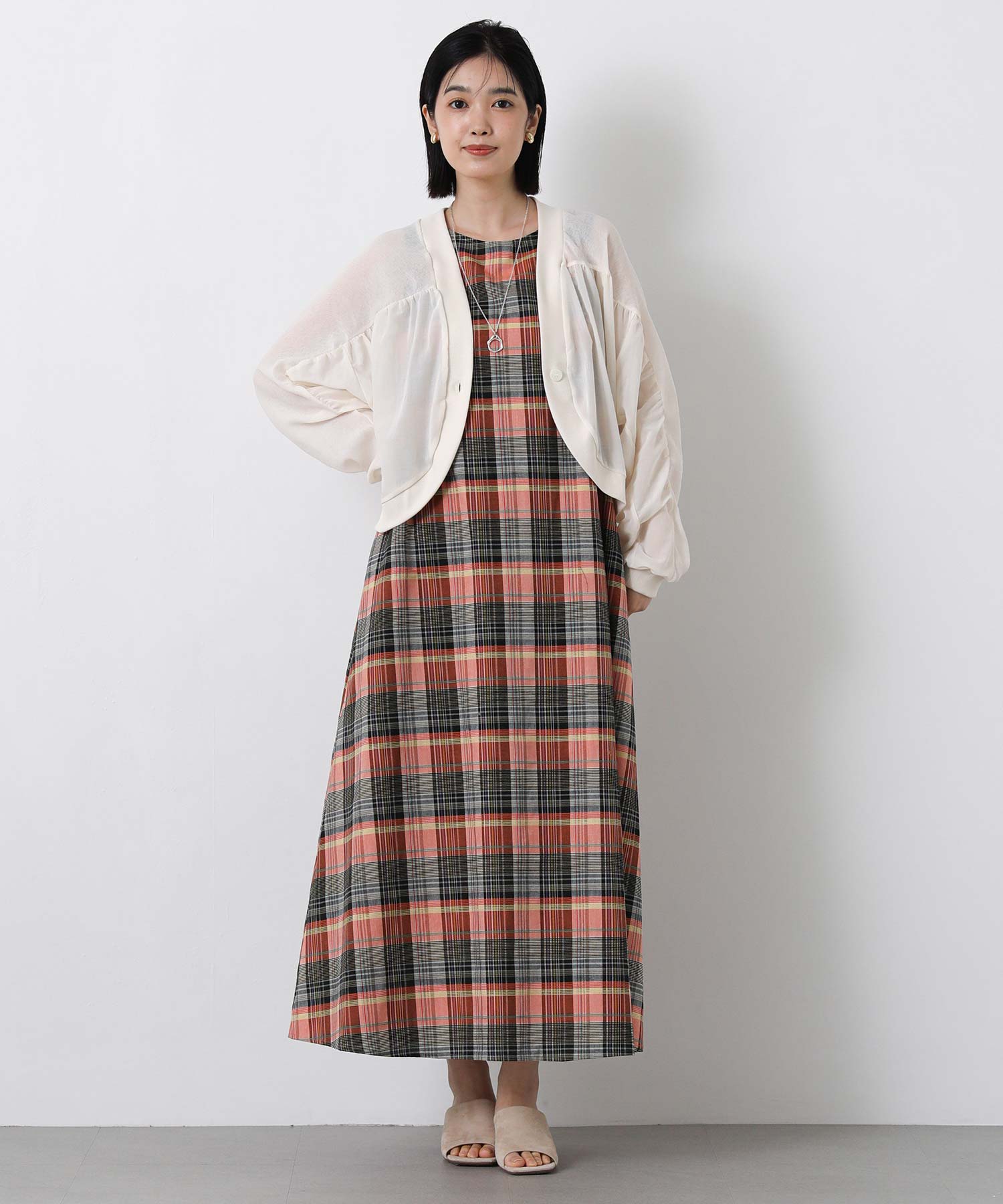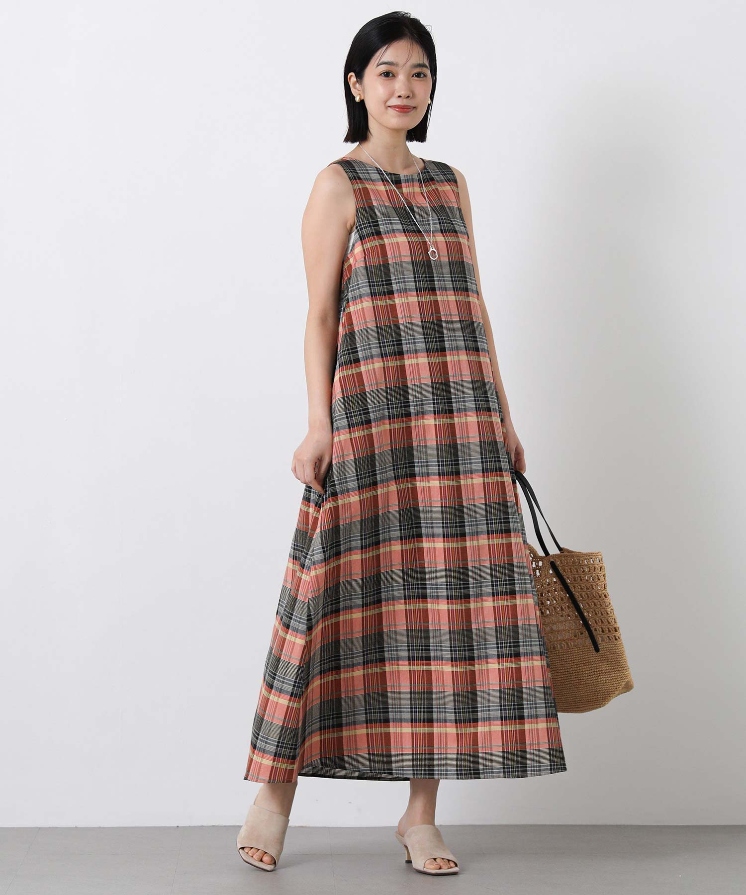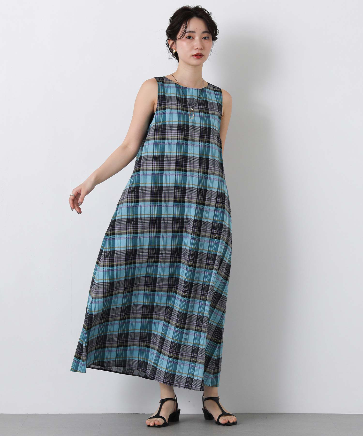 1枚で着映えするマルチカラーチェックのワンピース。
