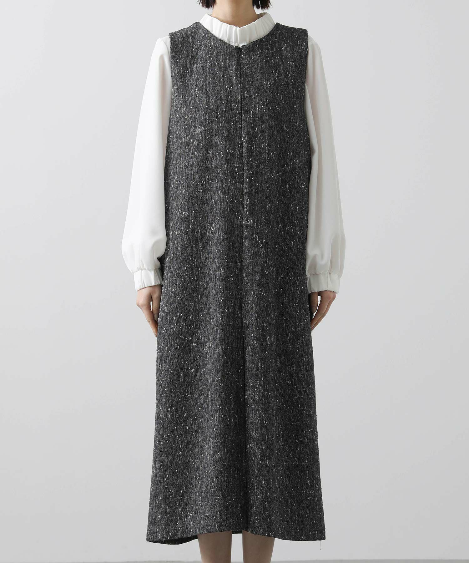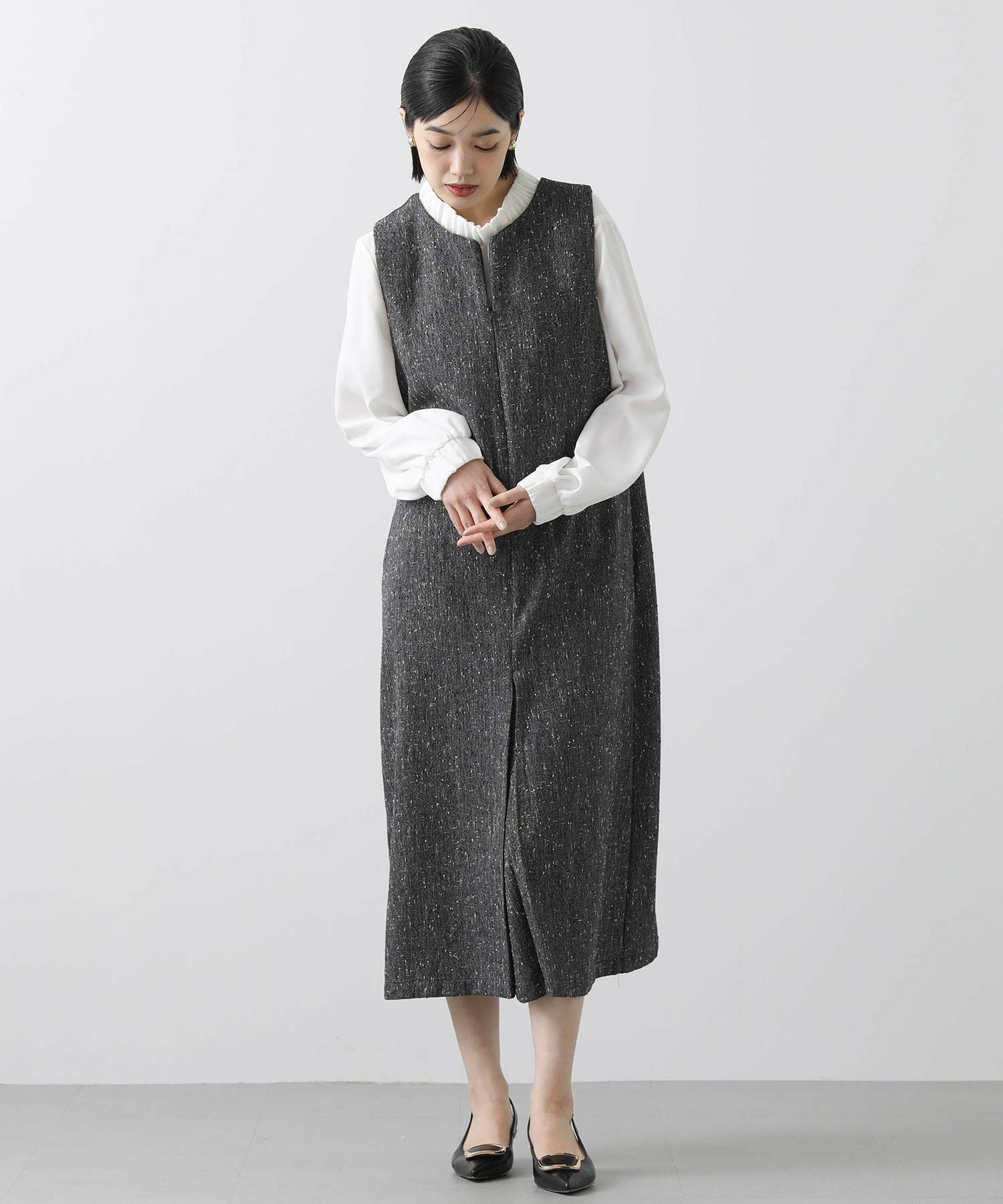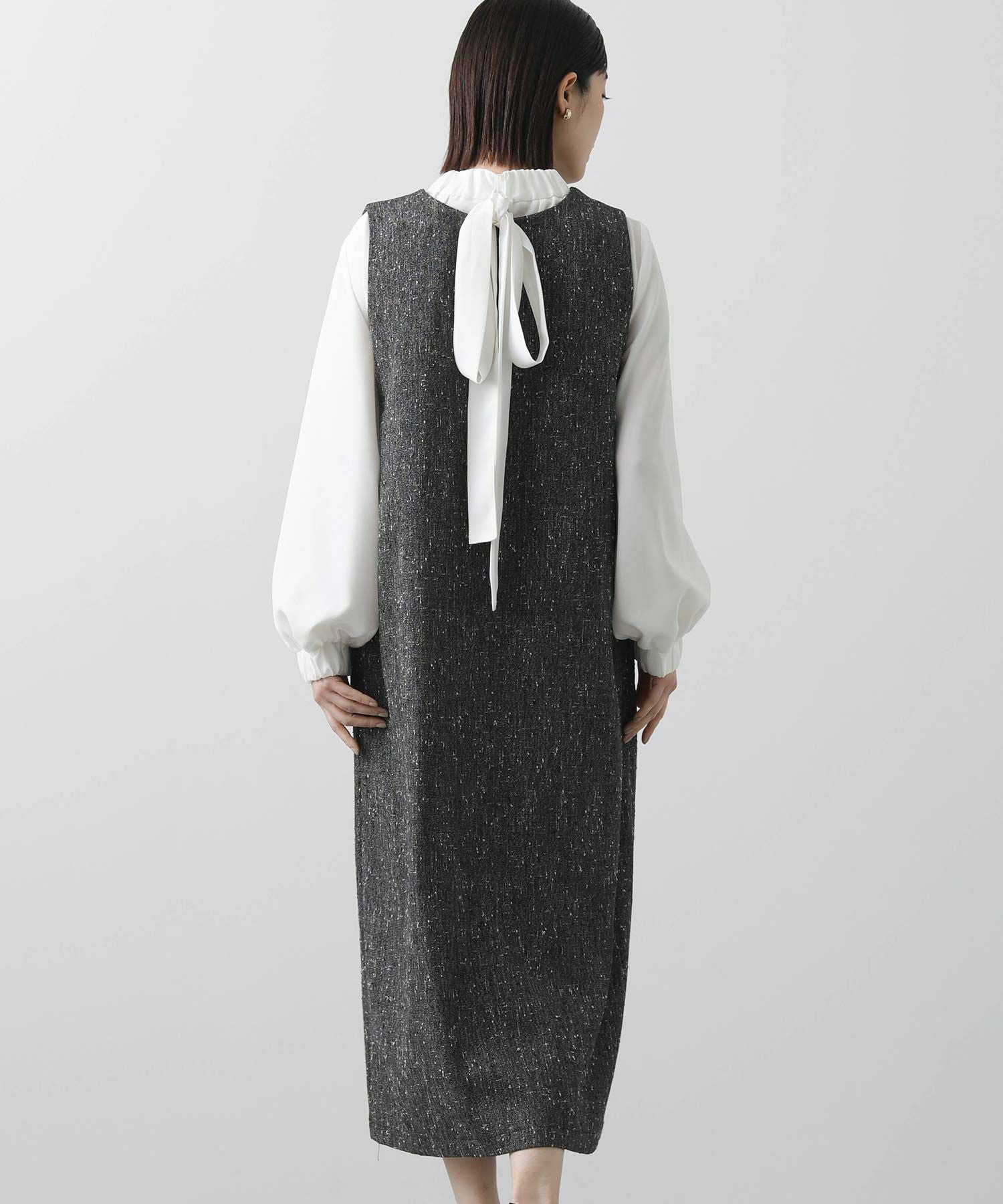 ショートジャケット(OD1157402001)と同素材でセットアップとして着られるツイードワンピースは、ハレの日スタイルにぴったりなアイテム!前後2wayで着られるデザインになっています。