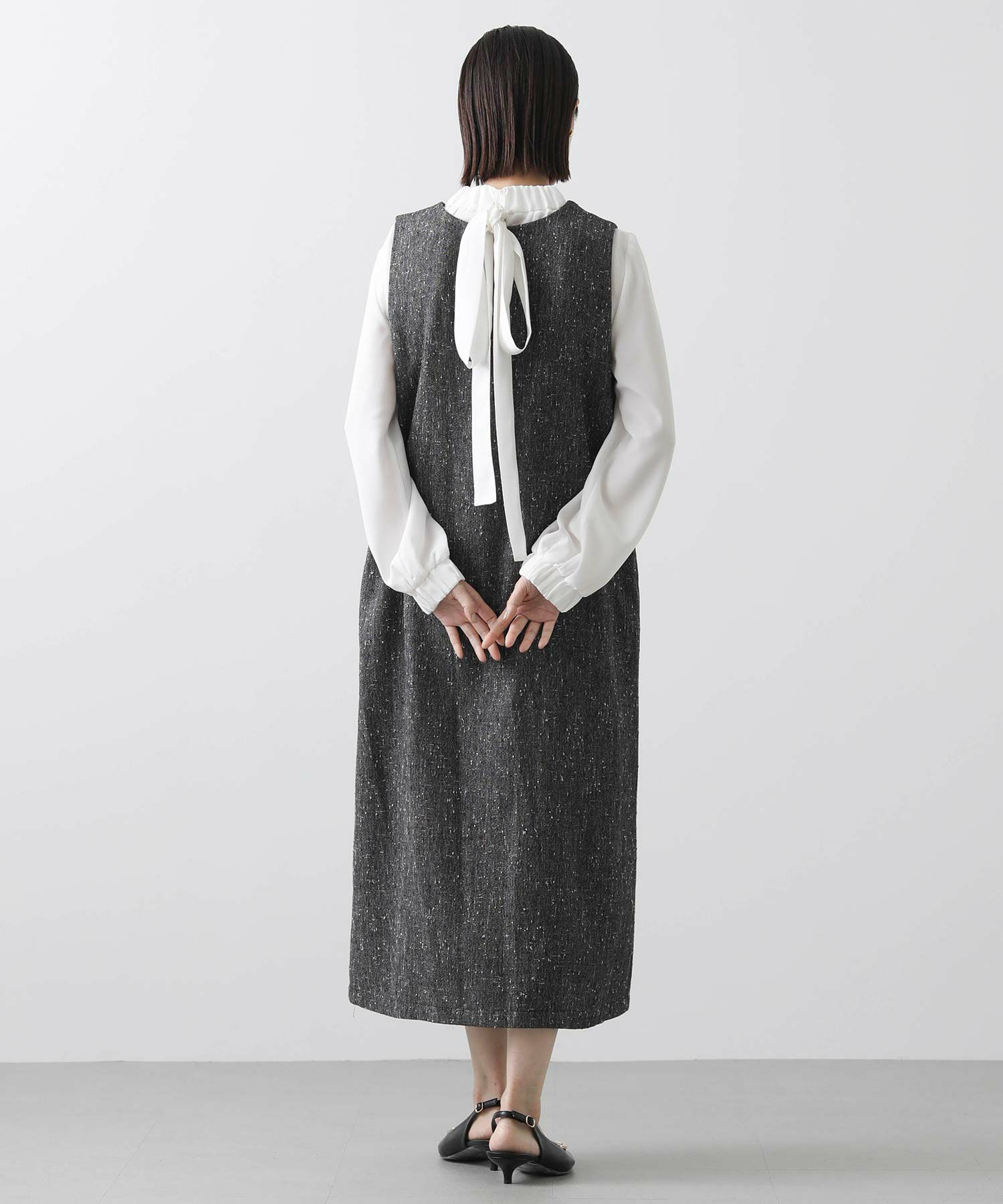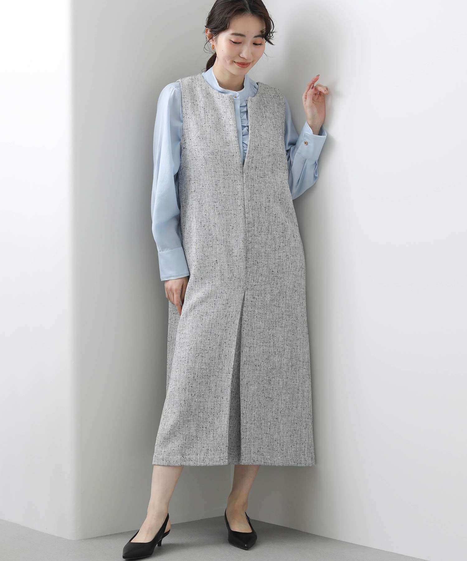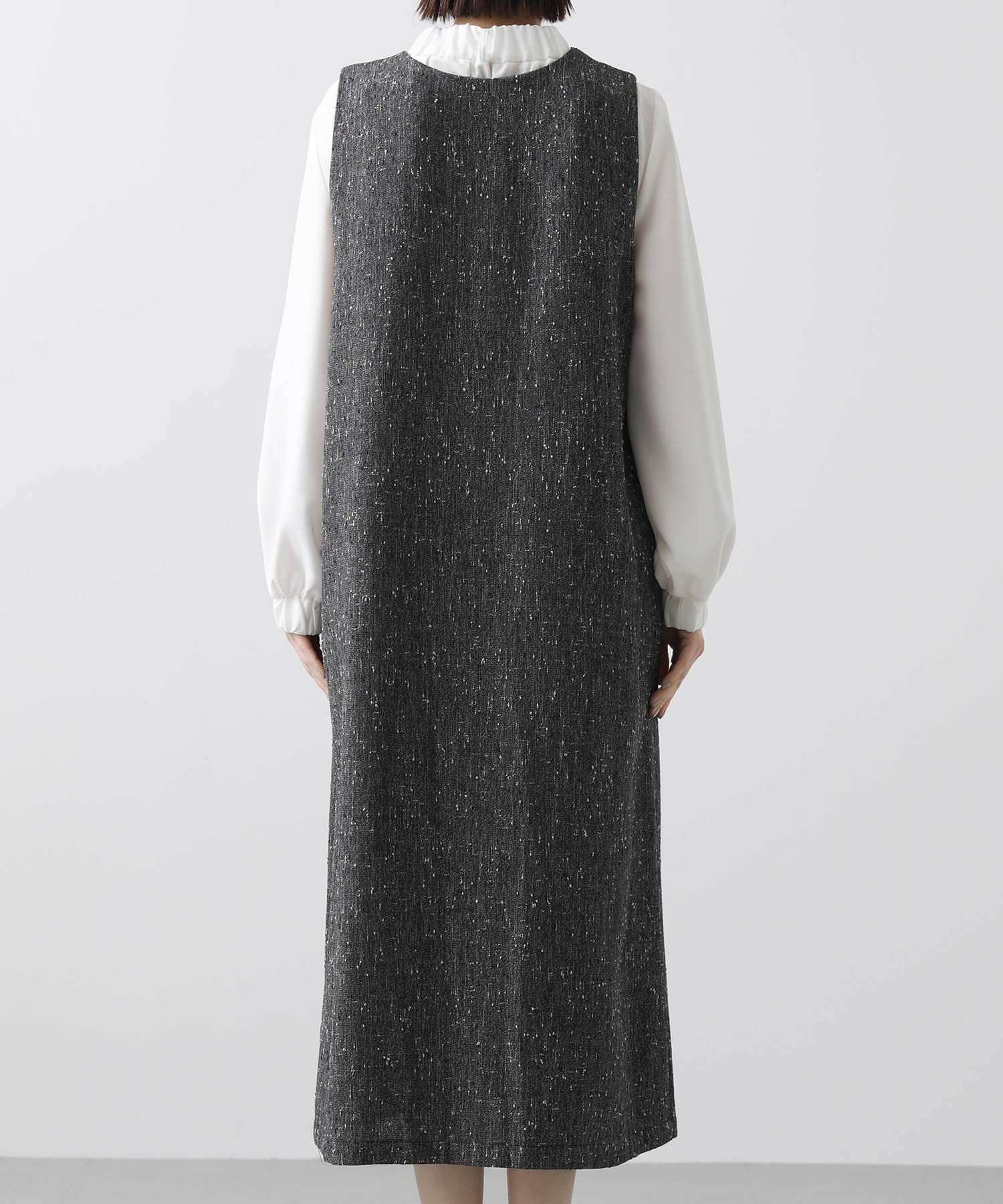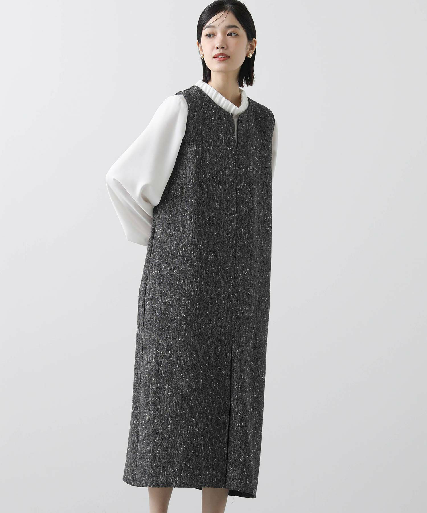 ショートジャケット(OD1157402001)と同素材でセットアップとして着られるツイードワンピースは、ハレの日スタイルにぴったりなアイテム!前後2wayで着られるデザインになっています。