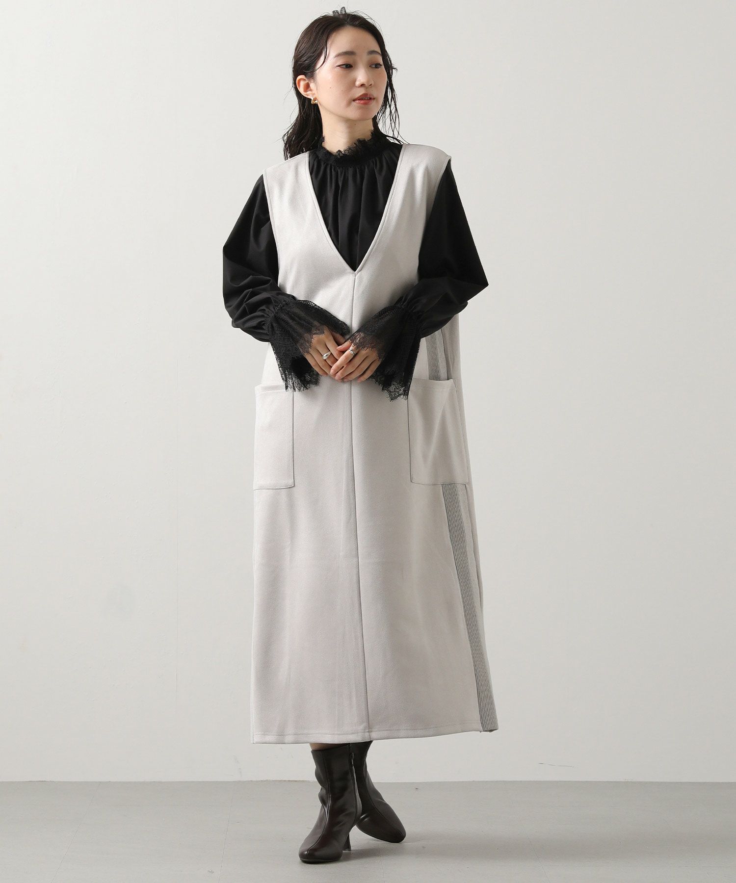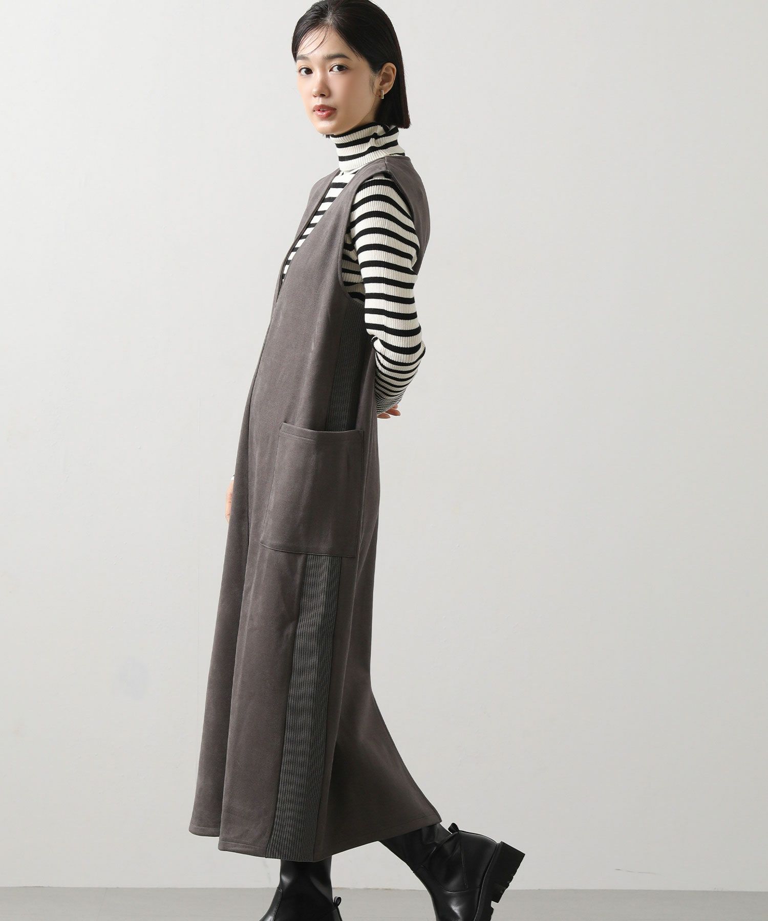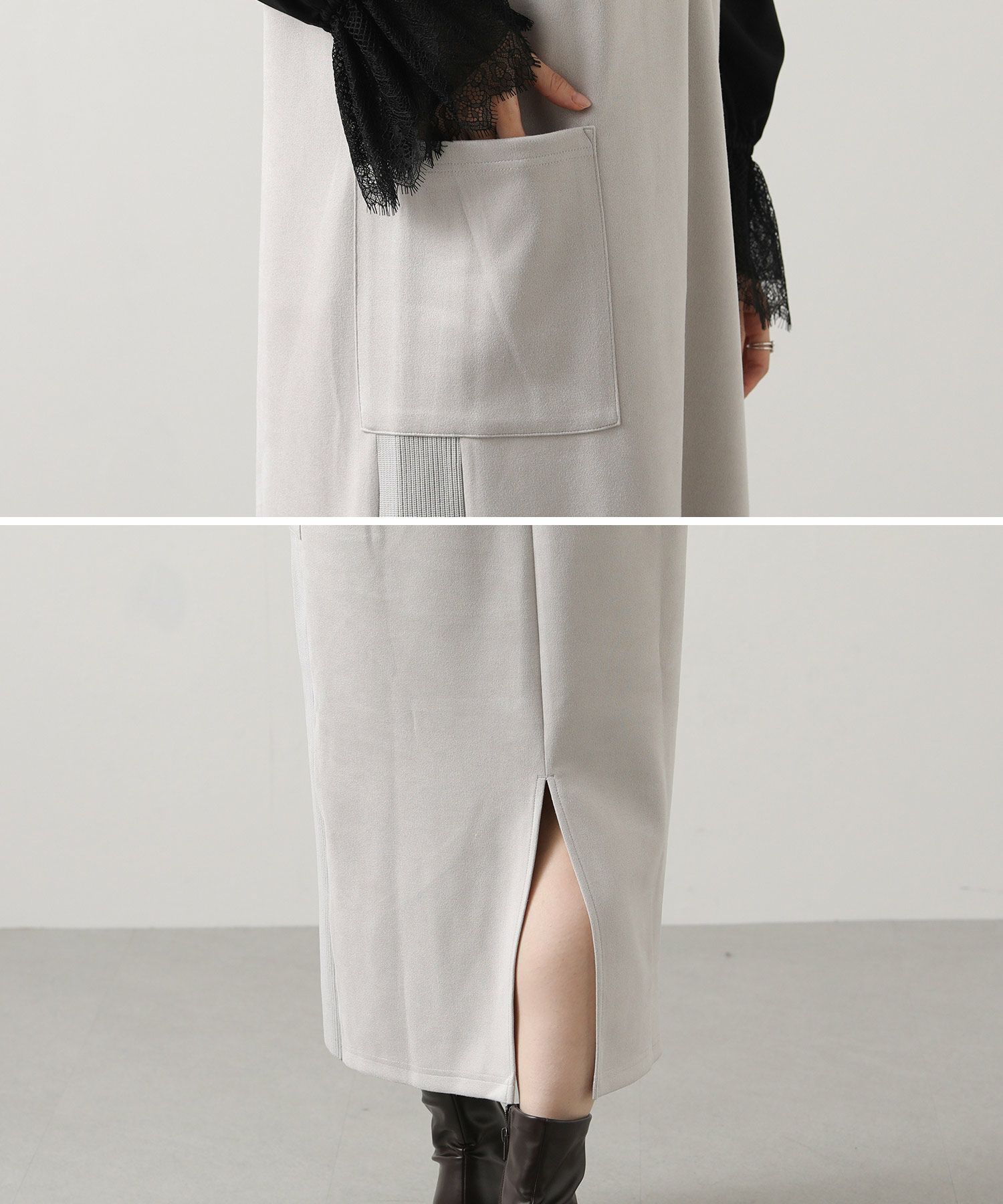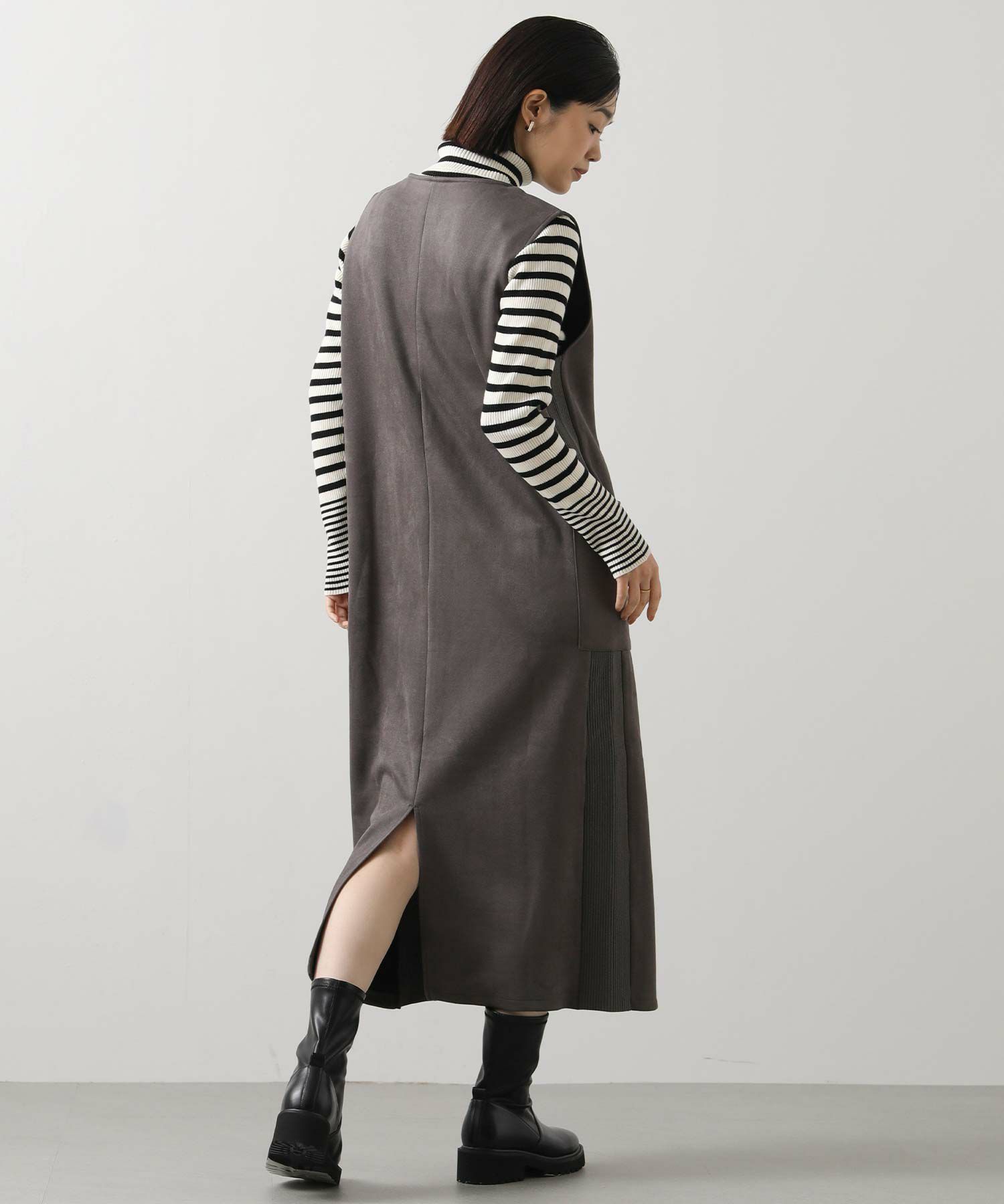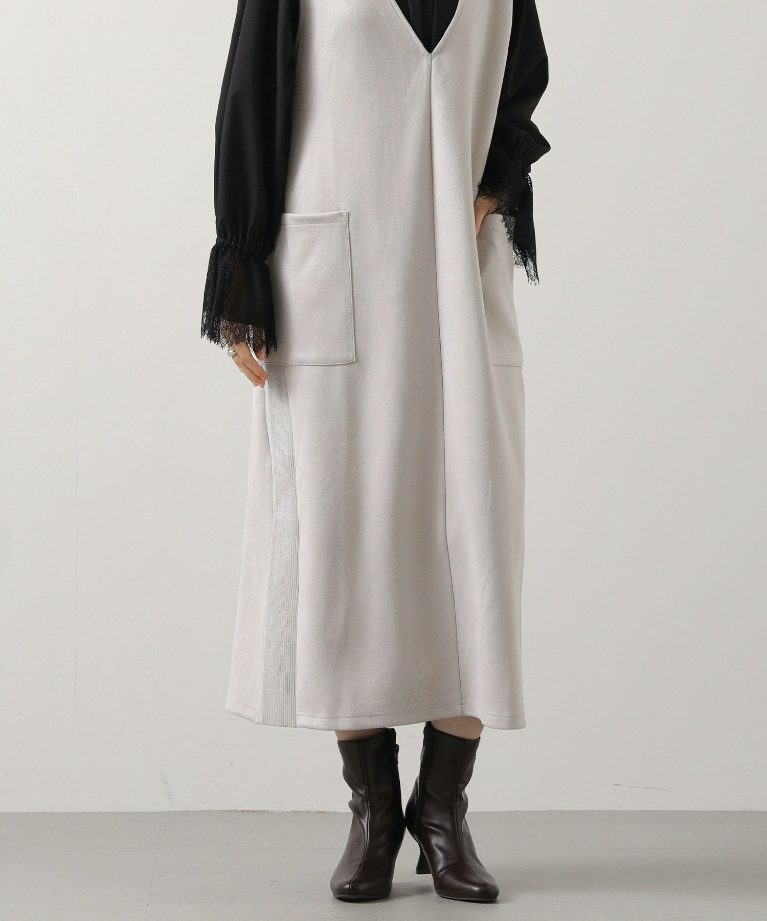 シーズンムードを高めてくれる、スエードライク素材のワンピース。