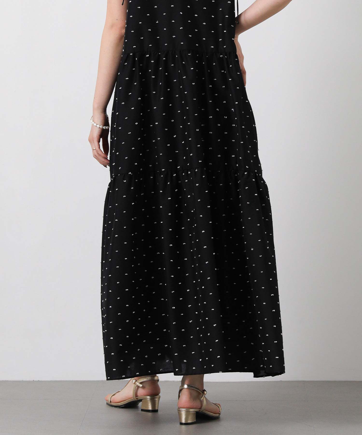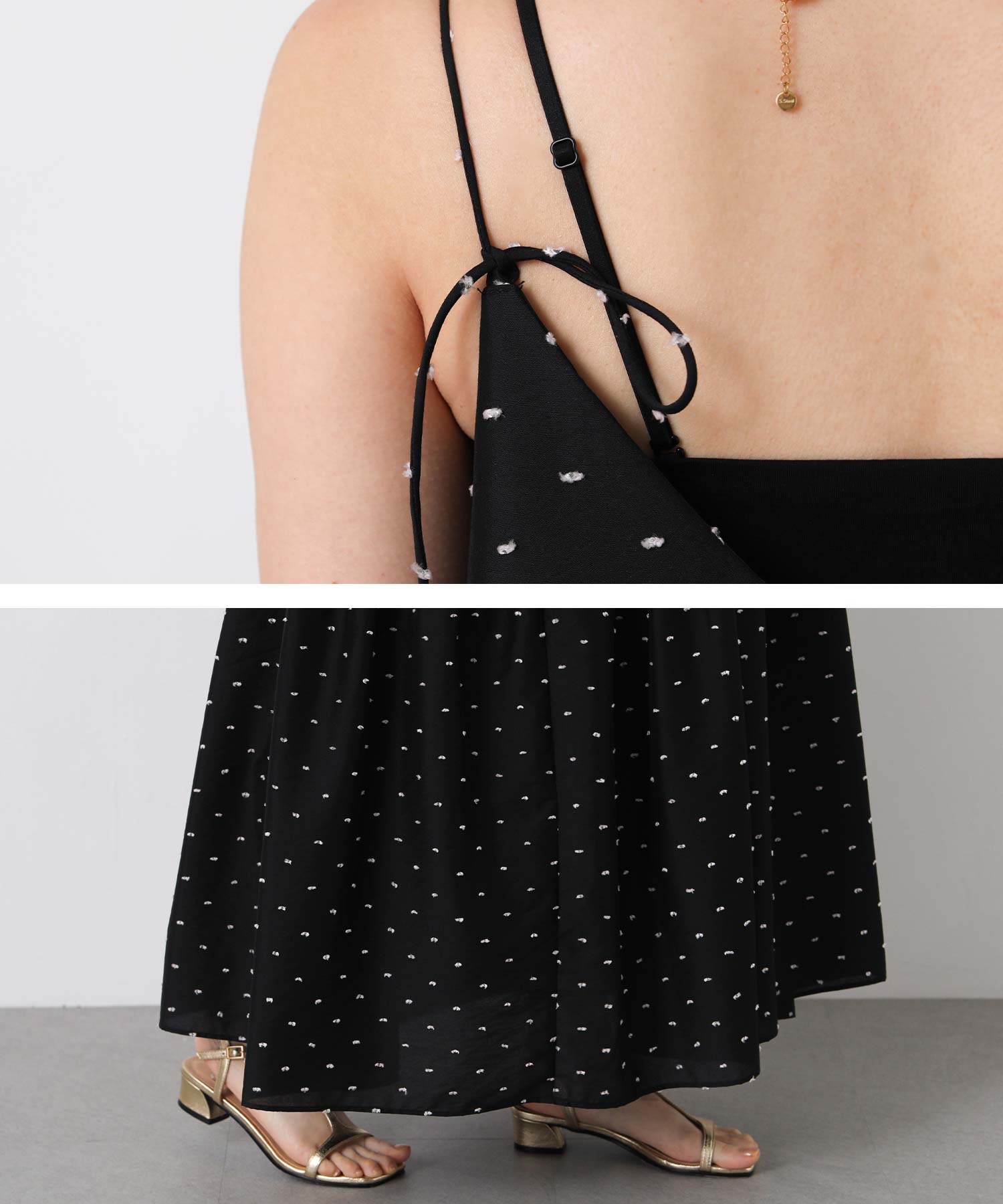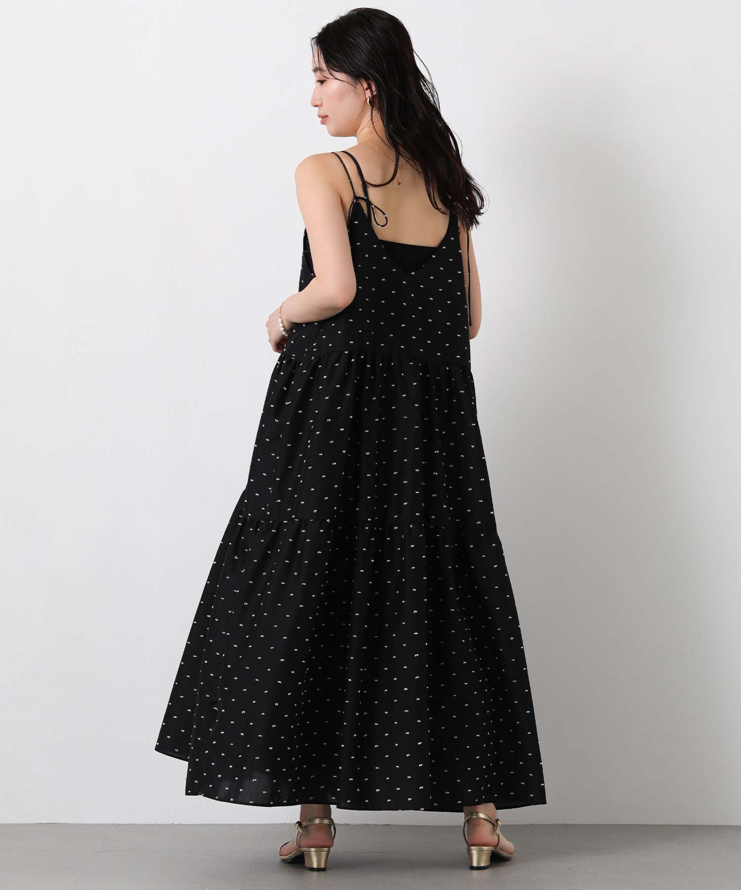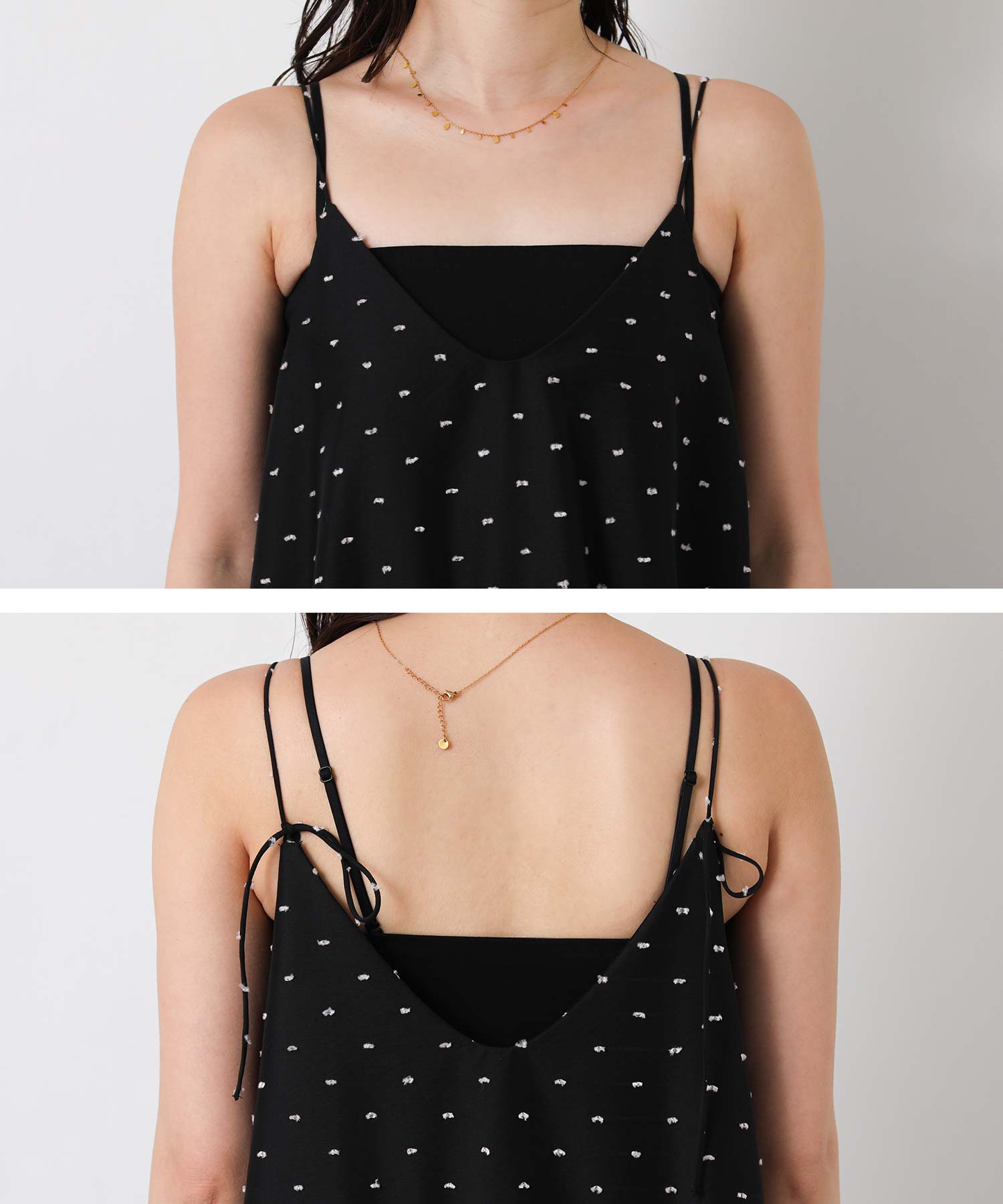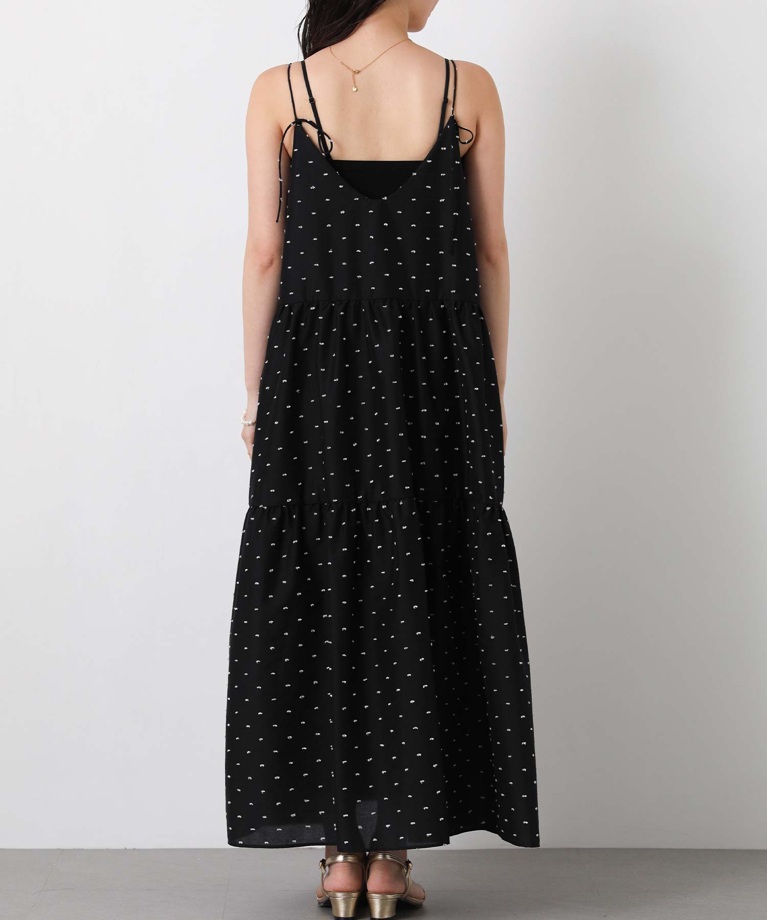 1枚で華やかな印象にしてくれるドットキャミワンピ。