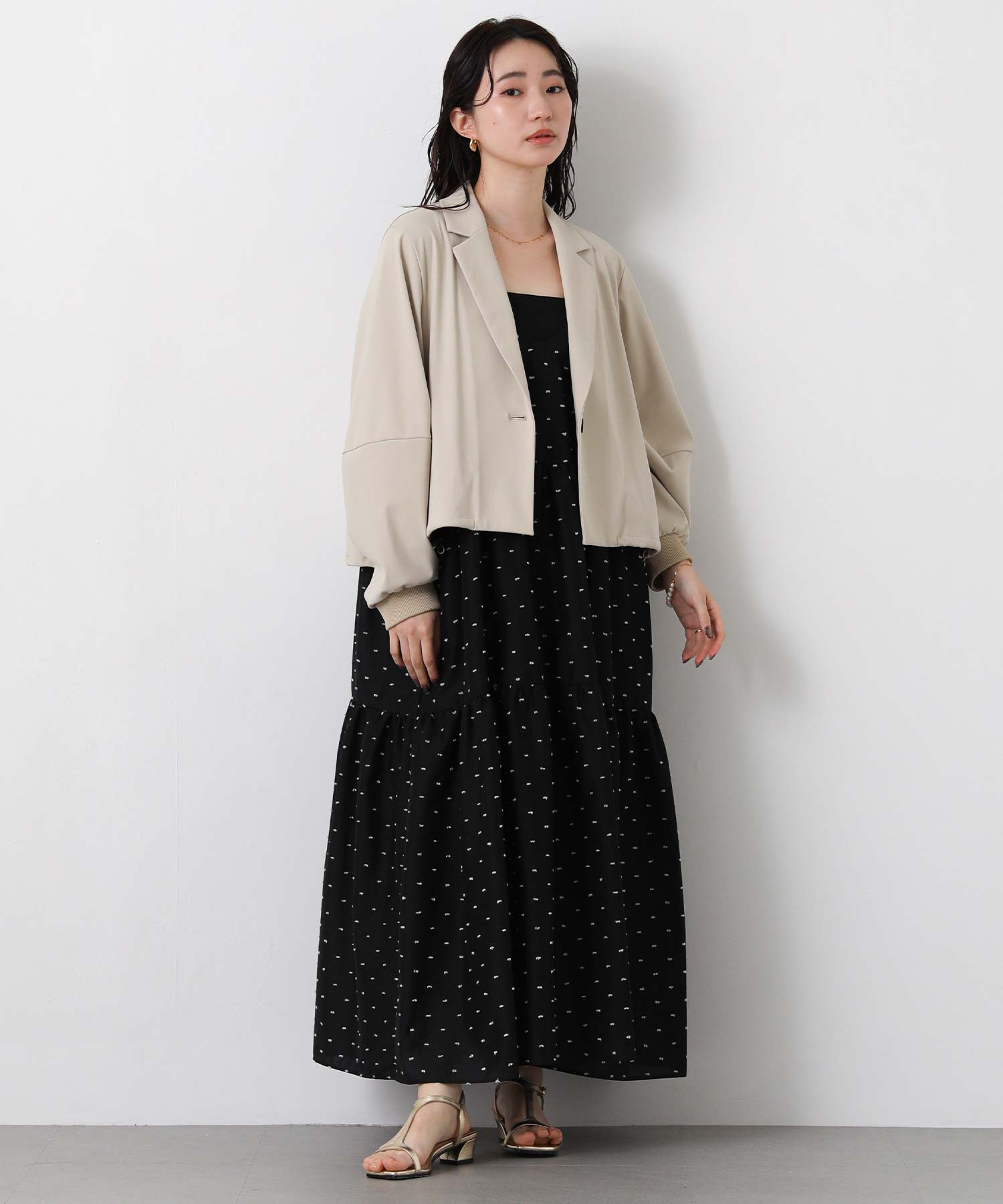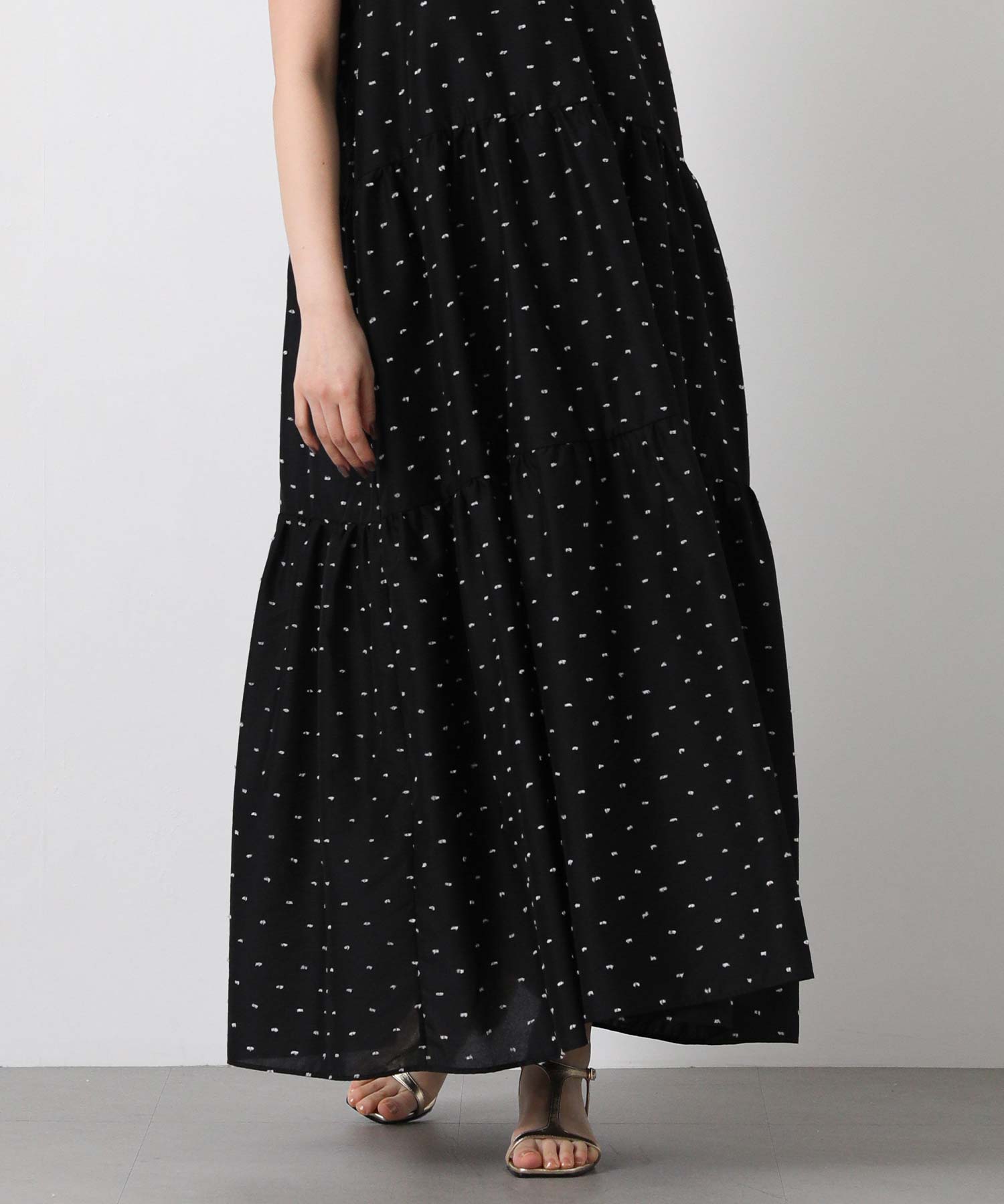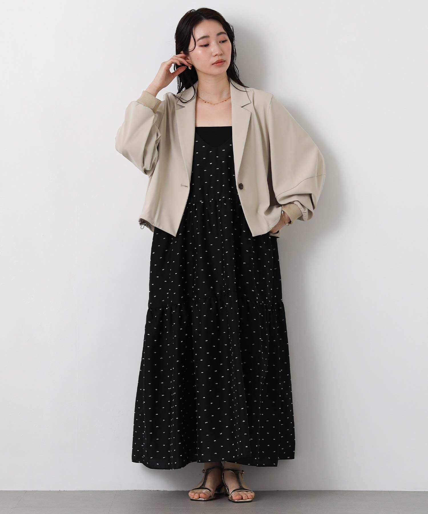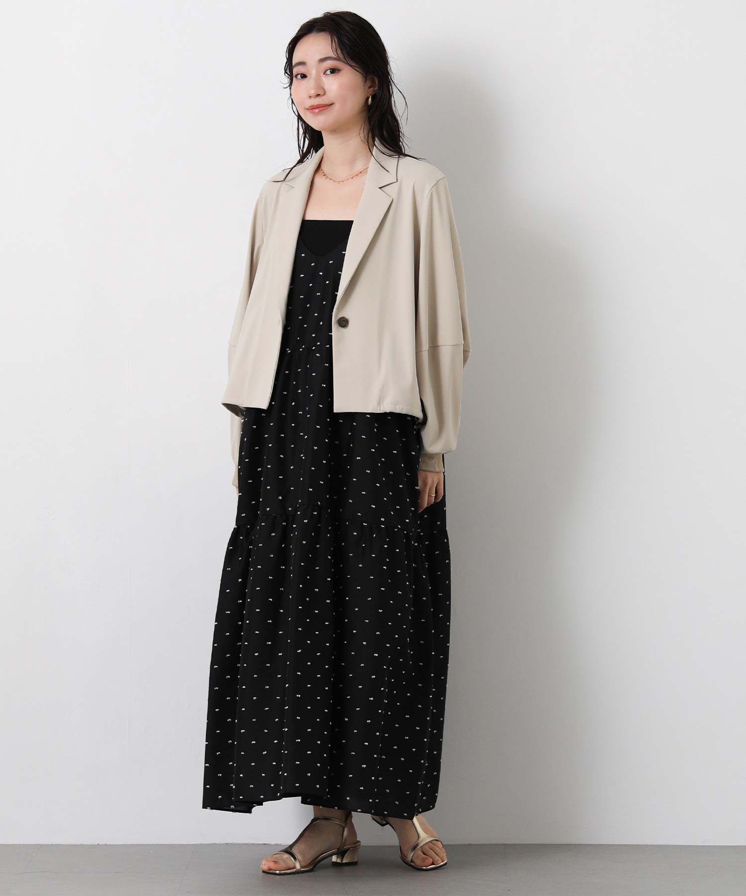 1枚で華やかな印象にしてくれるドットキャミワンピ。