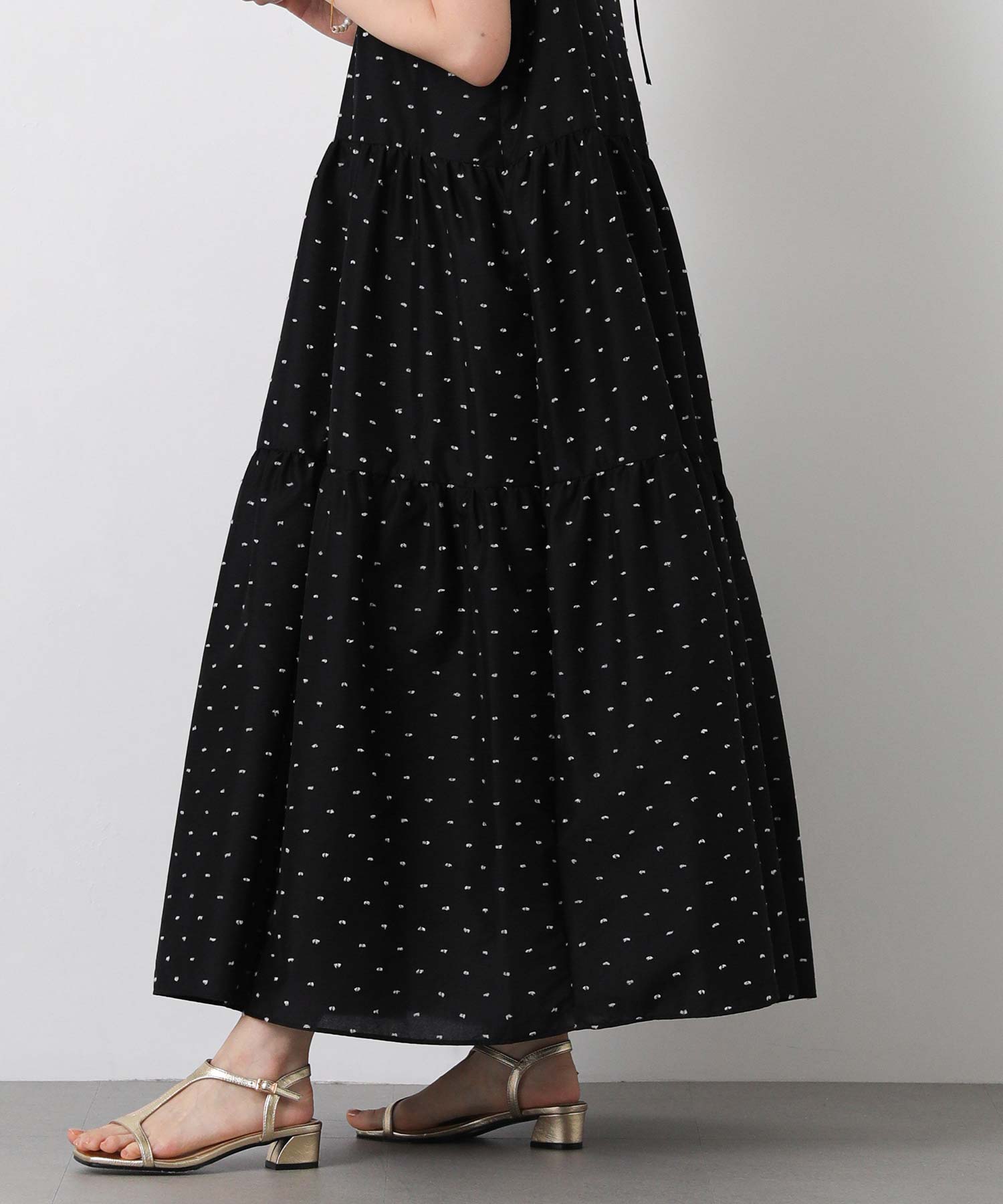 裾の切り替えからふんわり広がるティアードデザインは、ふんわり広がる女性らしいシルエット。