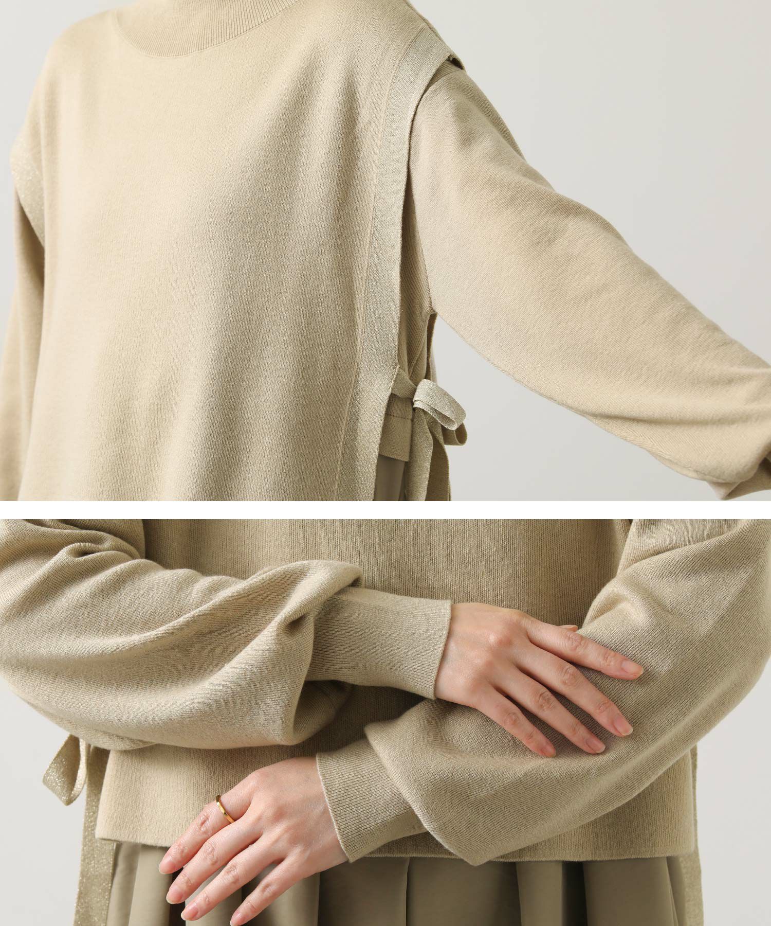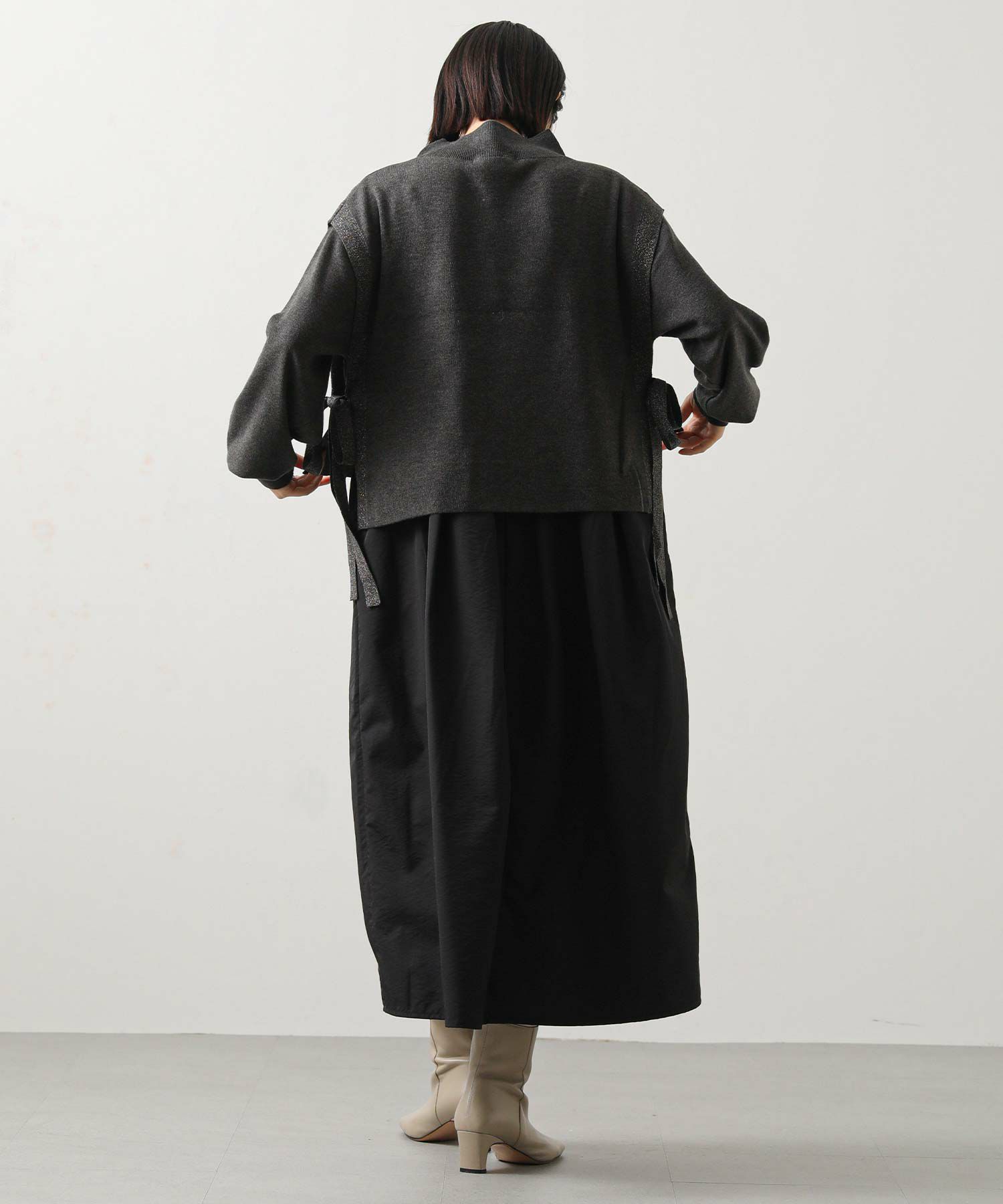 ベストはワイドに身幅をとったデザインにサイドのリボンとラメがポイント。