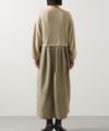 ニットワンピースはウエスト位置で布帛とドッキングしたデザイン。