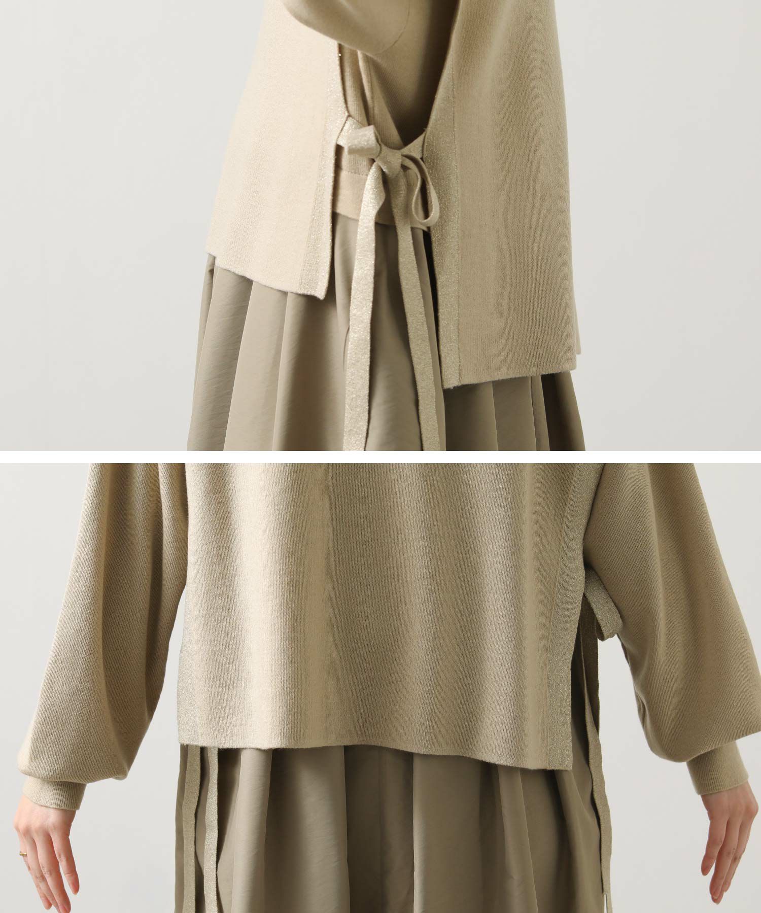 ベストはワイドに身幅をとったデザインにサイドのリボンとラメがポイント。